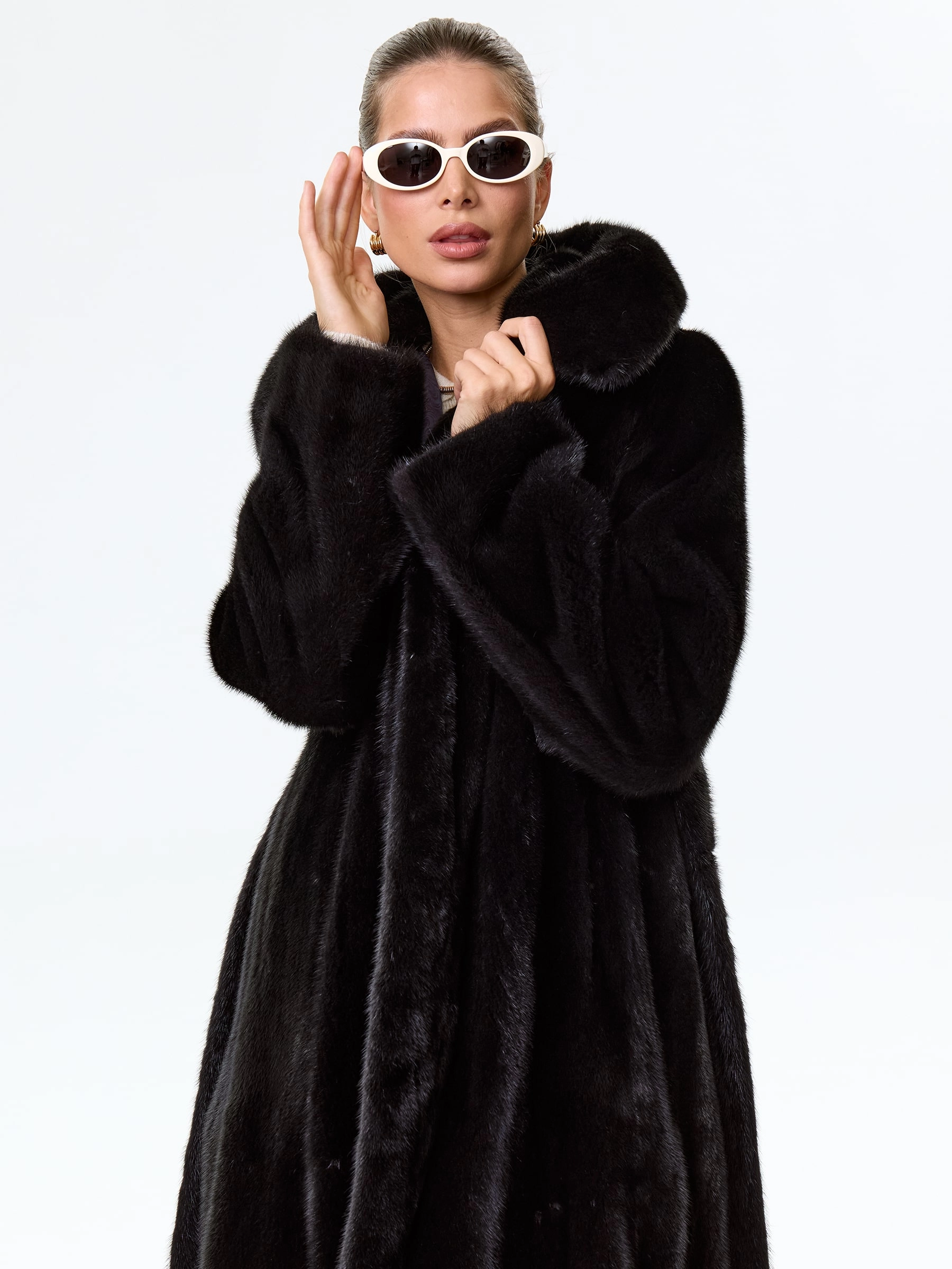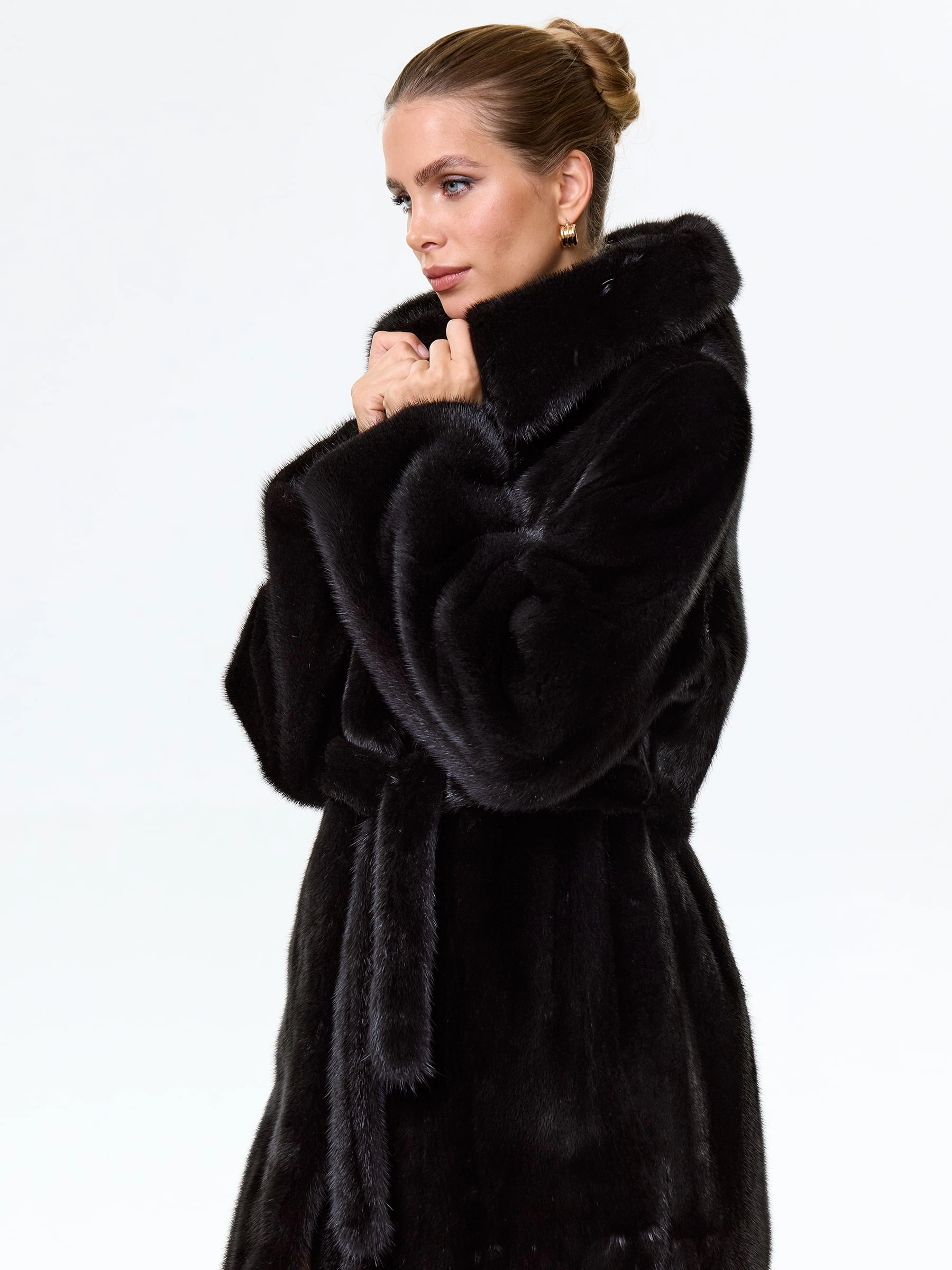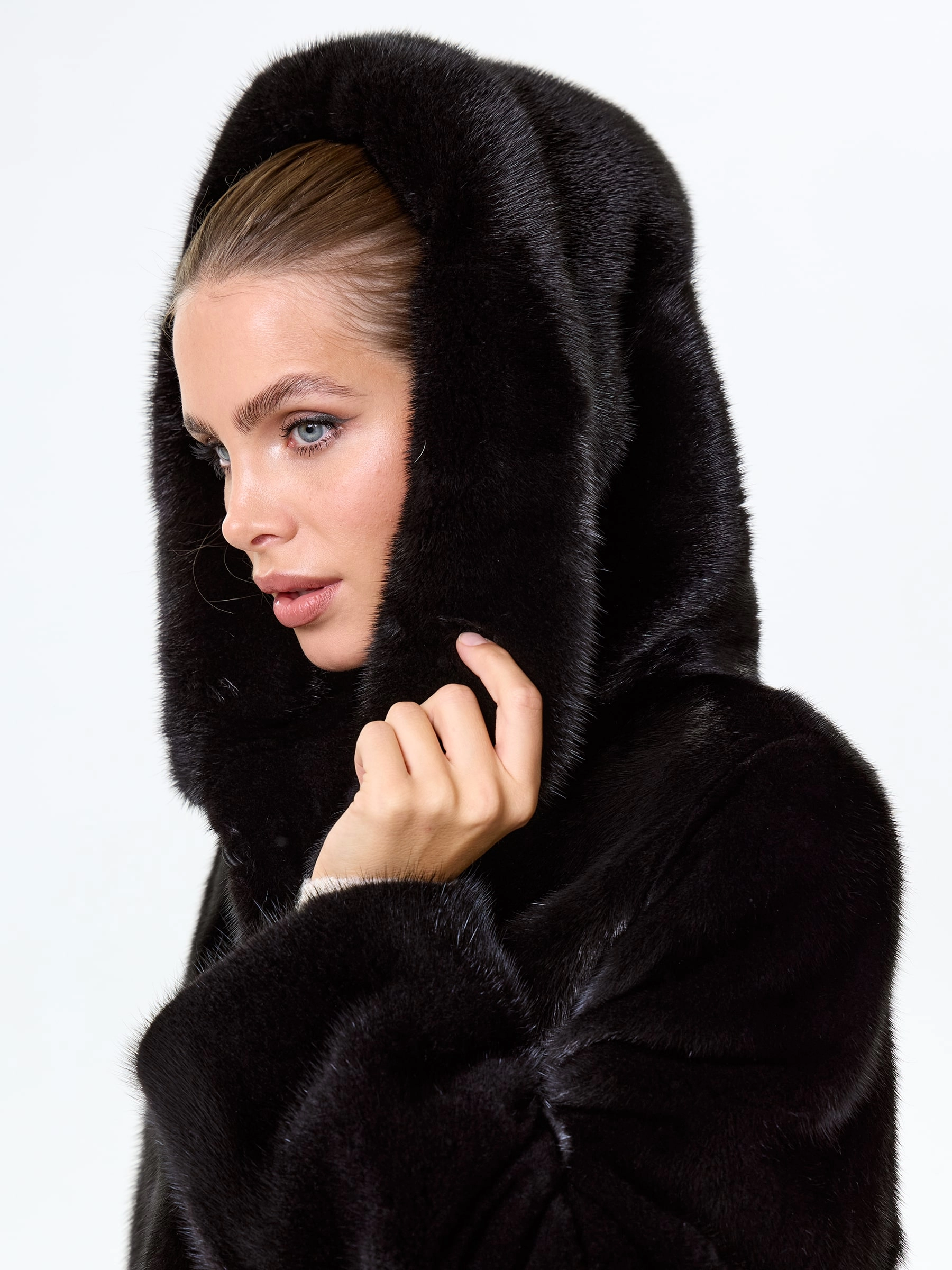 Женская норковая шуба с капюшоном премиум класса Лина, черная, размер 48, артикул 34180