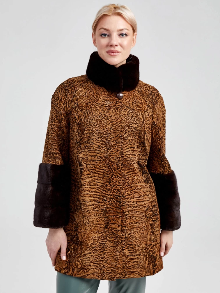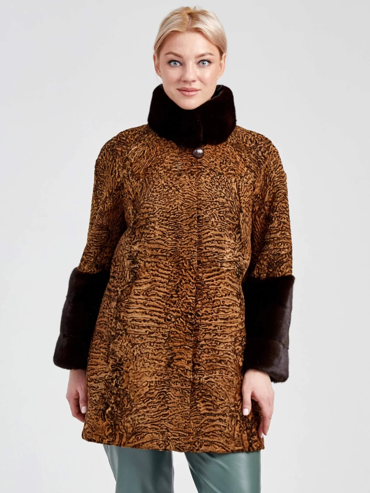 Товар короткая женская шуба из меха каракуля с отделкой норкой 17101к(сн), намибия, размер 44, артикул 22810 выполнен из каракуль с застежкой клипсы. Рассчитан на сезон: осень-зима. Длина изделия 75-90 см, силуэт прямой.