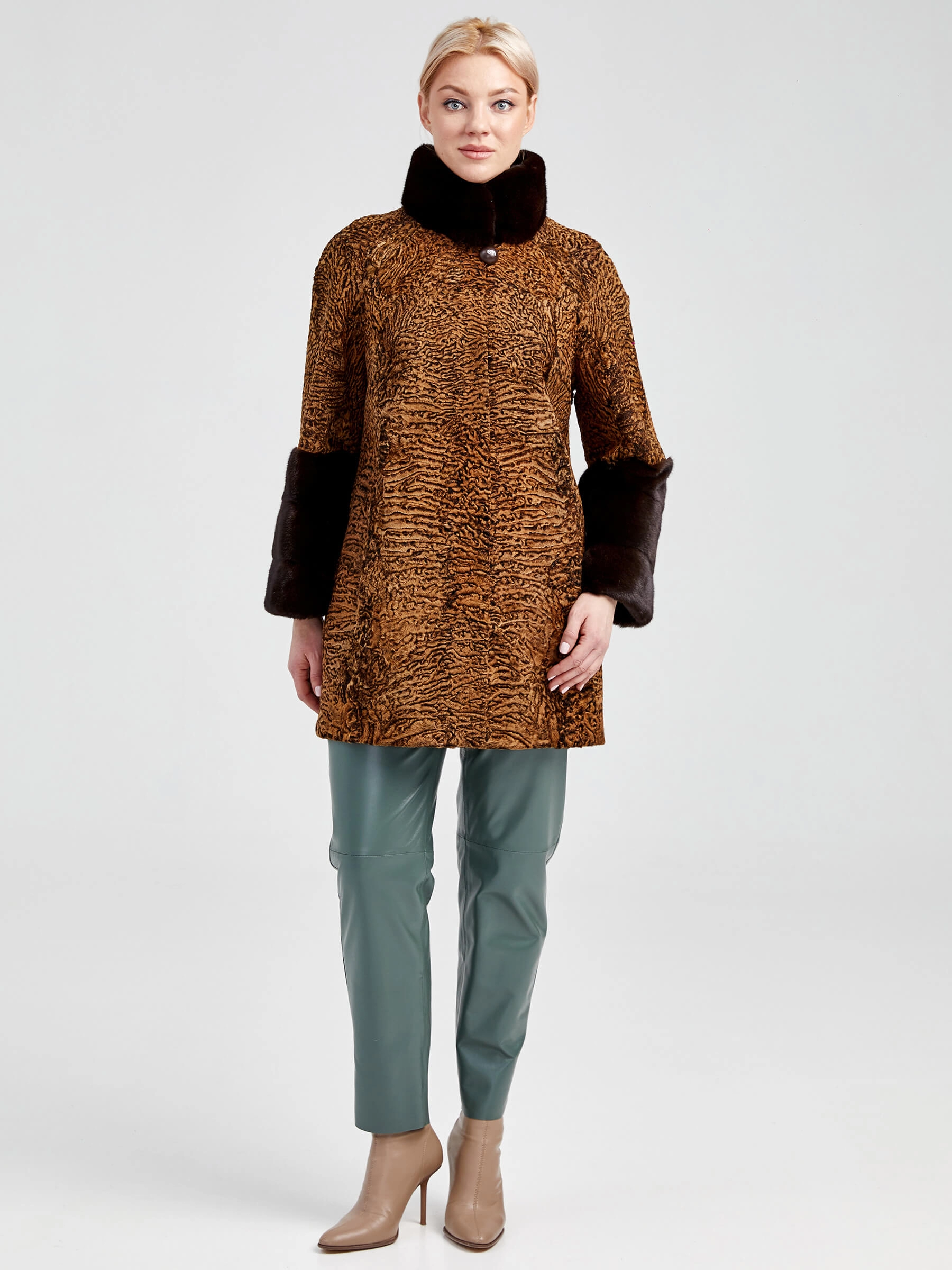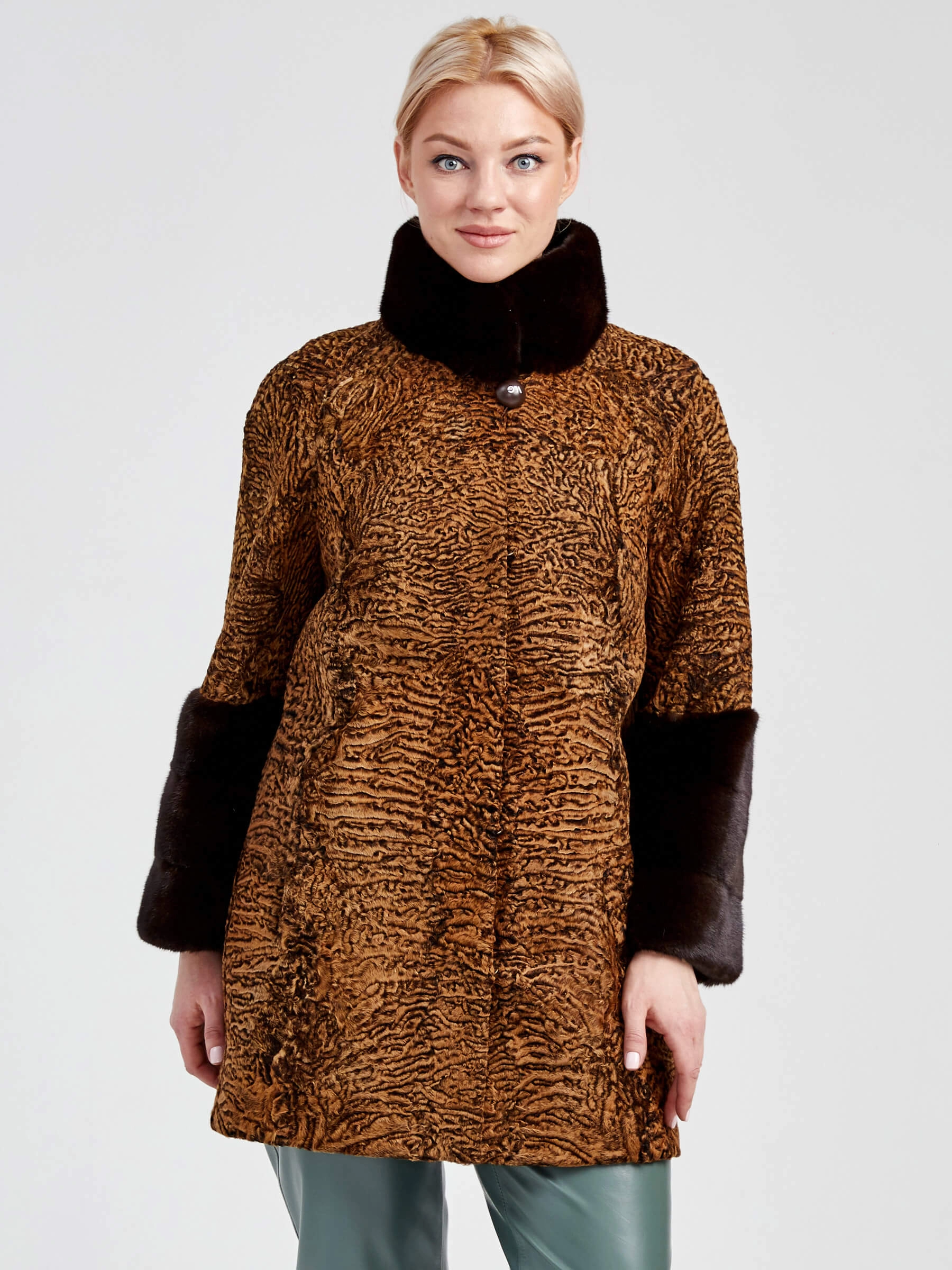 Короткая женская шуба из меха каракуля с отделкой норкой 17101к(сн), намибия, размер 44, артикул 22810