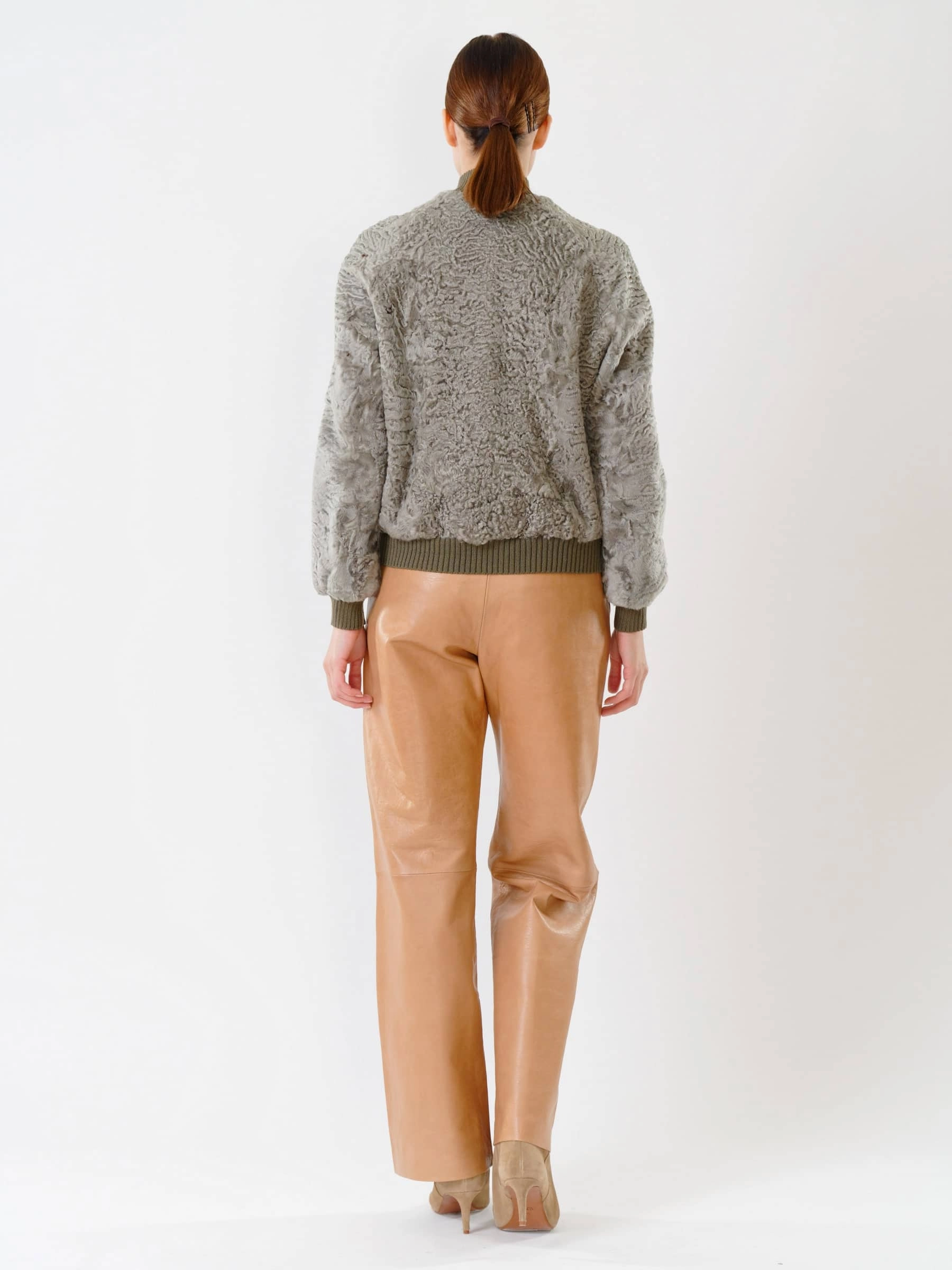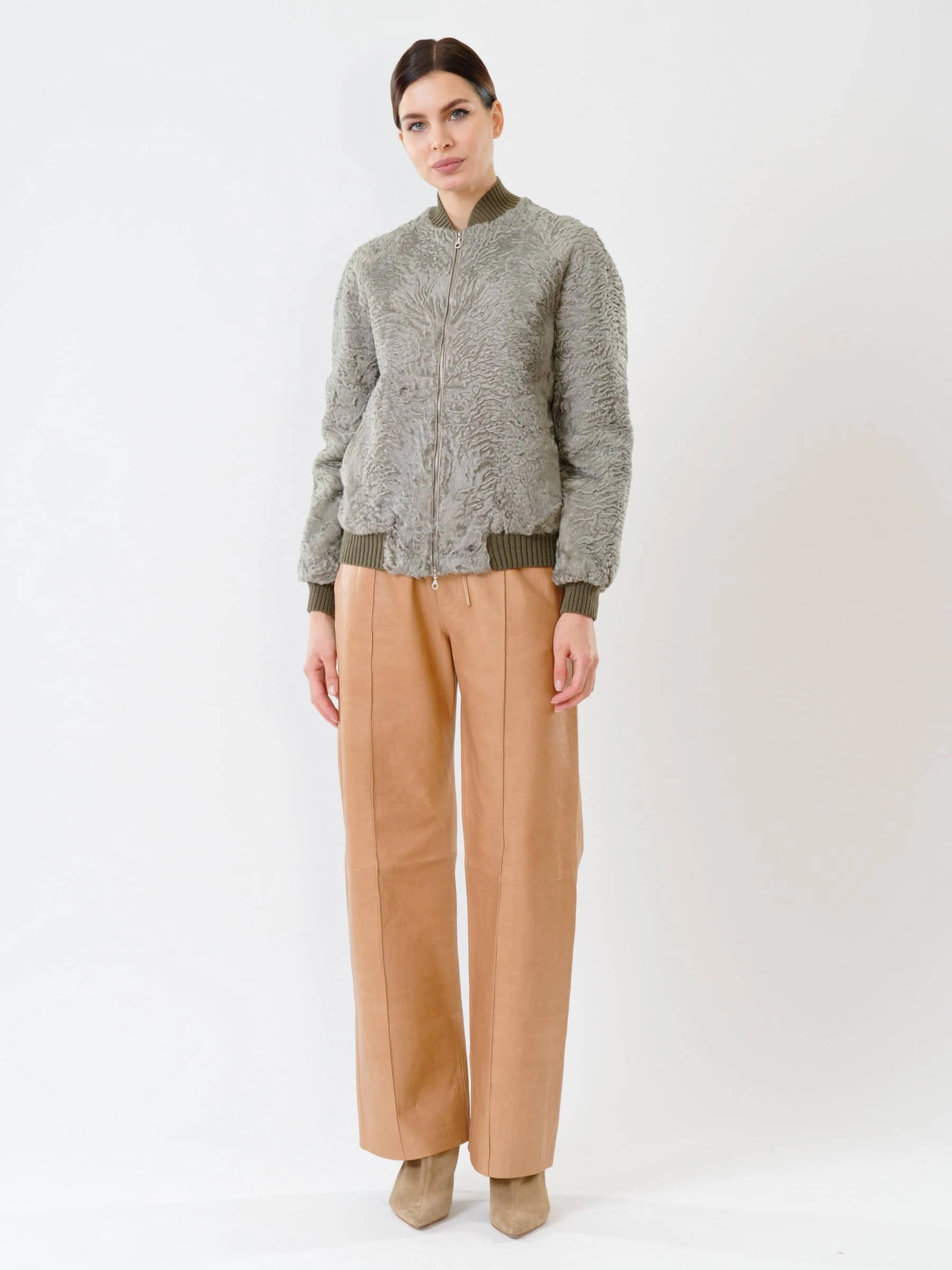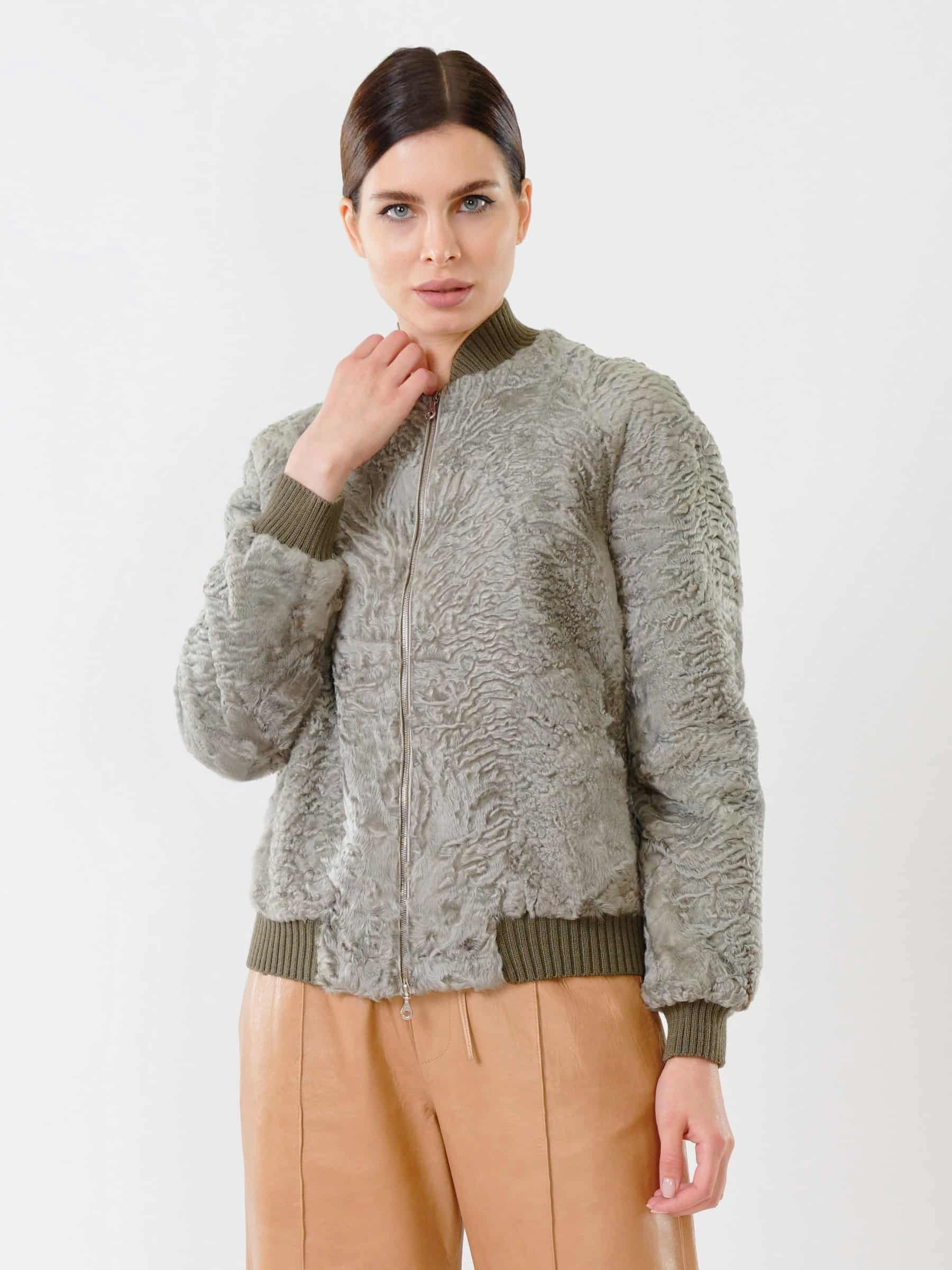 Этот бомбер из афганского каракуля олицетворяет премиальный уровень и сдержанную роскошь. Модель выделяется характерным тугим плоским завитком волоса, что говорит о великолепном качестве меха и ювелирном подборе шкурок по оттенку и структуре. Безупречная работа портных обеспечивает комфортную, идеальную посадку по фигуре. Общая концепция — выдержанно, стильно, ничего лишнего. Это современная и статусная вещь, создающая лаконичный, но впечатляющий образ.