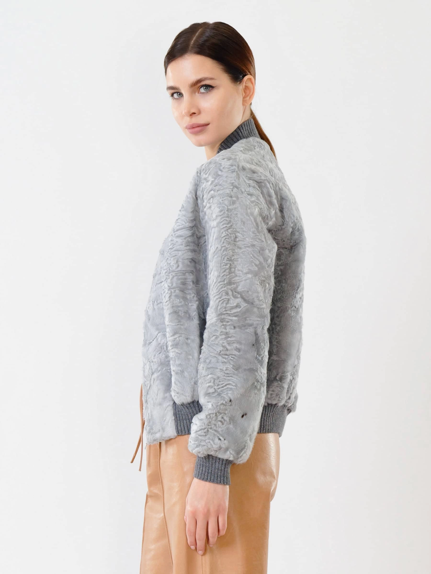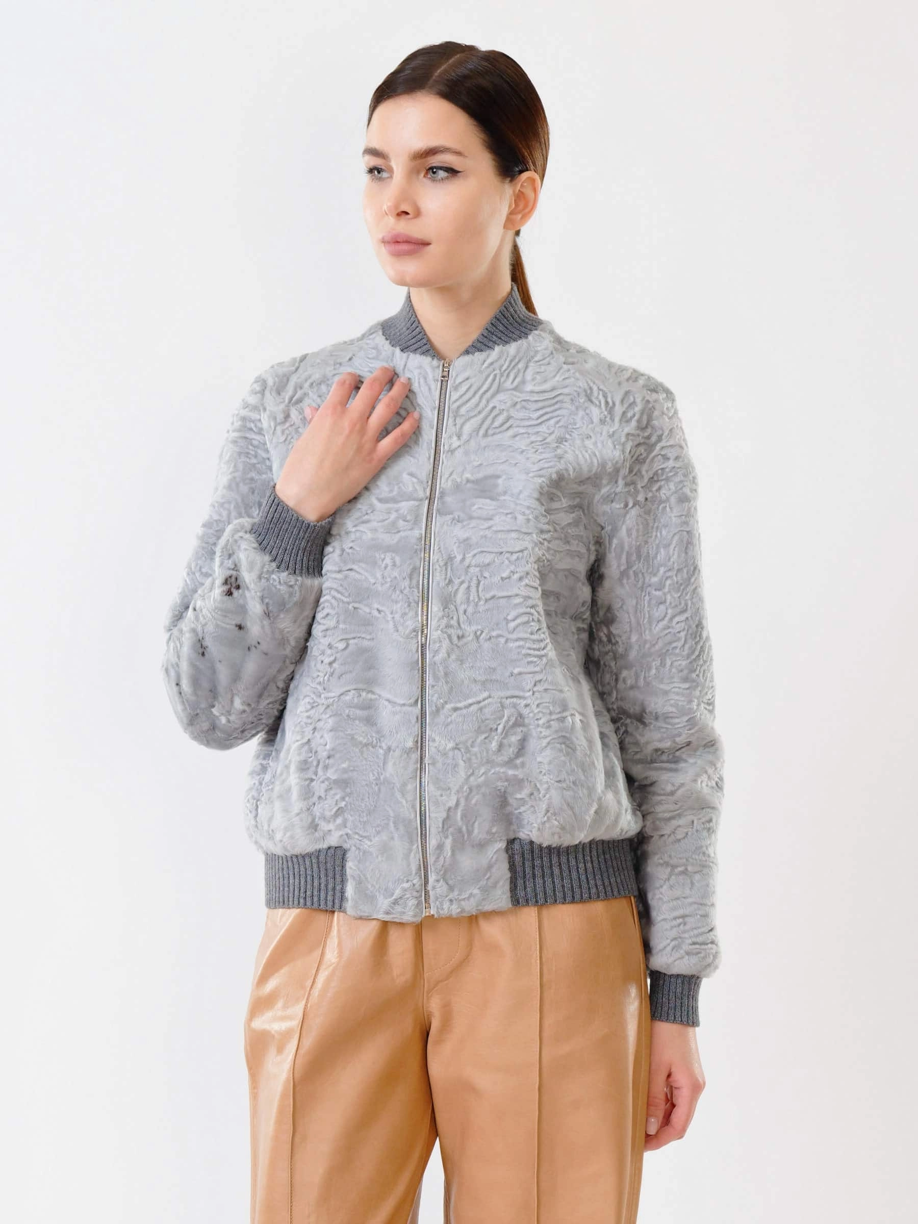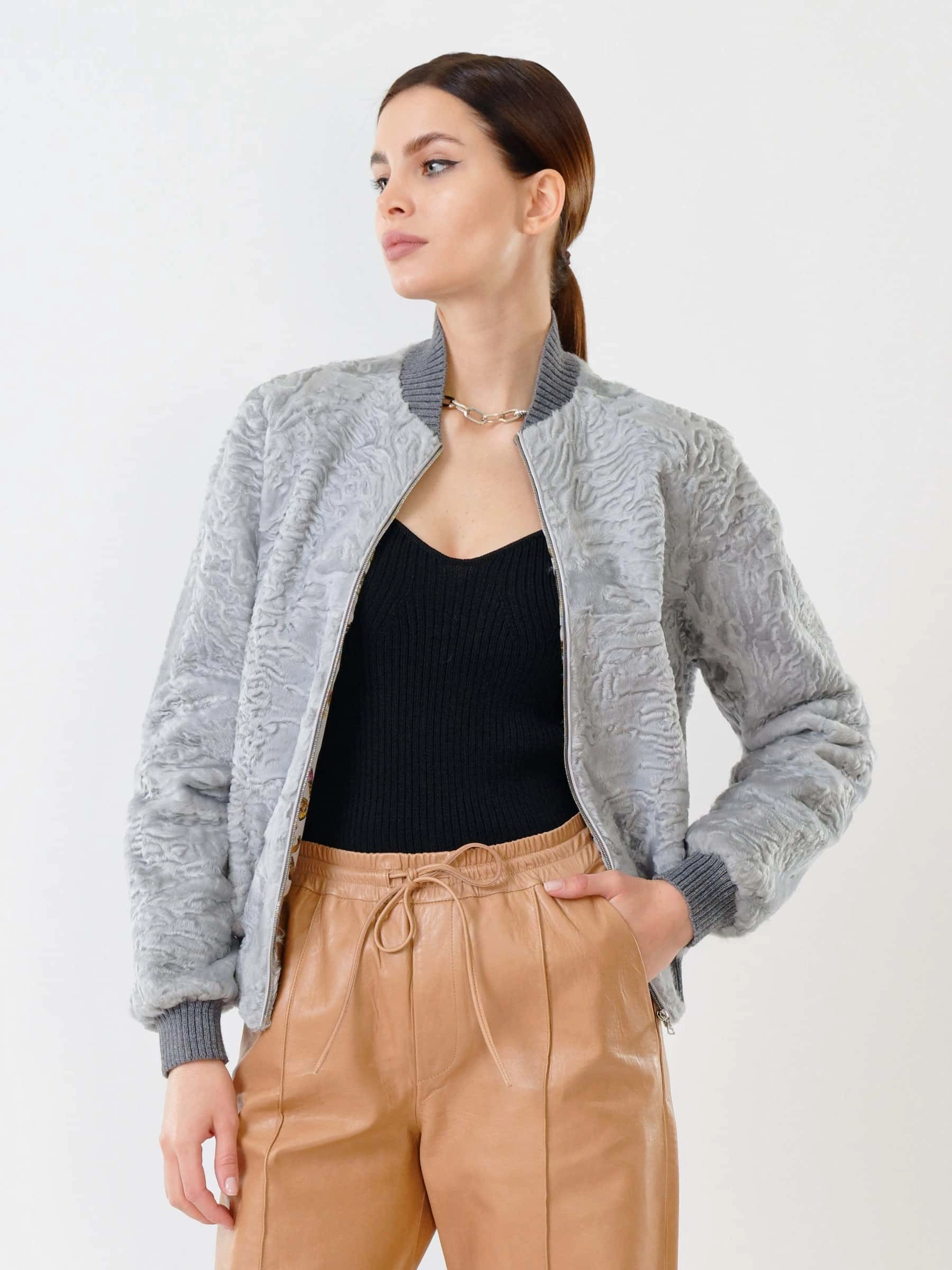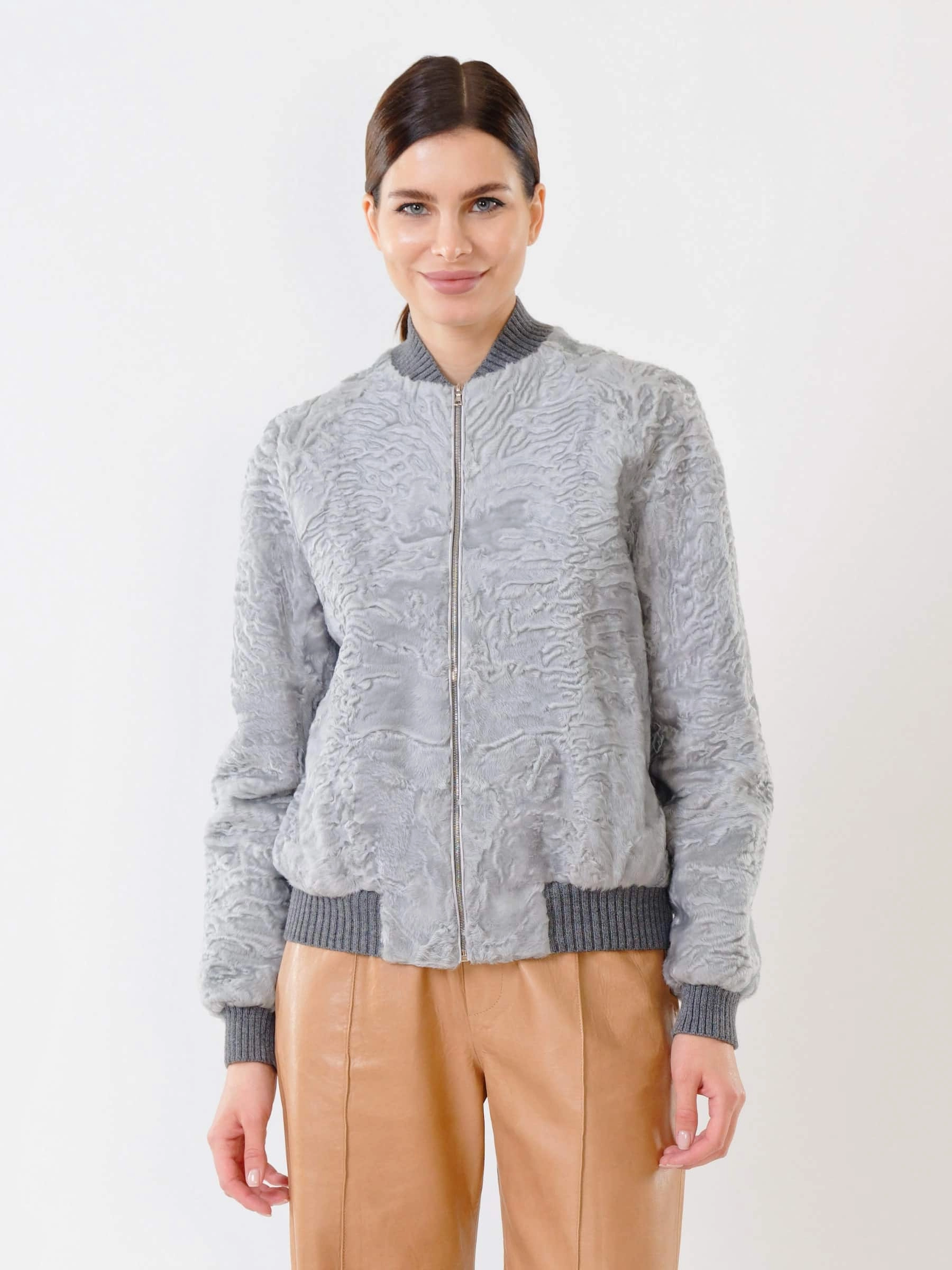 Бомбер из каракуля женский 17105, серый, размер 40, артикул 22590