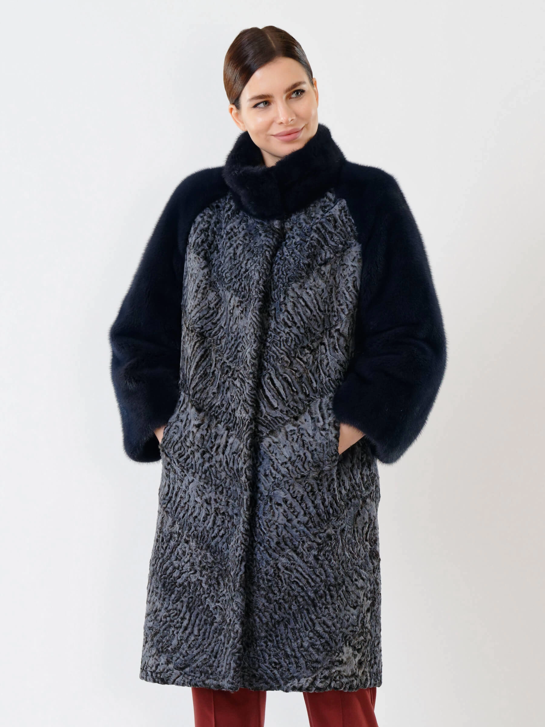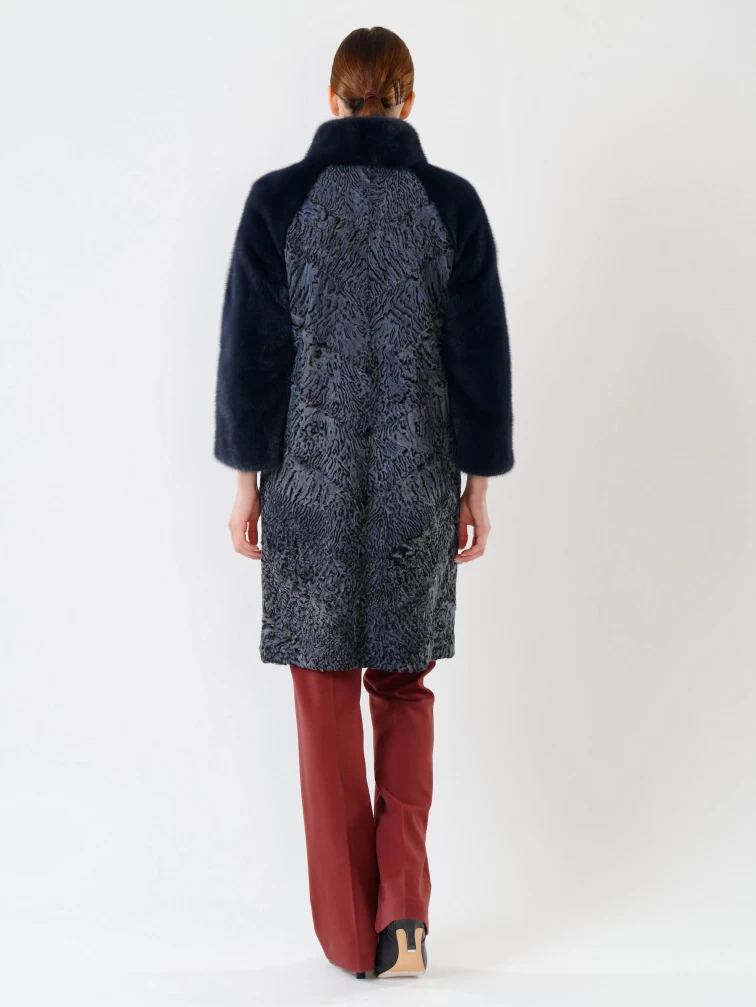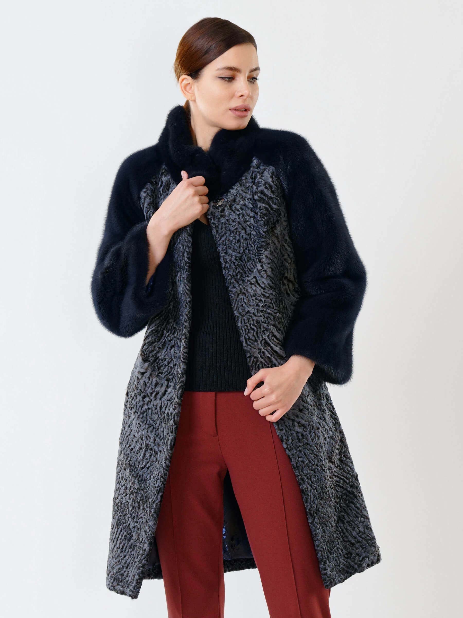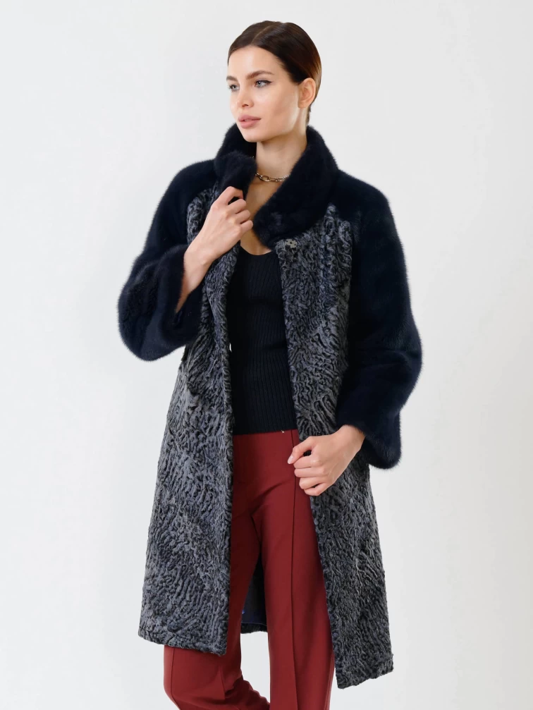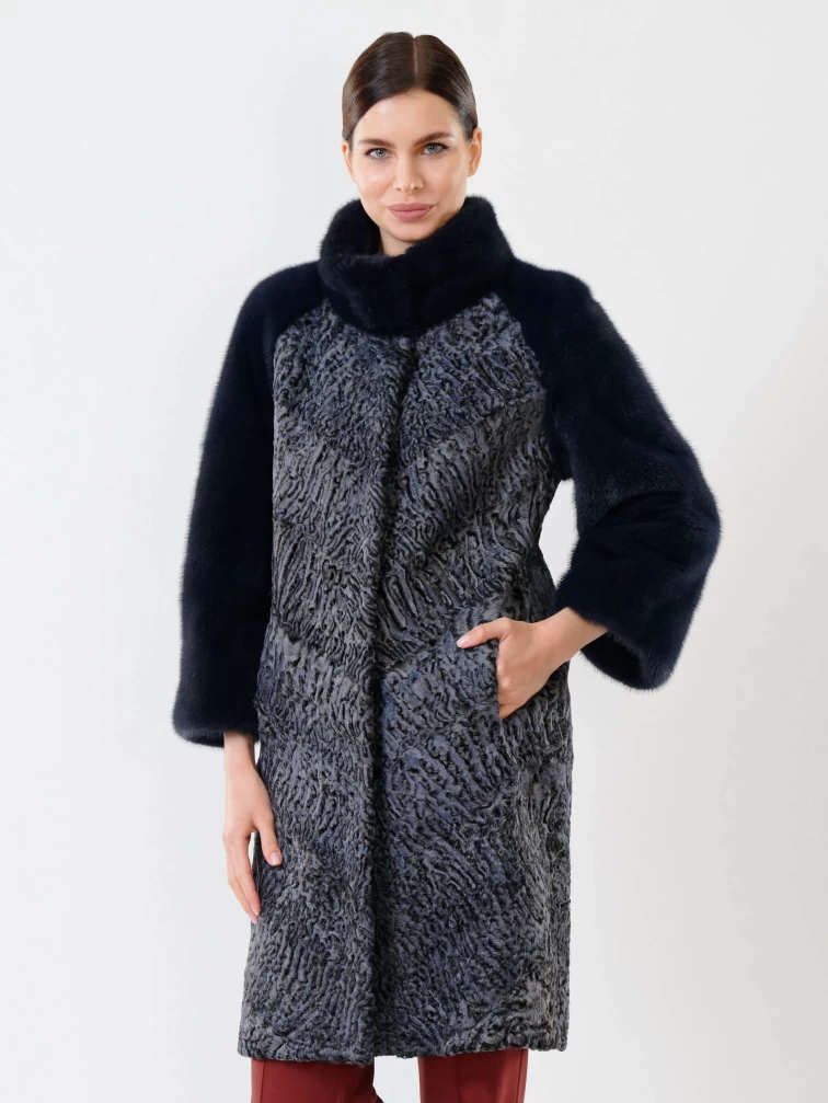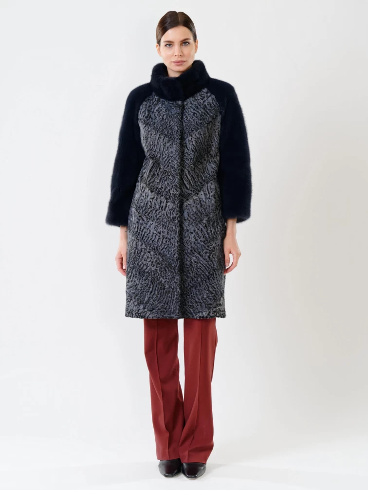 Пальто из каракуля и меха норки. Ювелирный подбор шкурок по оттенку и фактуре. Безупречная работа портных. Чёткая посадка по фигуре.