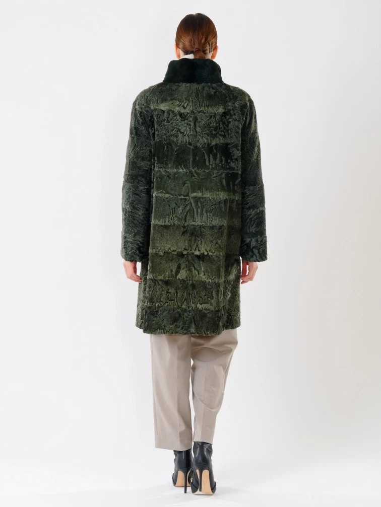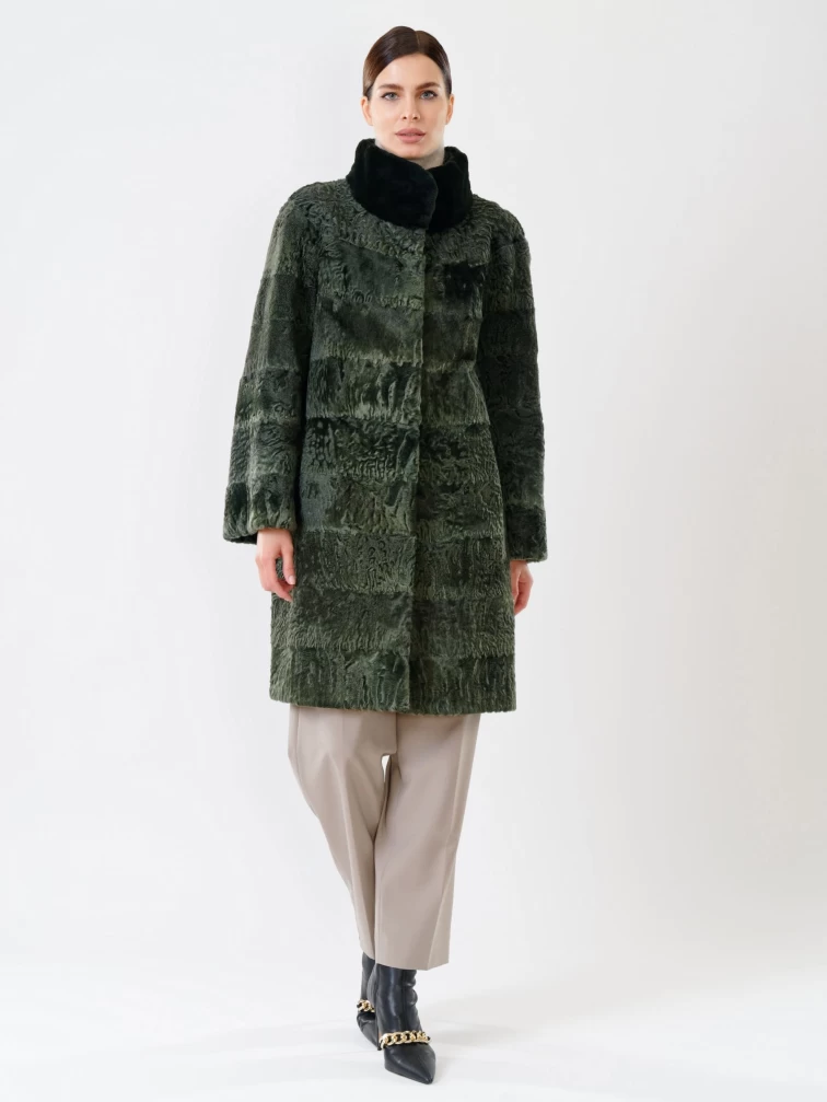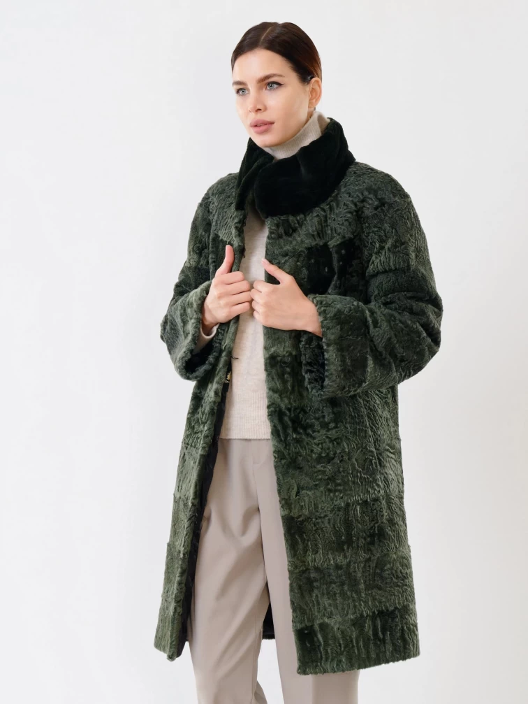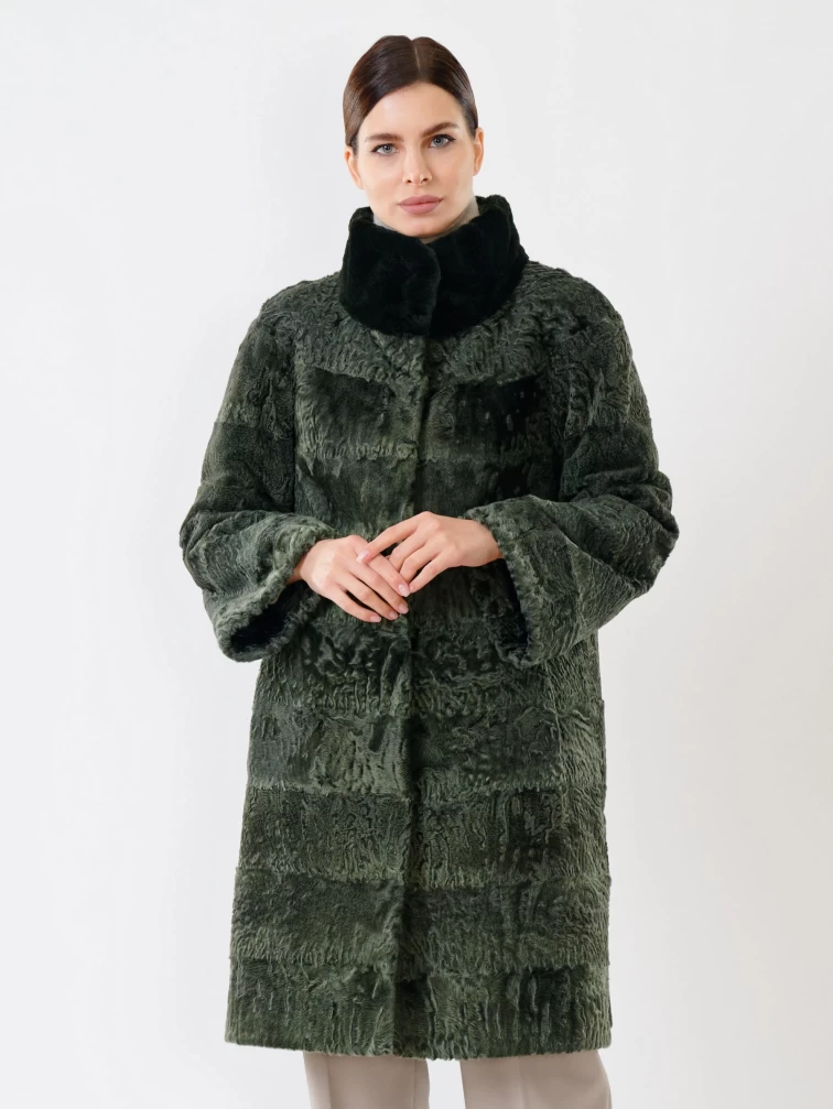 Женская шуба из меха каракуля с мехом бобра 325, зеленая, размер 48, артикул 22480