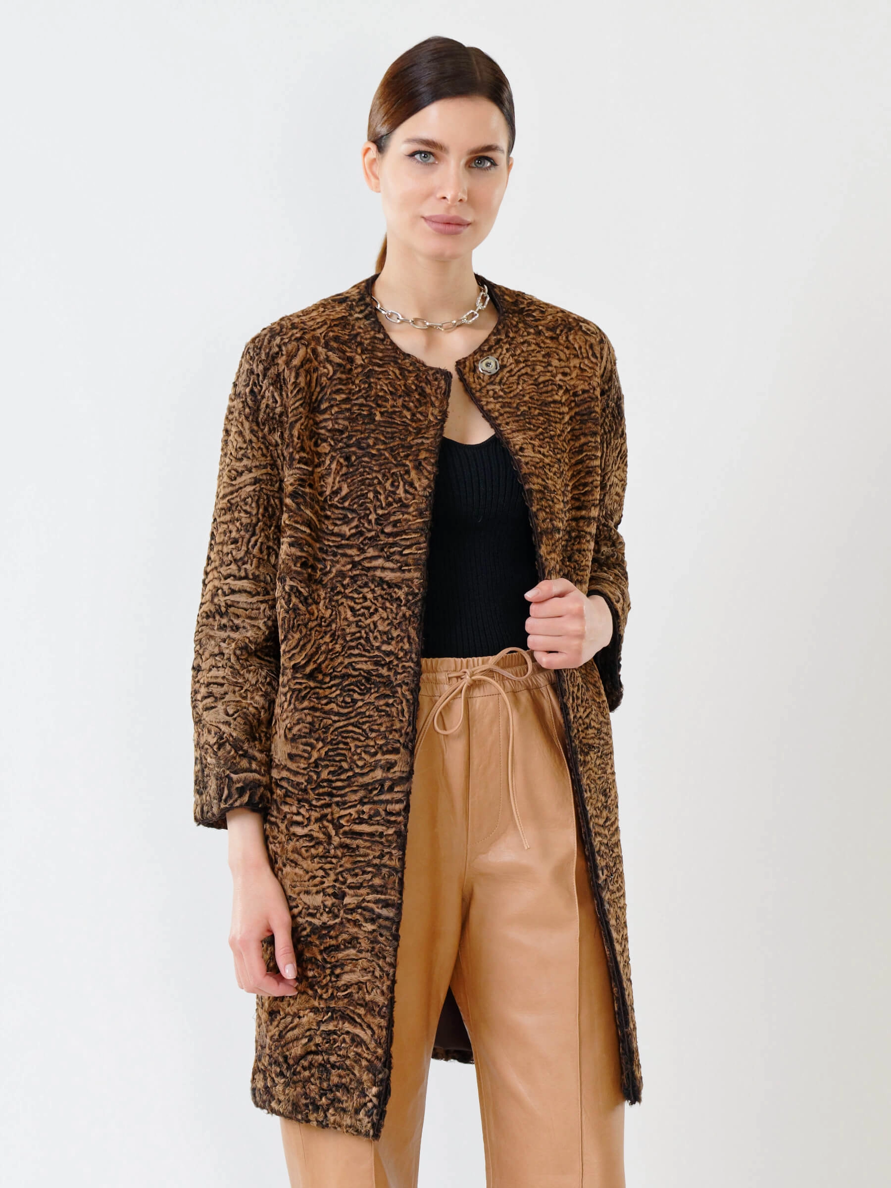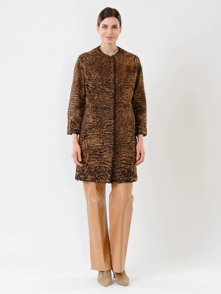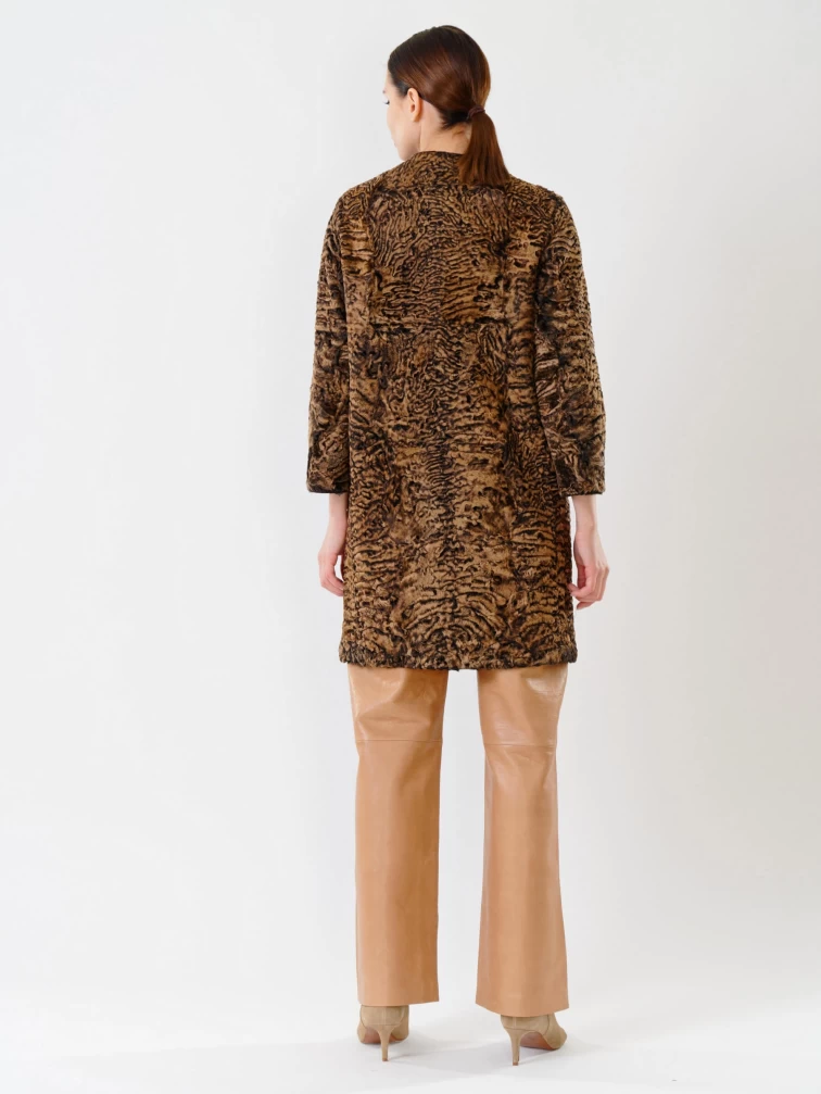 Элегантное пальто из афганского каракуля. Тугой плоский завиток волоса каракуля. Великолепное качество меха. Удобные карманы. Ювелирный подбор шкурок по оттенку и структуре волоса. Аккуратная работа портных. Чёткая посадка по фигуре. Выдержано. Стильно. Ничего лишнего. Премиальный уровень.