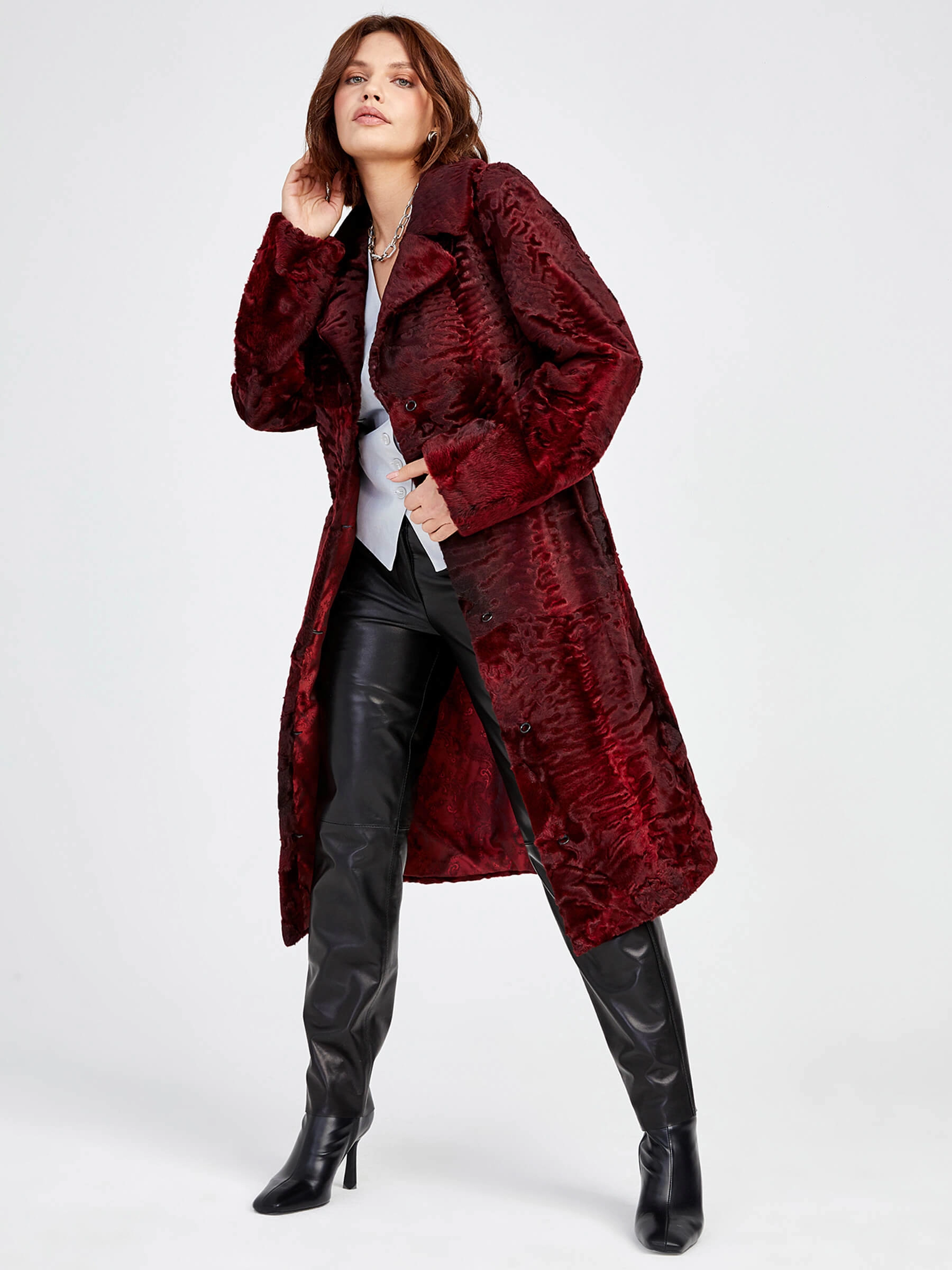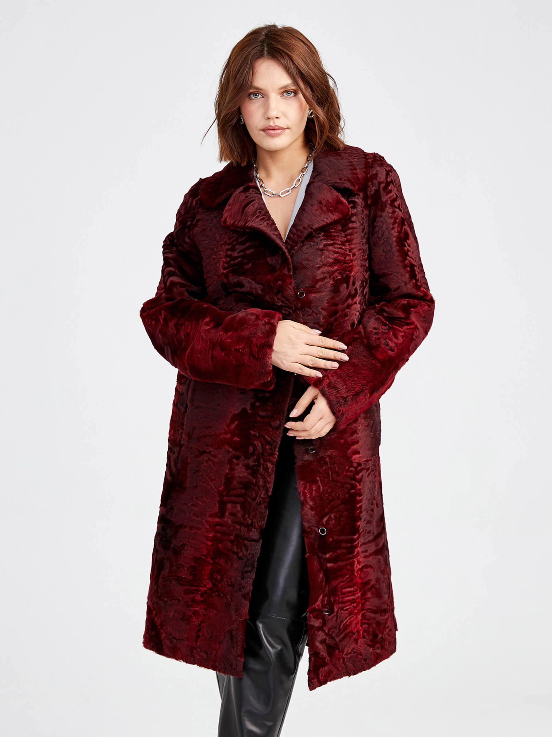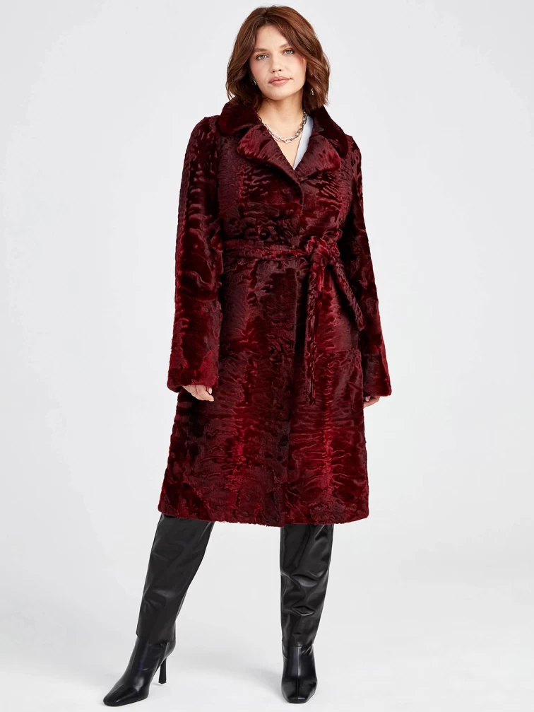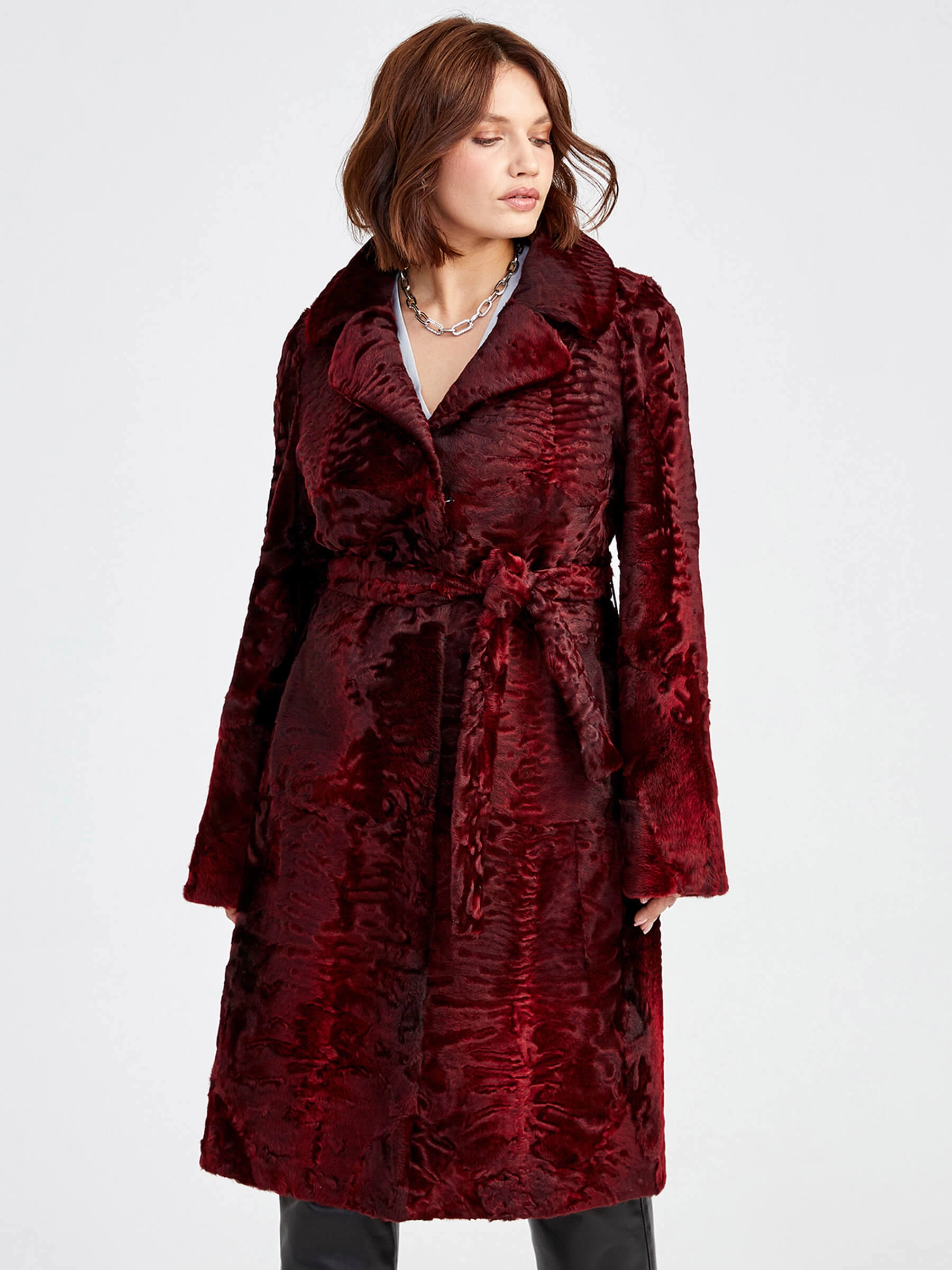 Товар зимний комплект женский: шуба из каракуля лола (в)_2 + брюки 03, бордовый/черный, р. 48, арт. 111244.