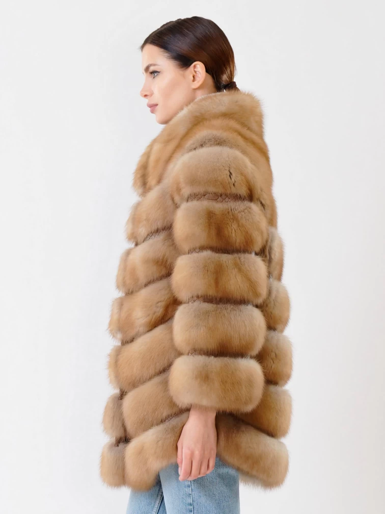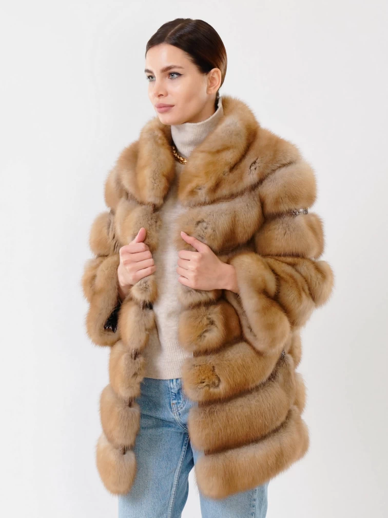 Шуба из меха куницы премиум класса для женщин С-16, светло-коричневая, размер 44, артикул 19090