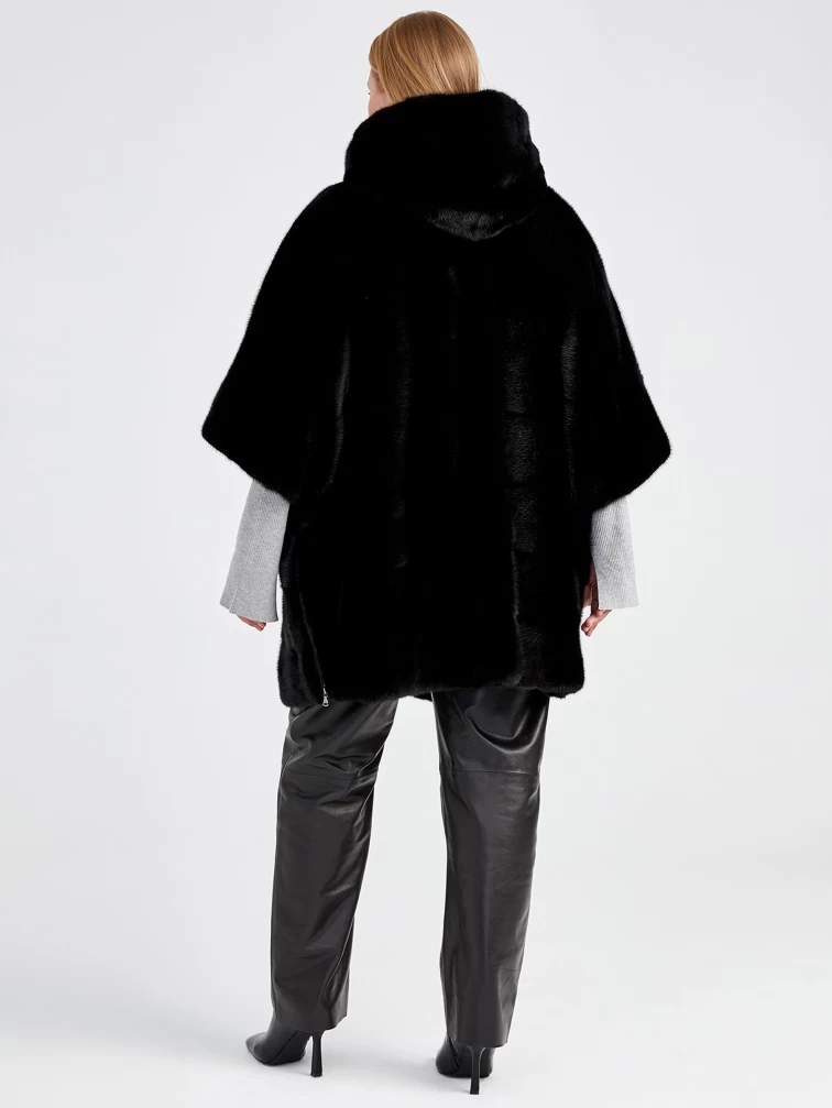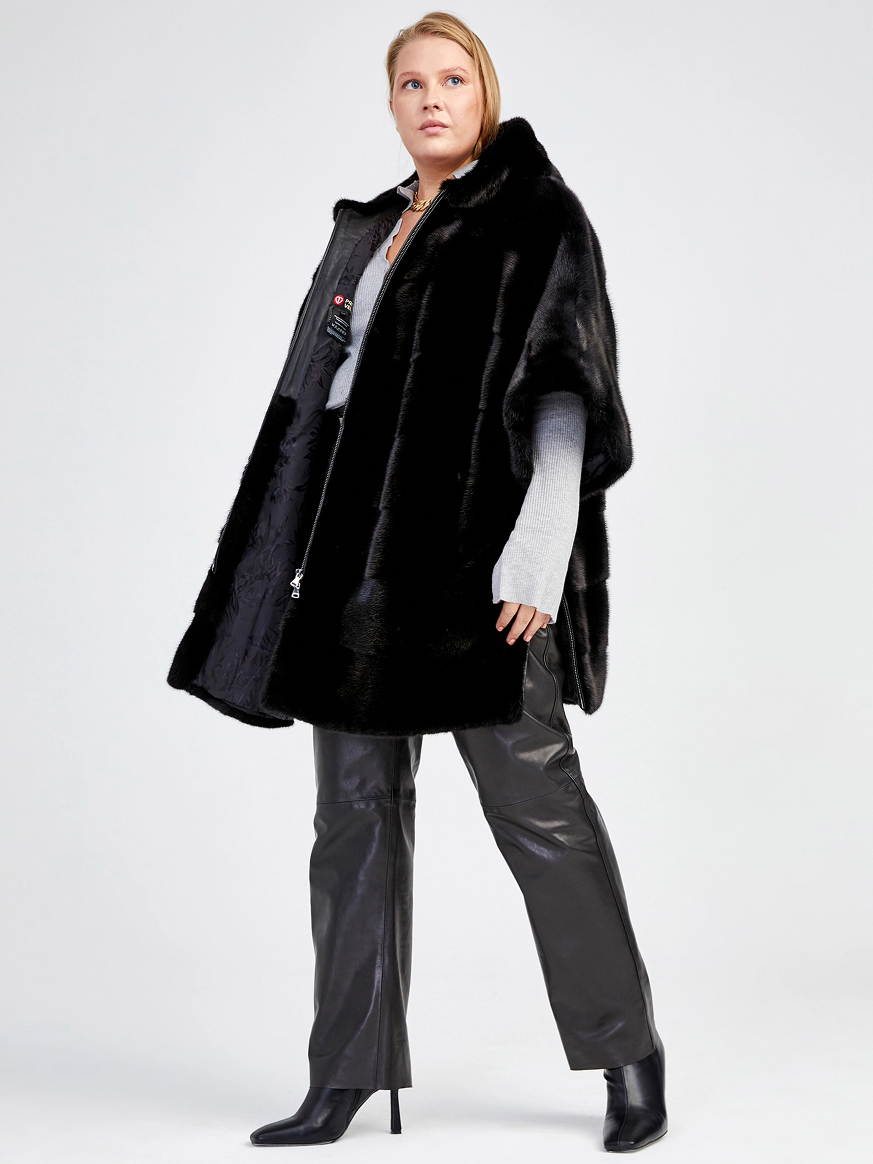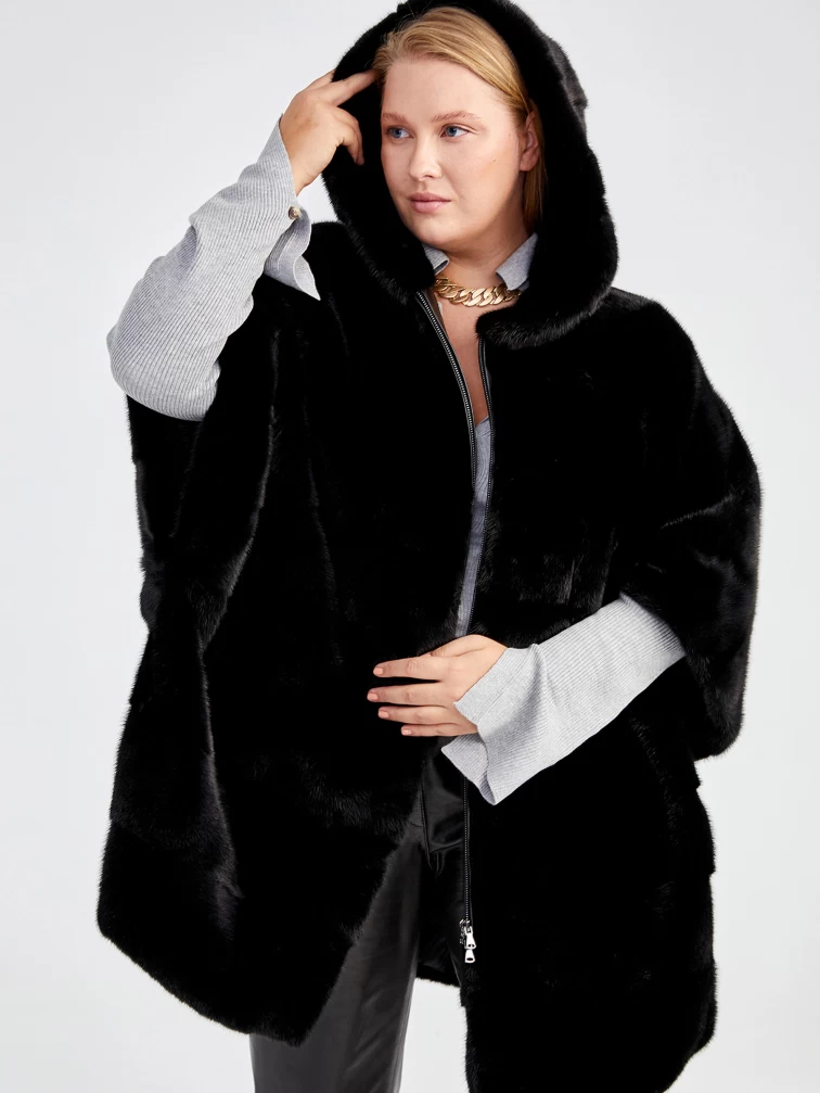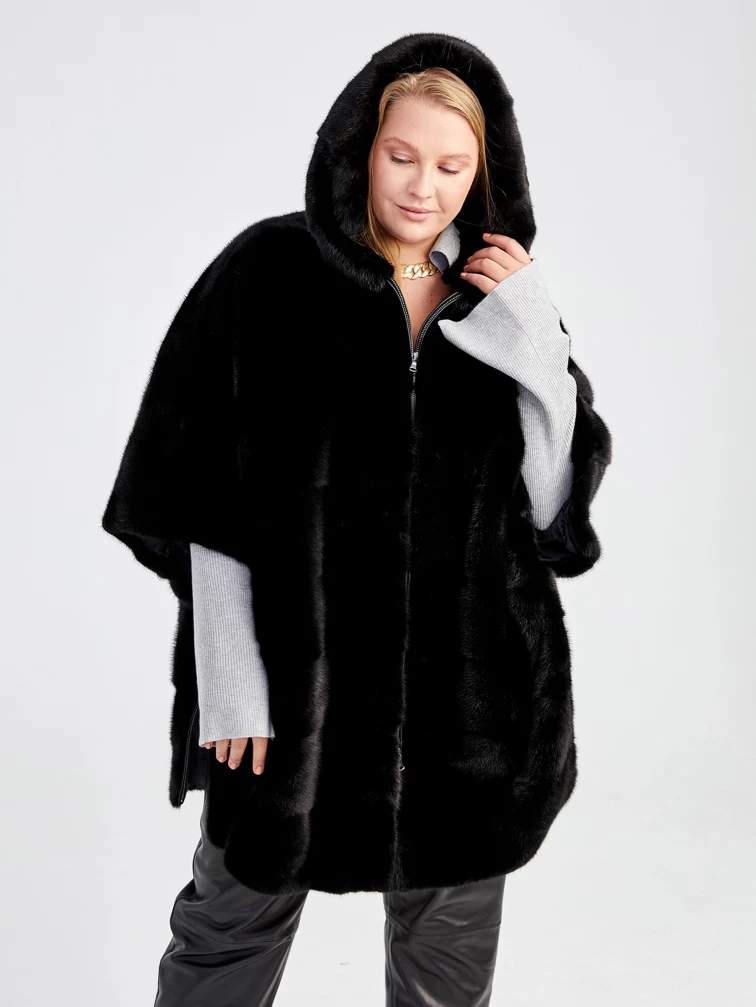 Товар шуба из меха норки с капюшоном женская эмма, черная, размер 66, артикул 32950 выполнен из норка с застежкой клипсы. Рассчитан на сезон: осень-зима. Длина изделия свыше 90 см, силуэт свободный.