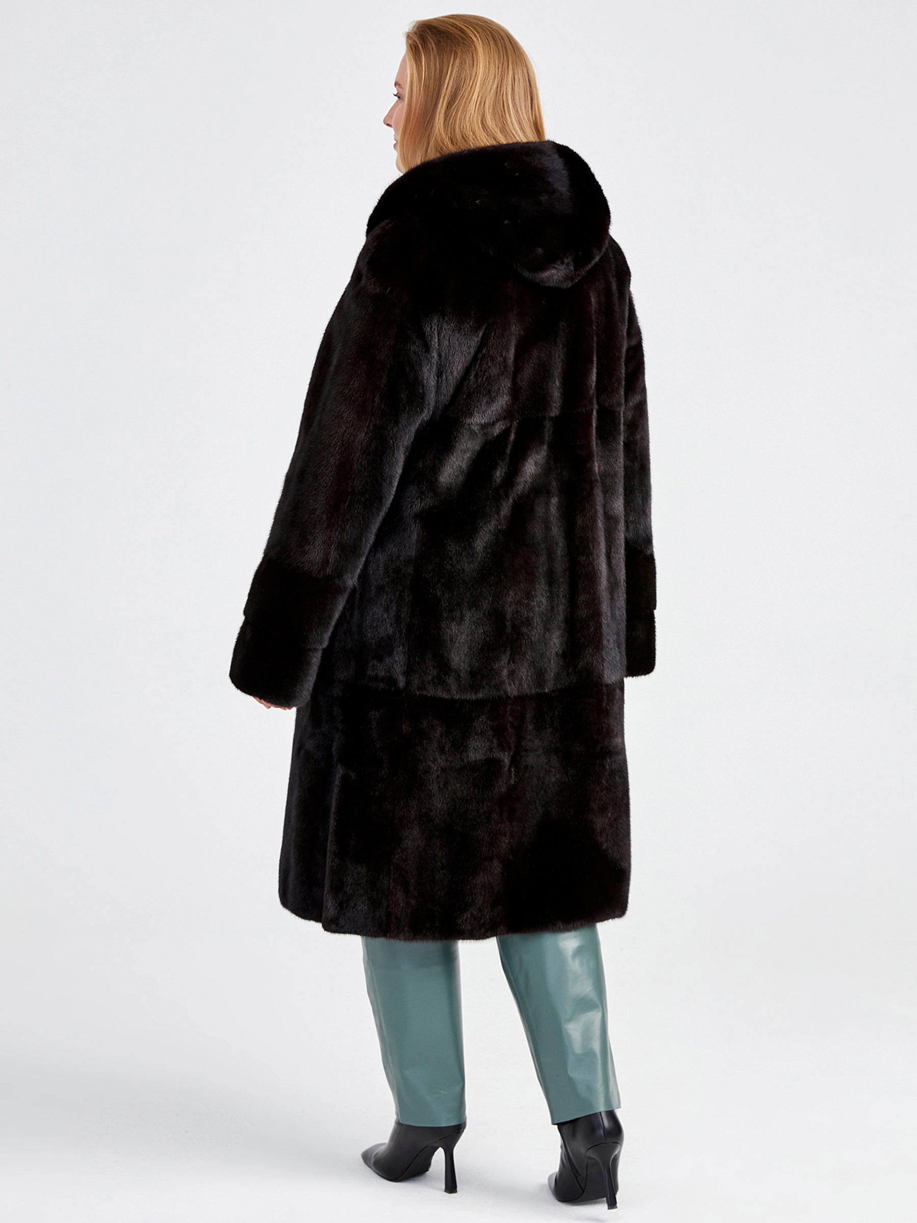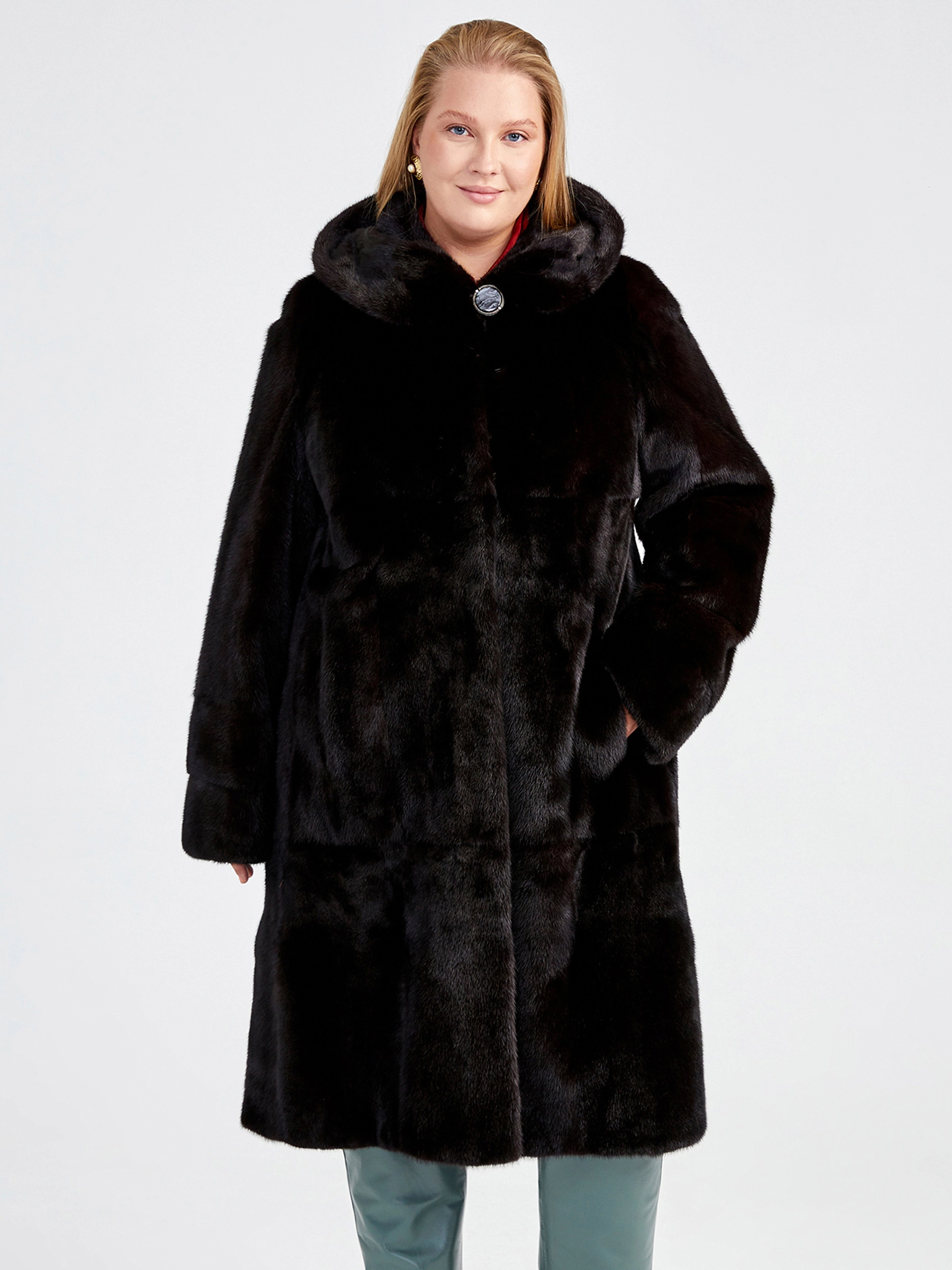 Классическая шубка из меха скандинавской норки в расклешённом силуэте трапеция — это идеальный баланс между уютом и стилем для повседневной носки. Модель длиной свыше 90 см отличается безупречной конструкцией: чёткий втачной рукав, удобный несъёмный капюшон и практичные прорезные карманы. Густой мех с коротким остевым волосом, акцент на безупречный крой без лишней отделки, мягкая подкладка из 100% вискозы и надёжные клипсы — каждая деталь гарантирует премиальное качество и комфорт на протяжении всего сезона осень-зима.