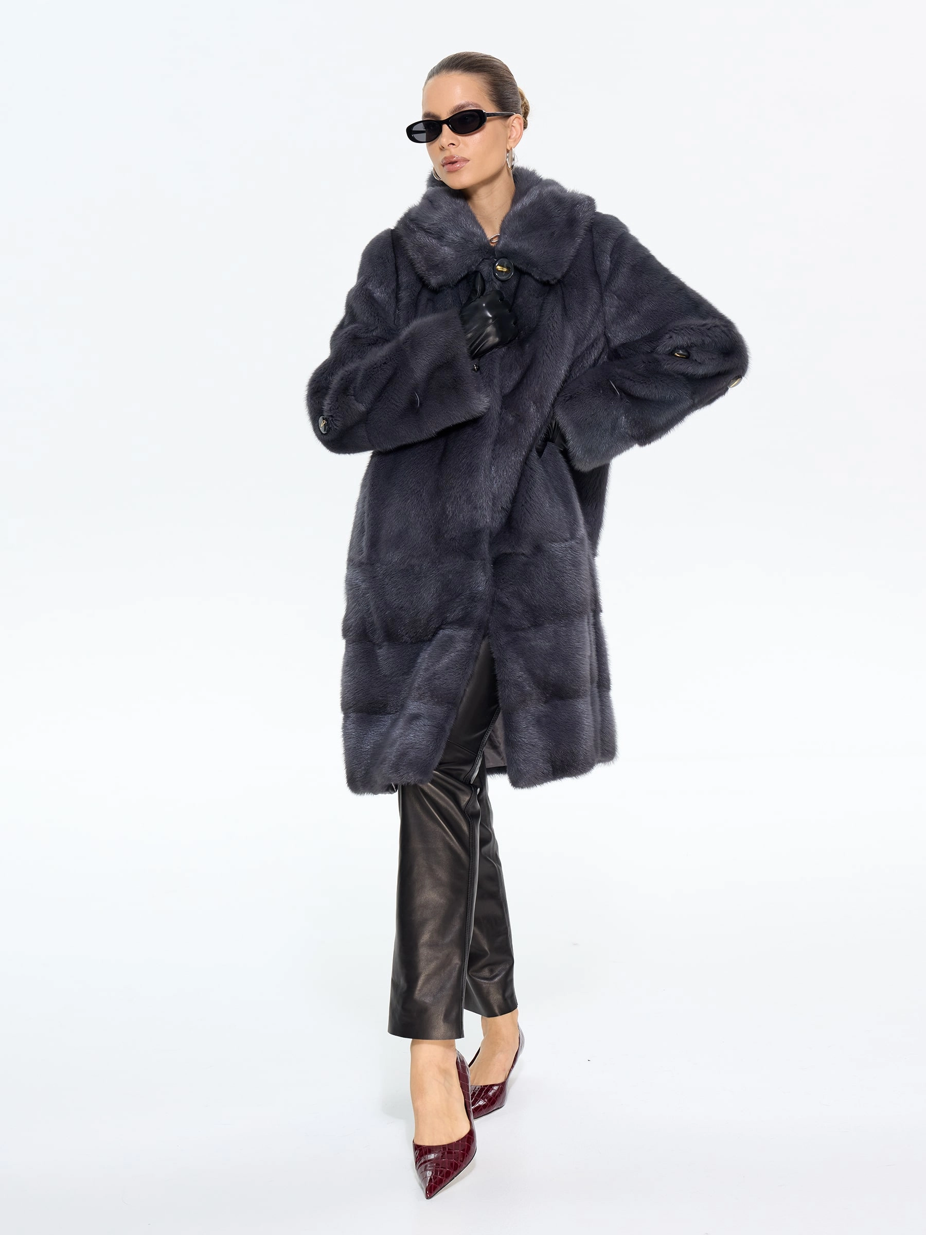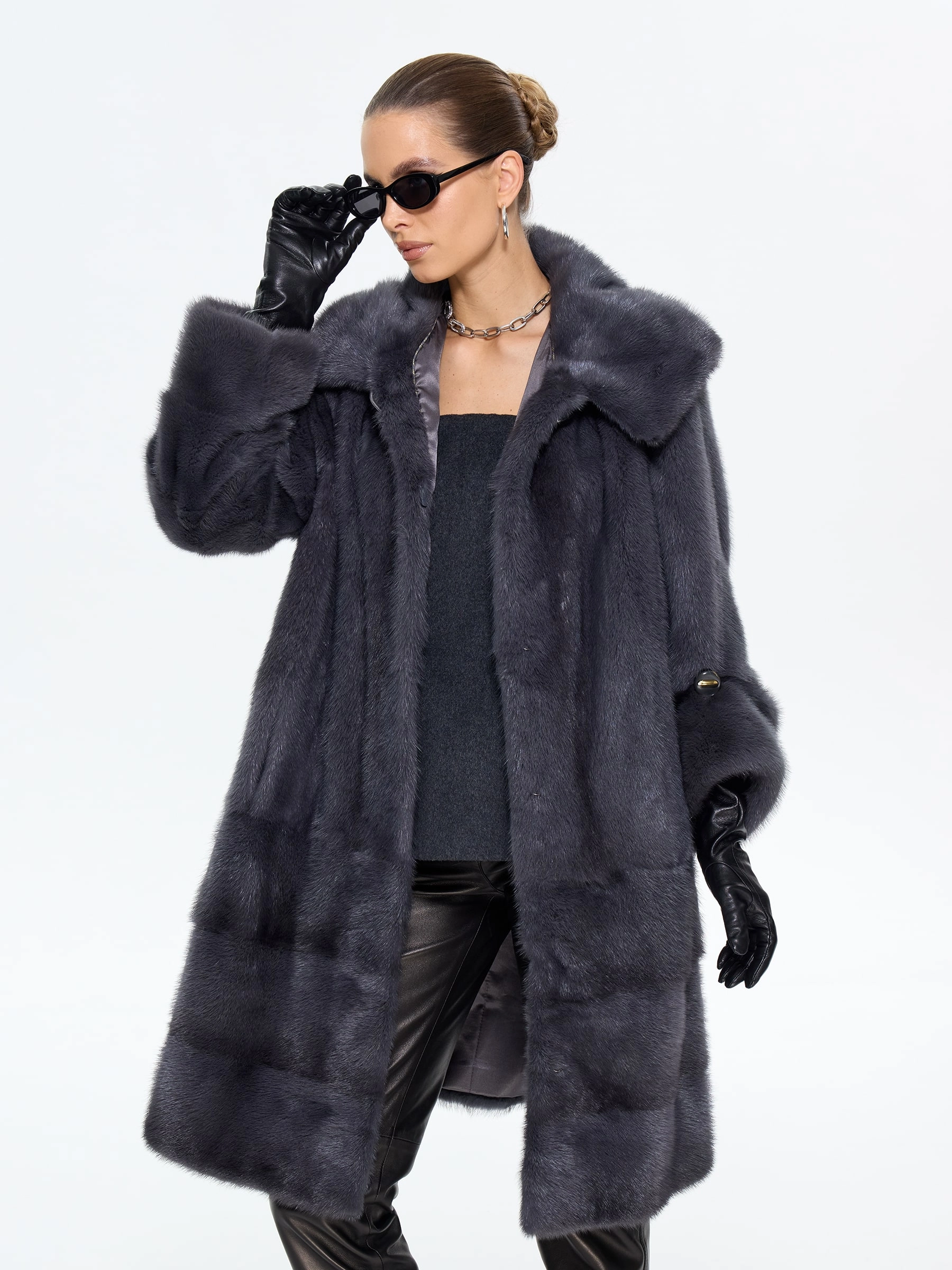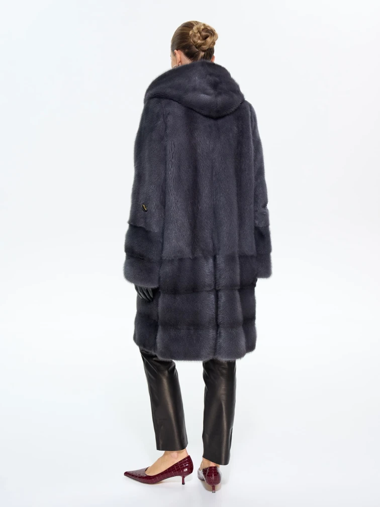 Женская шуба из меха норки с капюшоном М-101-3- 319, графитовая, размер 54, артикул 65380