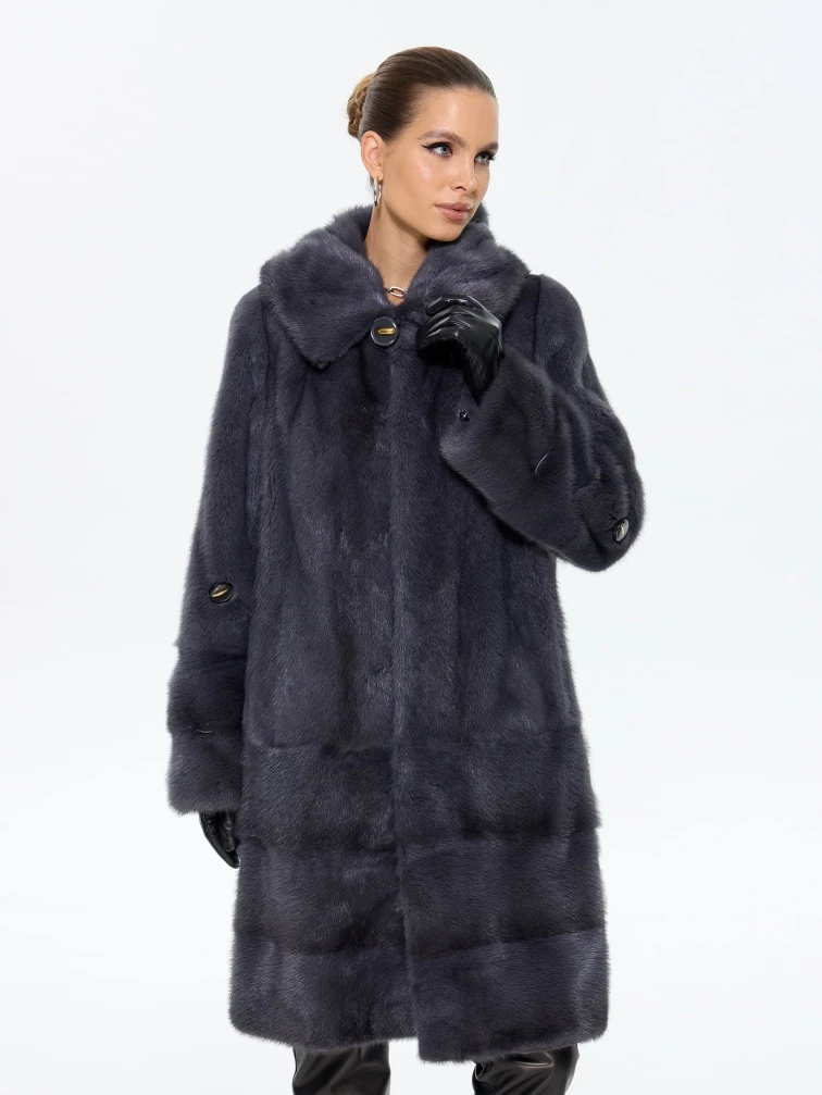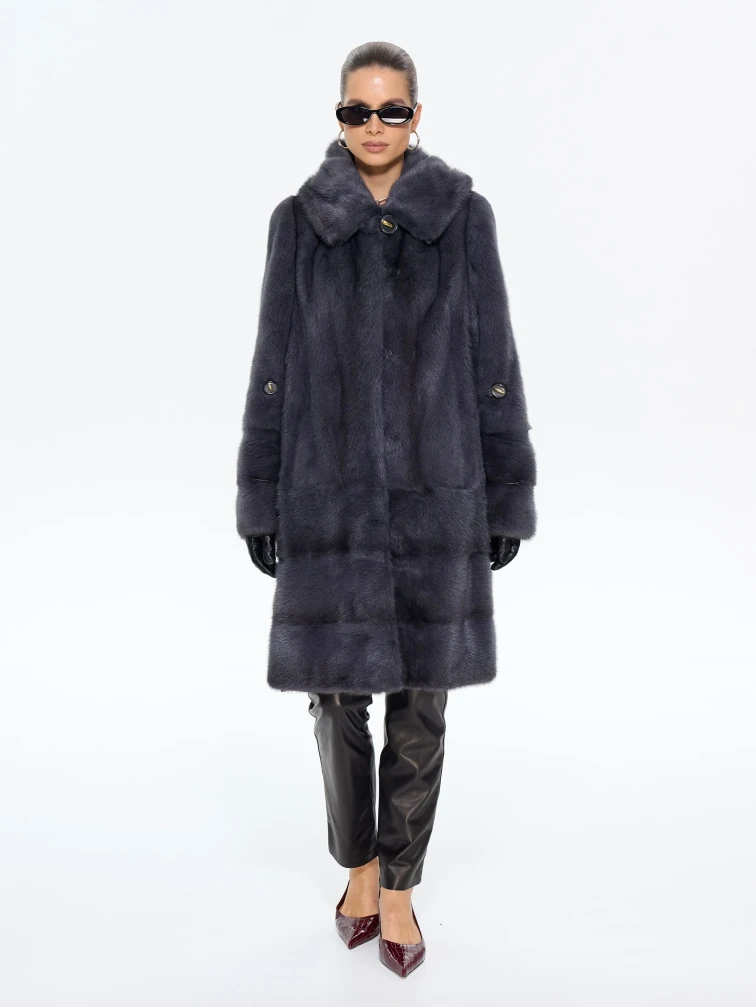 Классическая шуба из меха норки премиум-класса в глубоком оттенке «графит» — это инвестиция в ваш безупречный стиль. Ее прямой силуэт длиной 100 см, практичный капюшон и уникальная деталь — регулируемый по длине втачной рукав — позволяют идеально адаптировать образ под ваше настроение. Совет от стилистов: универсальность этой шубы поражает. Для повседневной элегантности сочетайте ее с джинсами, водолазкой и уггами, а для вечернего выхода — набросьте на плечи поверх однотонного платья-футляра. Эта модель не просто согреет, а стаольным образом подчеркнет вашу утонченность и чувство стиля в любой ситуации.