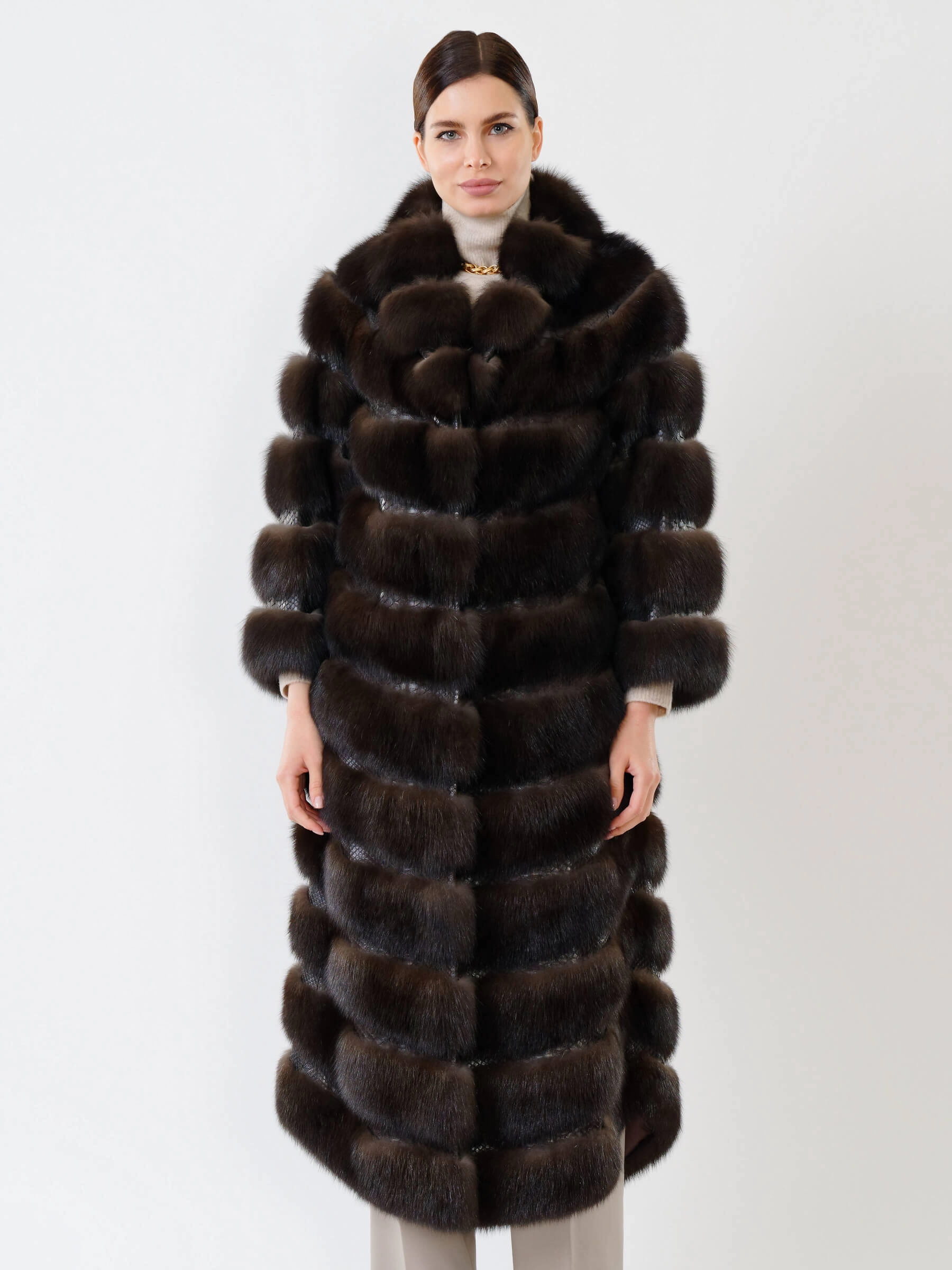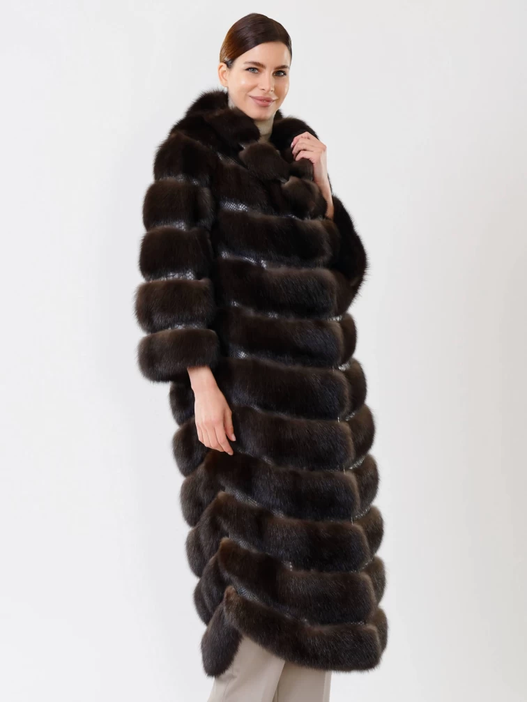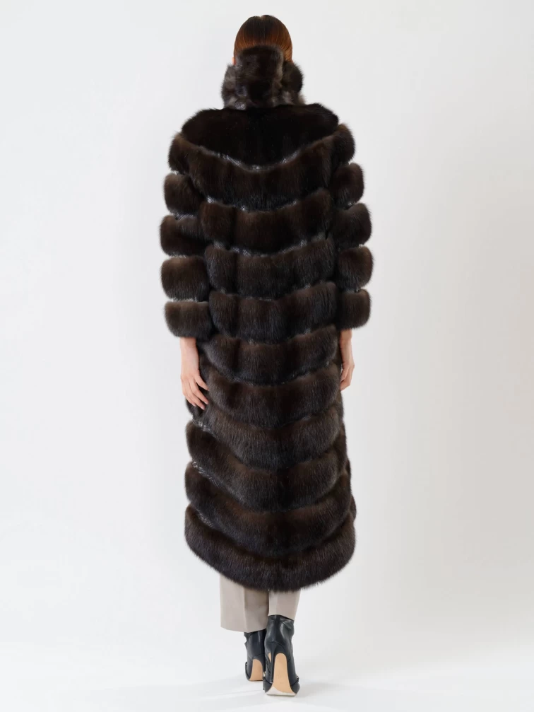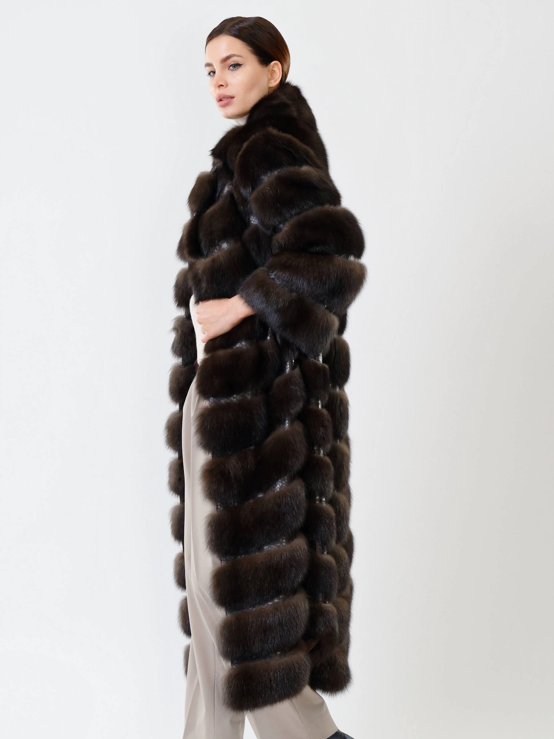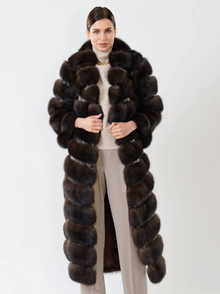 Женская длинная шуба из меха соболя премиум класса 314, коричневая, размер 48, артикул 19060