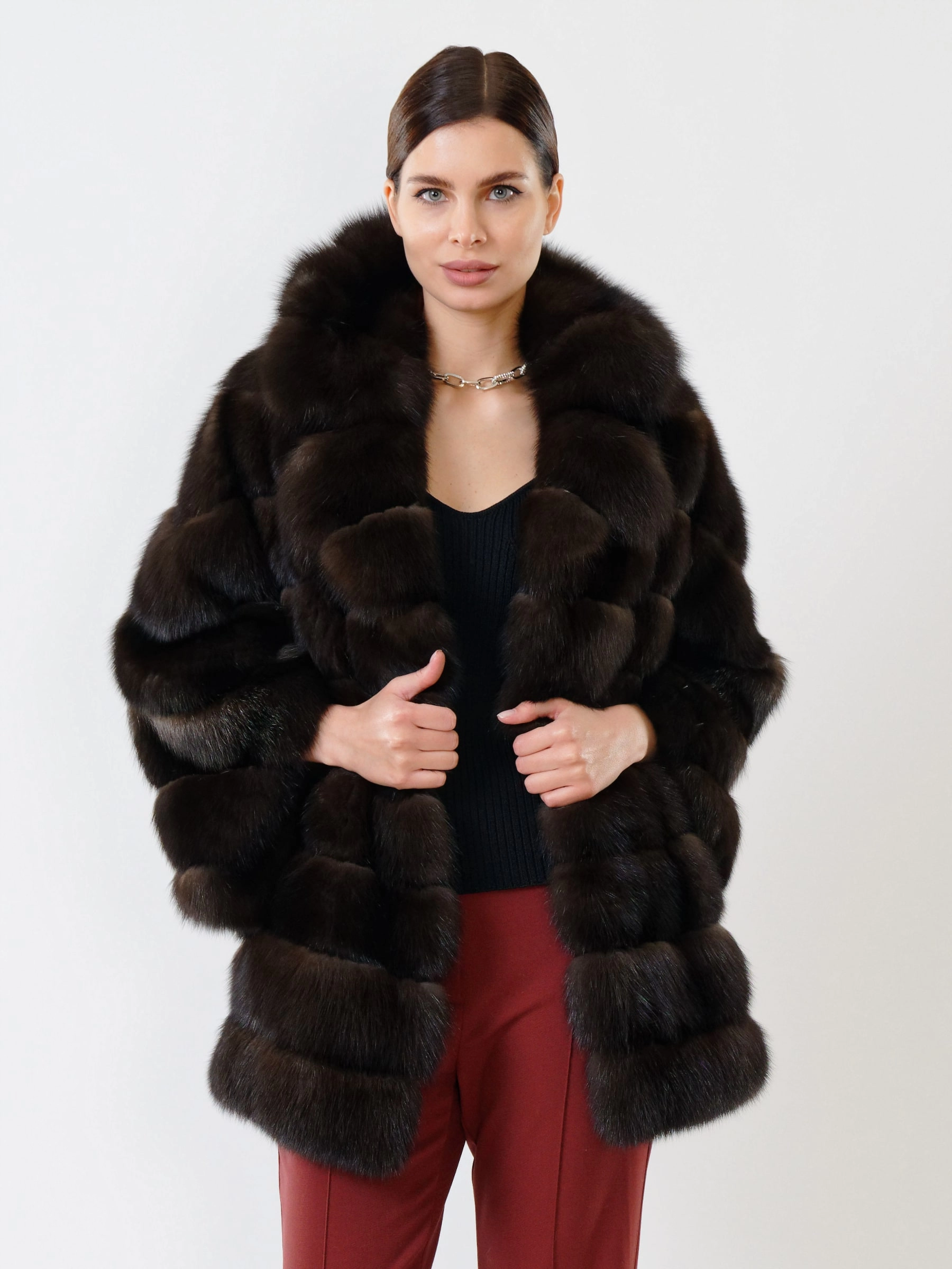 Шуба из меха соболя премиум класса для женщин 323, коричневая, размер 46, артикул 19110