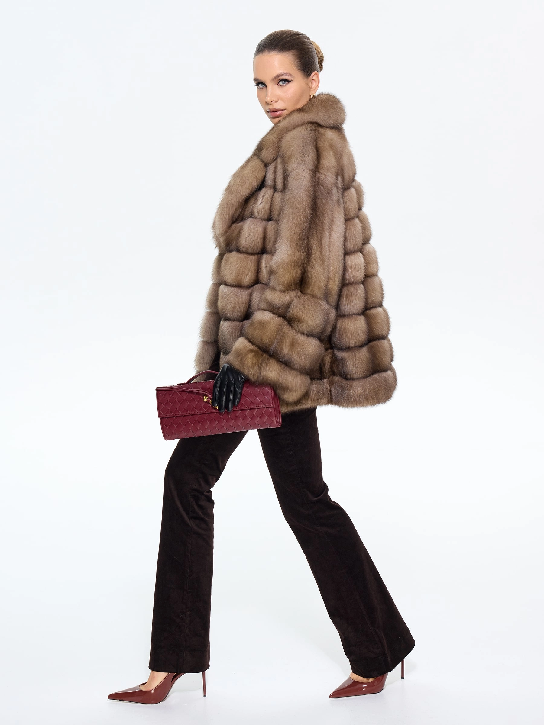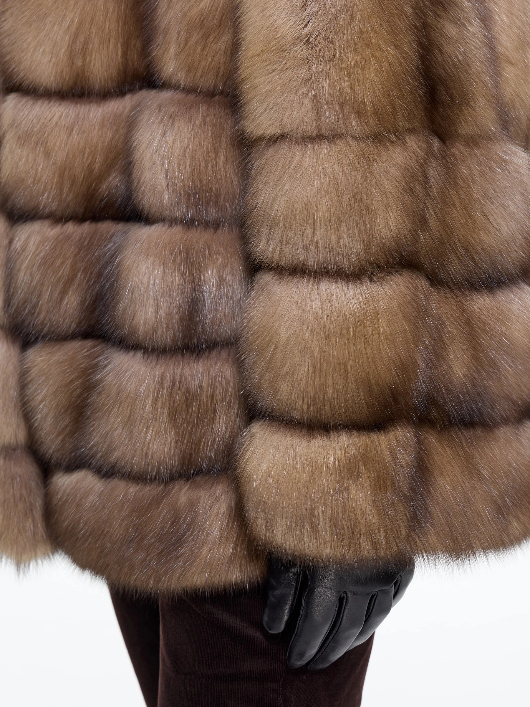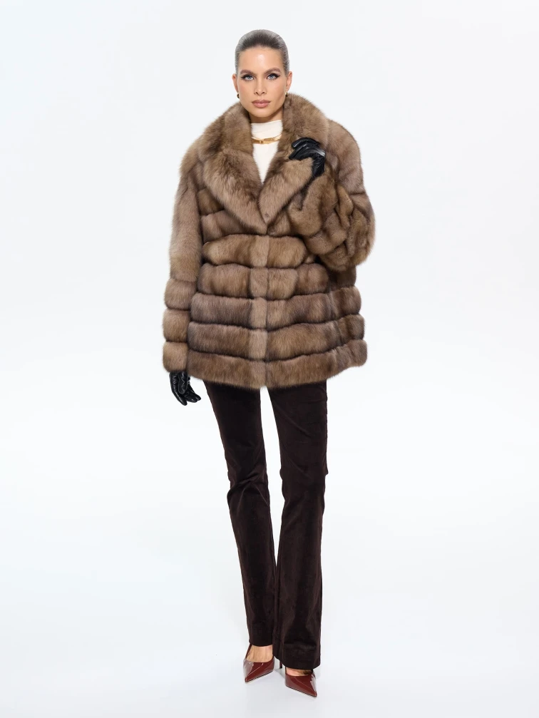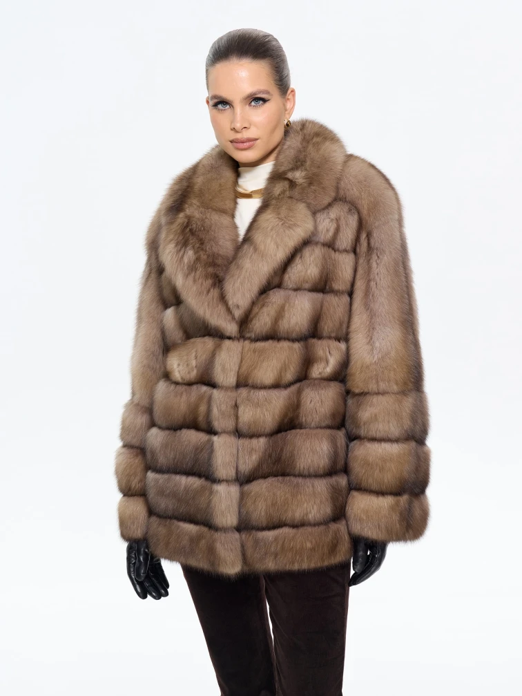 Женская шуба из меха соболя с английским воротником — это эталон роскоши и безупречного вкуса. Модель прямого силуэта длиной 70 см из натурального соболя цвета натуральный подчеркивает элегантность и статус. Выразительный английский воротник и спущенная линия плеча добавляют образу благородной легкости. Стилисты рекомендуют носить эту шубу с вечерними платьями, классическими костюмами или утонченными knit-комплектами, чтобы создать целостный образ для особых случаев. Естественная игра оттенков меха делает каждую модель уникальной.