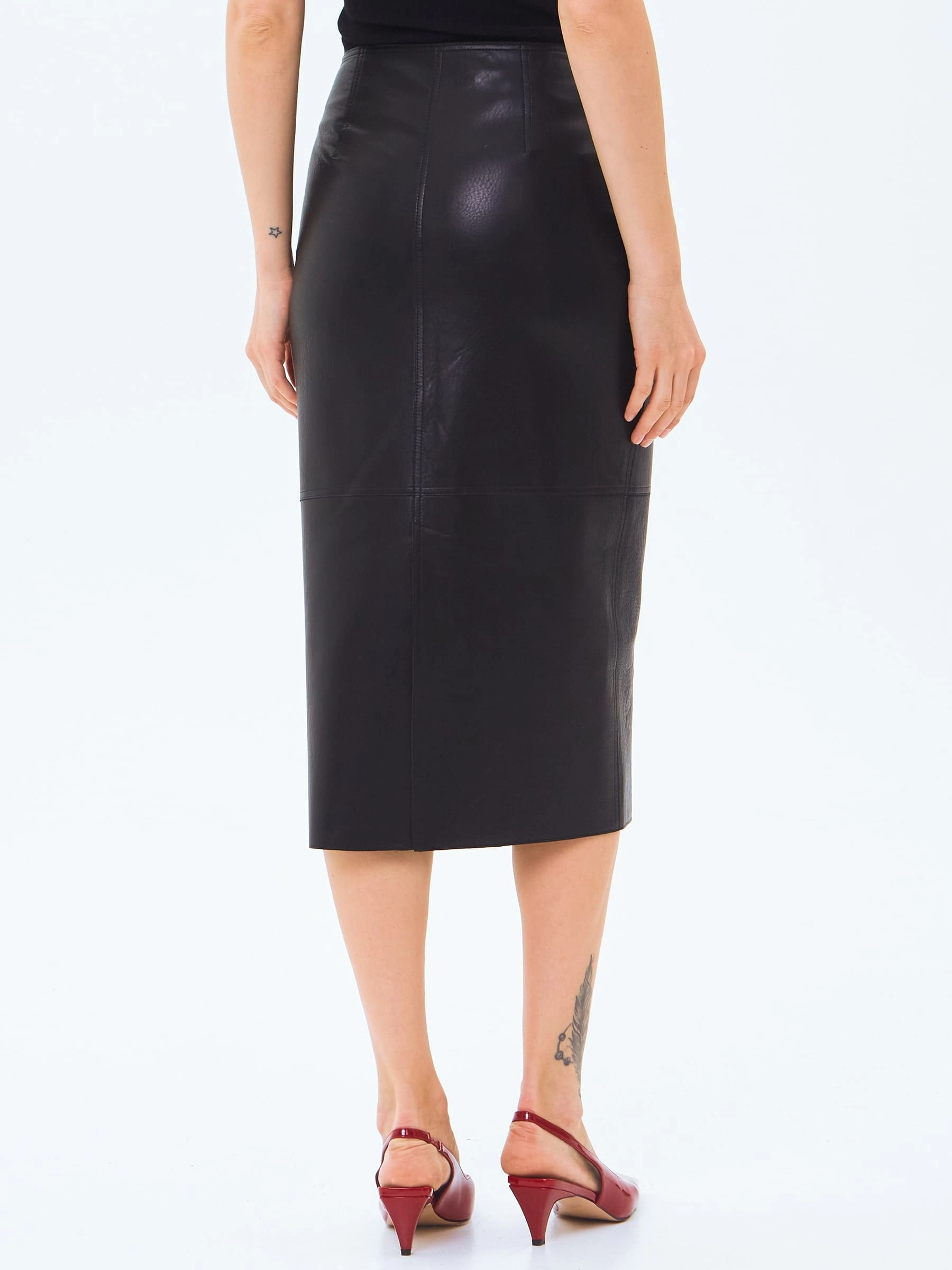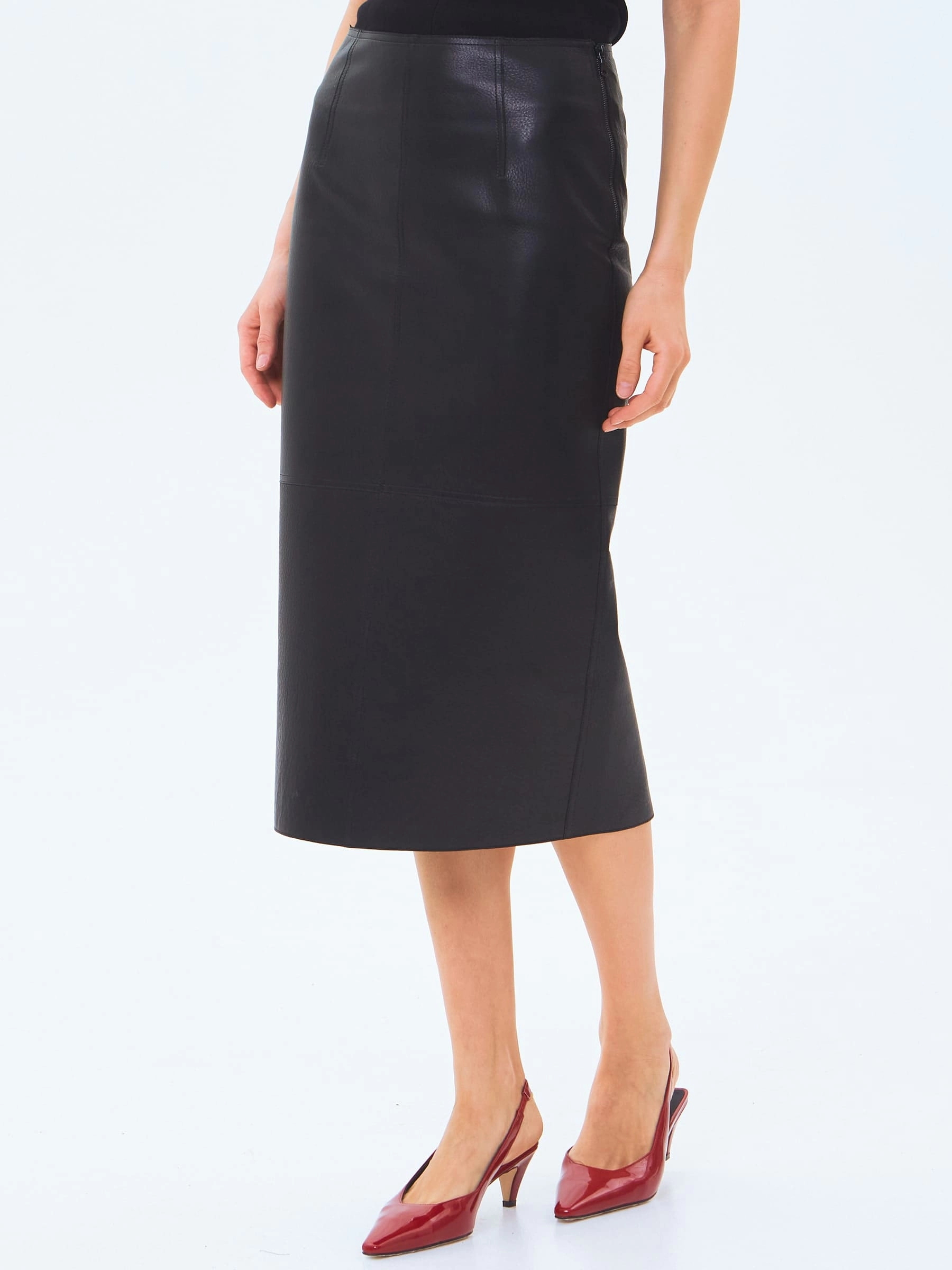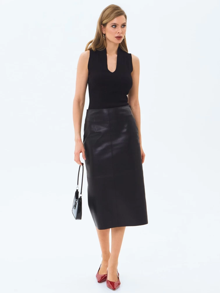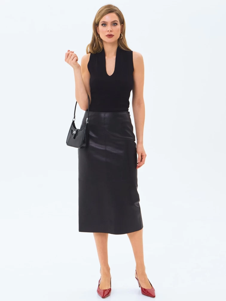 Кожаная юбка-карандаш 18, черная, размер 44, артикул 86000