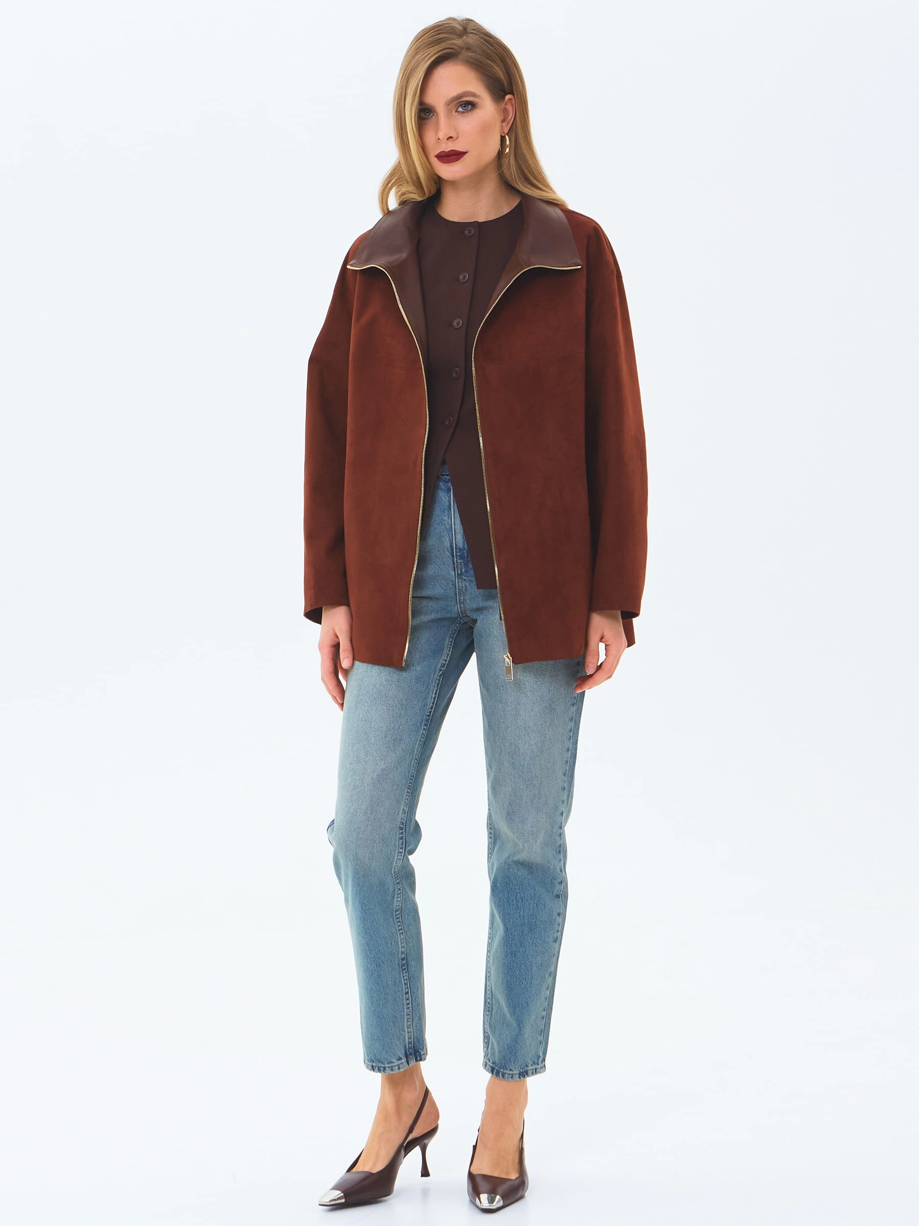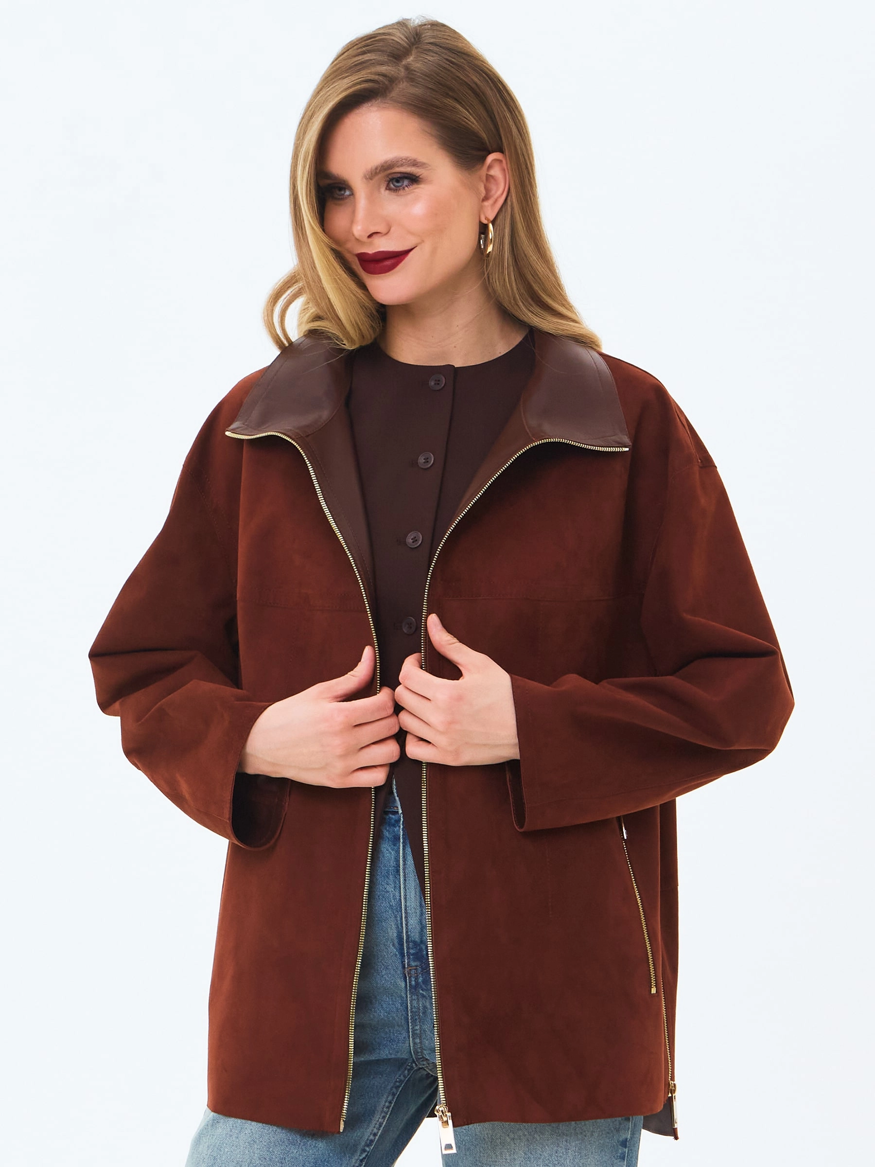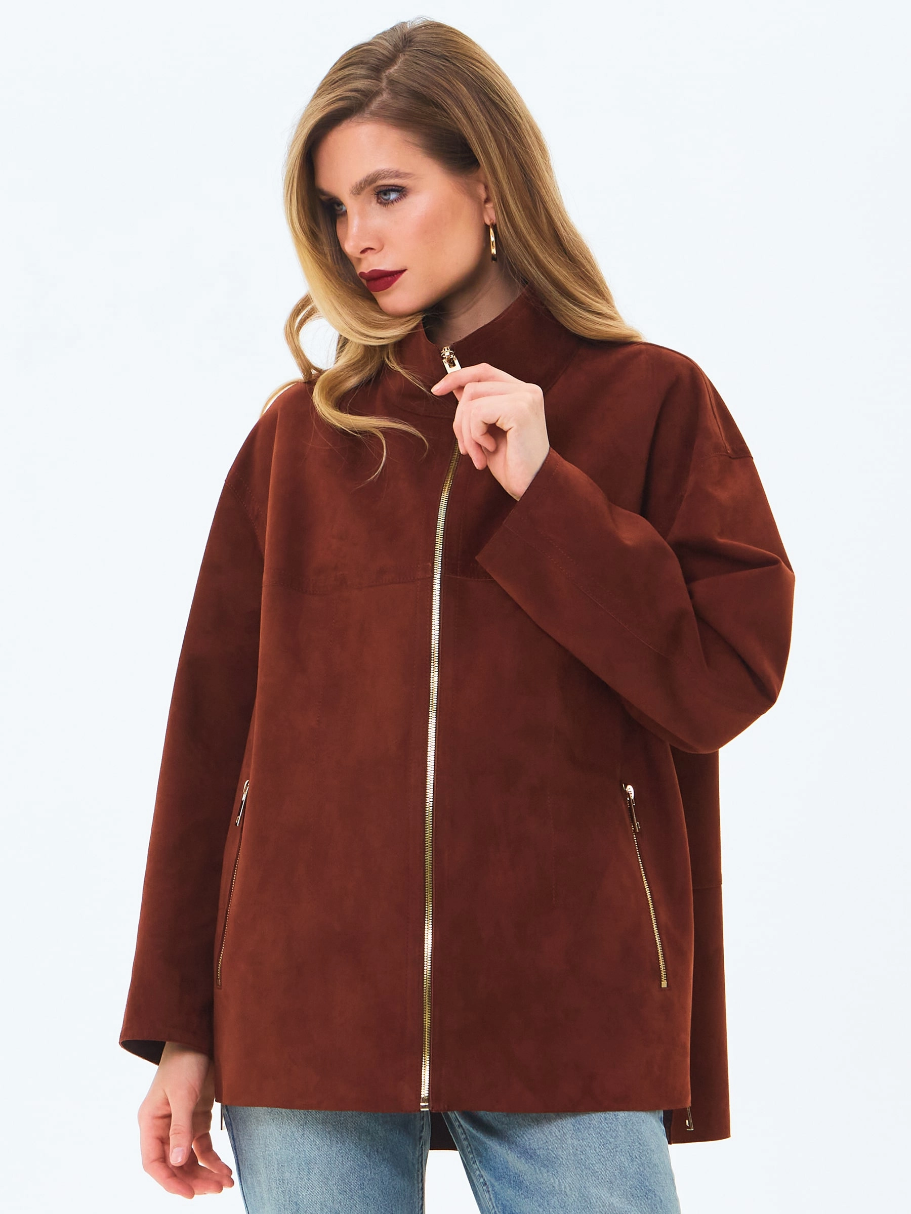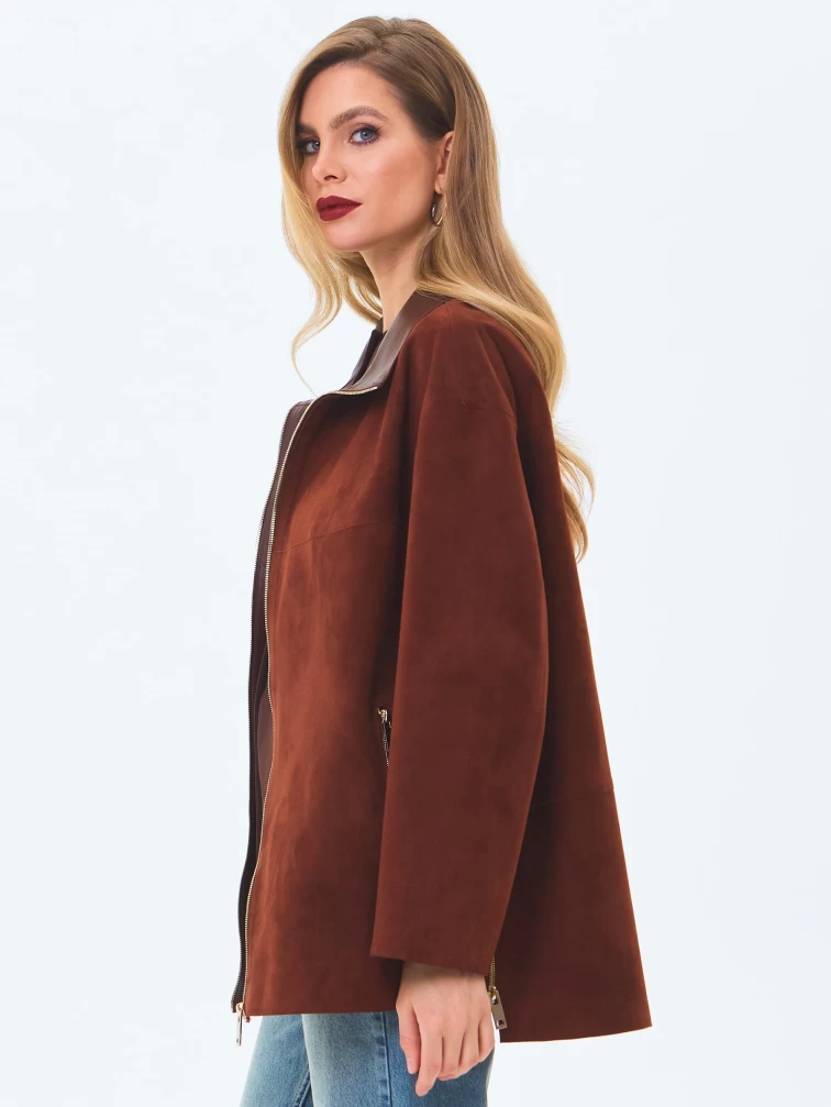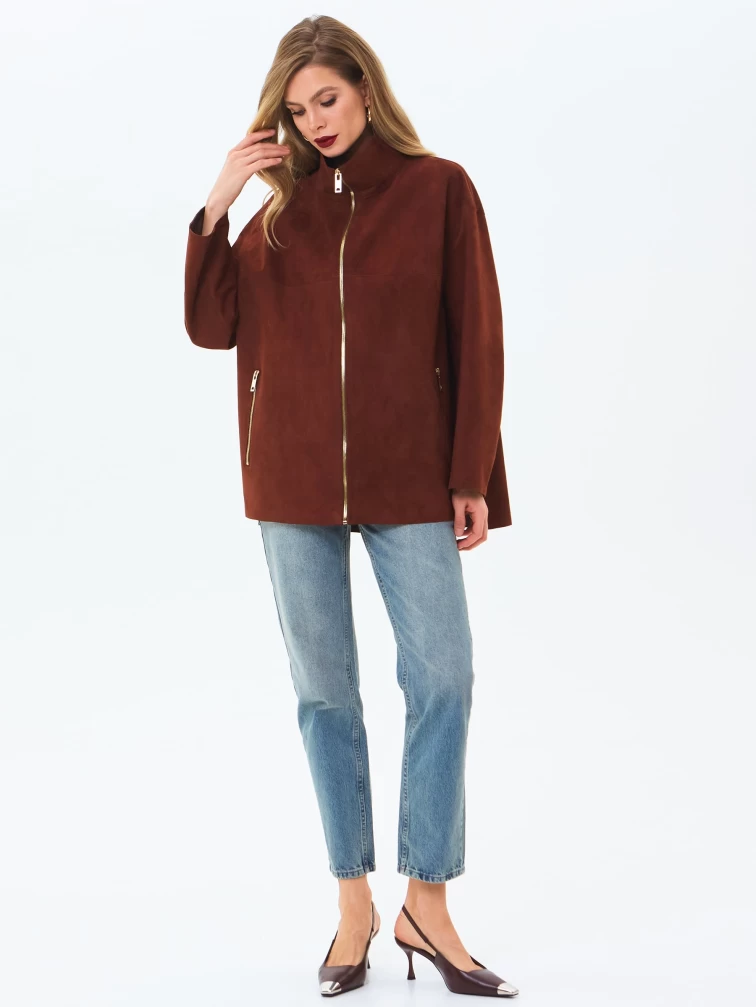 Товар женская замшевая куртка премиум класса 3090з, табачная, размер 46, артикул 24380 выполнен из натуральной замши с застежкой молния. Рассчитан на сезон: весна-лето. Длина изделия 74 см, силуэт свободный.