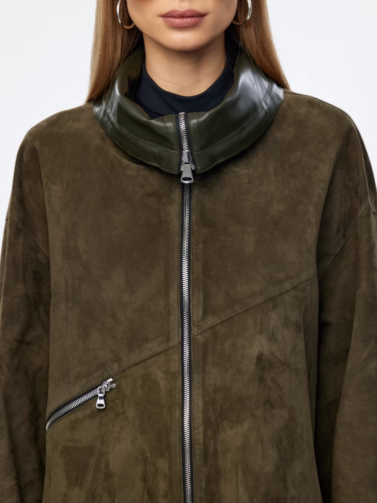 Товар женский длинный замшевый плащ оверсайз премиум класса 3061з, хаки, размер 50, артикул 23600 выполнен из натуральной замши с застежкой молния. Рассчитан на сезон: весна-лето. Длина изделия 115 см, силуэт оверсайз.