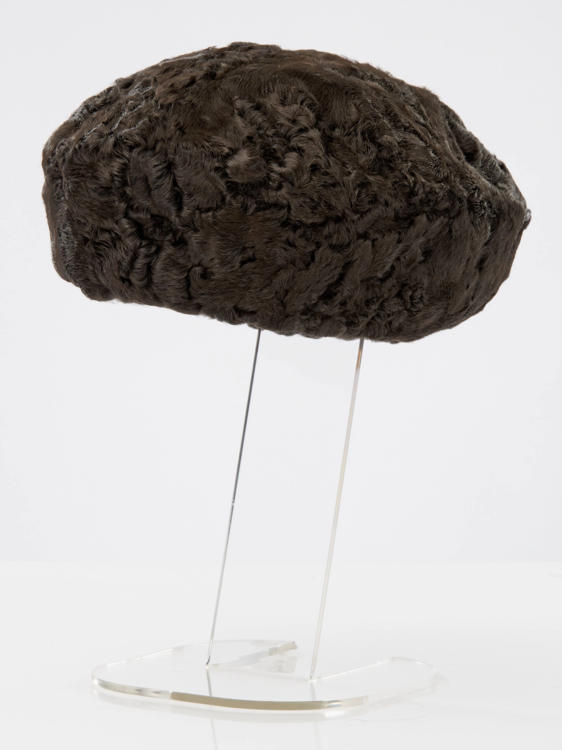 Женский головной убор из меха каракуля Берет, темно-коричневый, артикул 51060