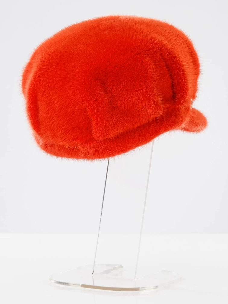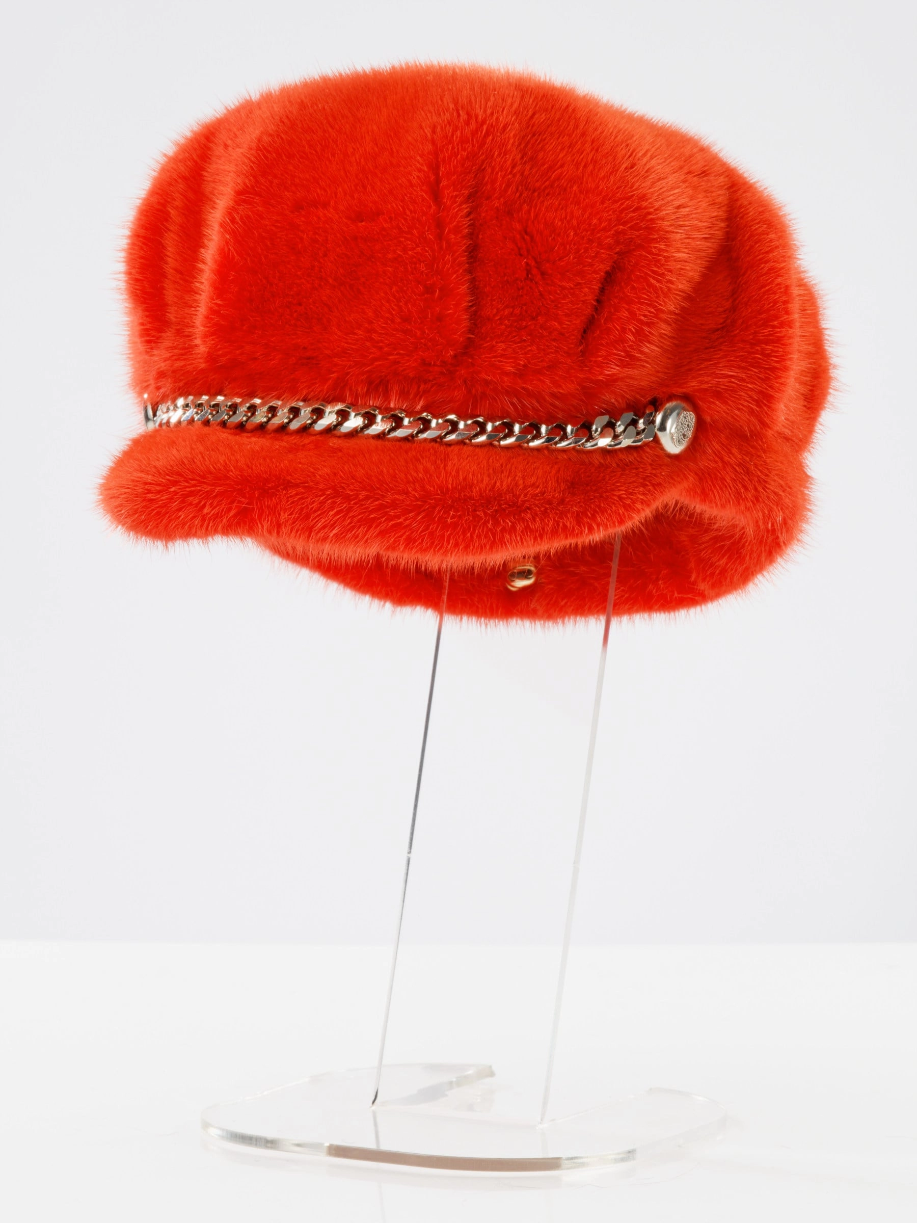 Алый кепи с украшением в виде декоративной цепочки дополненный небольшим козырьком - автоматически сделает Ваш образ более дерзким, но при этом комфортным. Для создания аксессуара дизайнер выбрал стриженую норку. Почти невесомый, приятный на ощупь материал поддерживает оптимальную температуру даже в морозные дни.