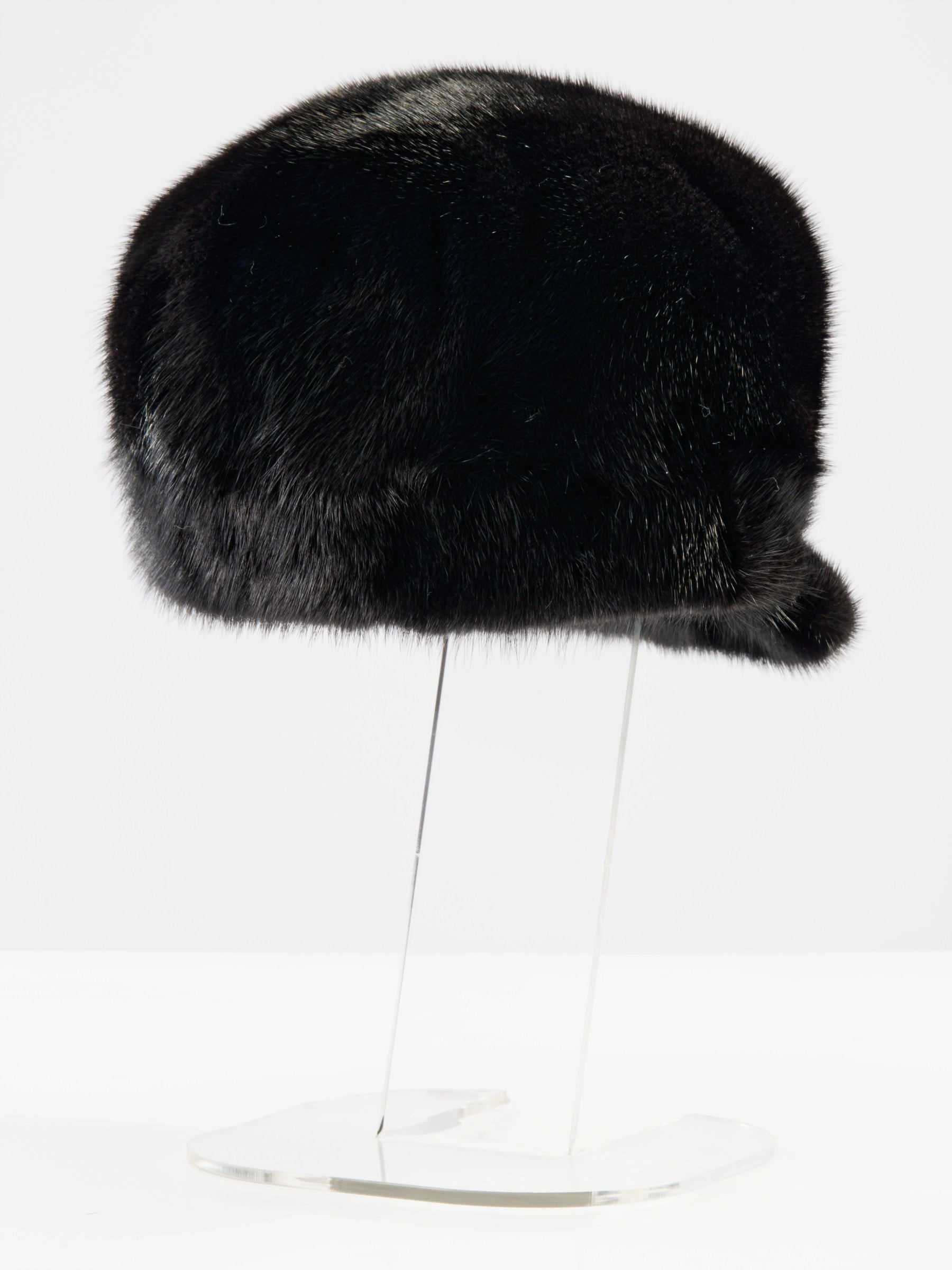 Для создания кепи с широким козырьком мастера использовали стриженый мех норки, окрашенный в черный цвет. Изделие из такого меха не только красиво и приятно на ощупь, но и практично: оно хорошо сохраняет тепло. Его можно носить как в классическом, повседневном и даже спортивном стиле.