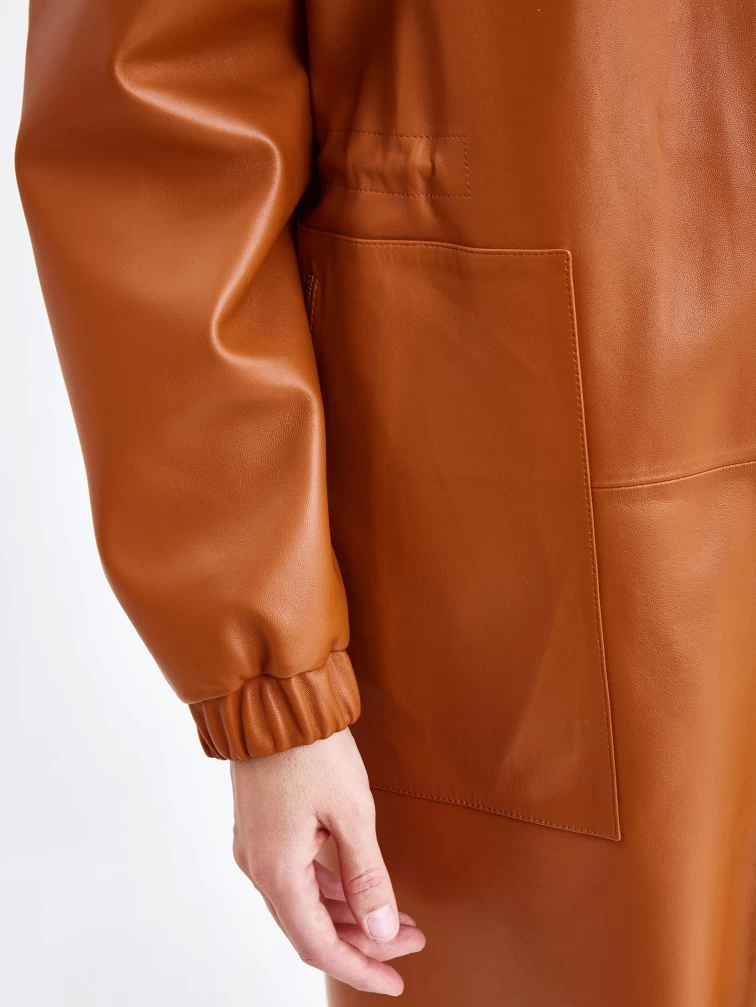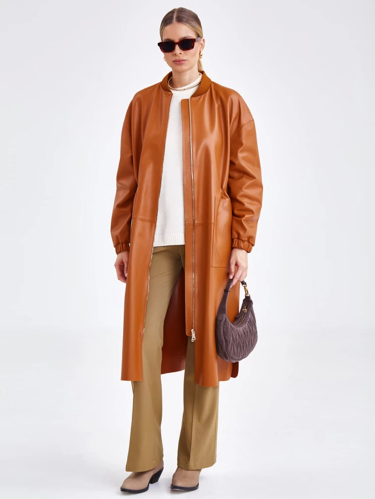 Женский кожаный плащ бомбер премиум класса 3035, виски, размер 44, артикул 91931