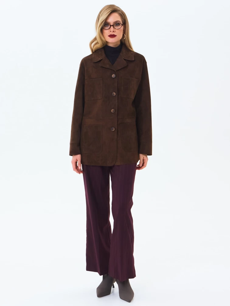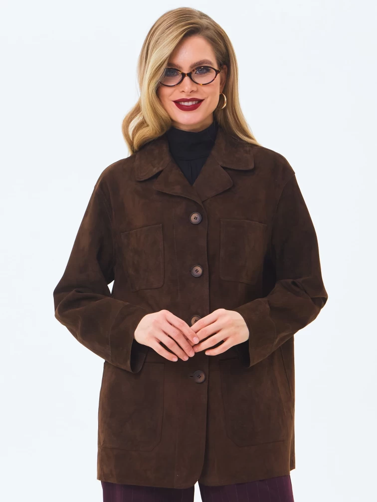 Женский замшевый пиджак премиум класса 3092з, коричневый, размер 44, артикул 24640
