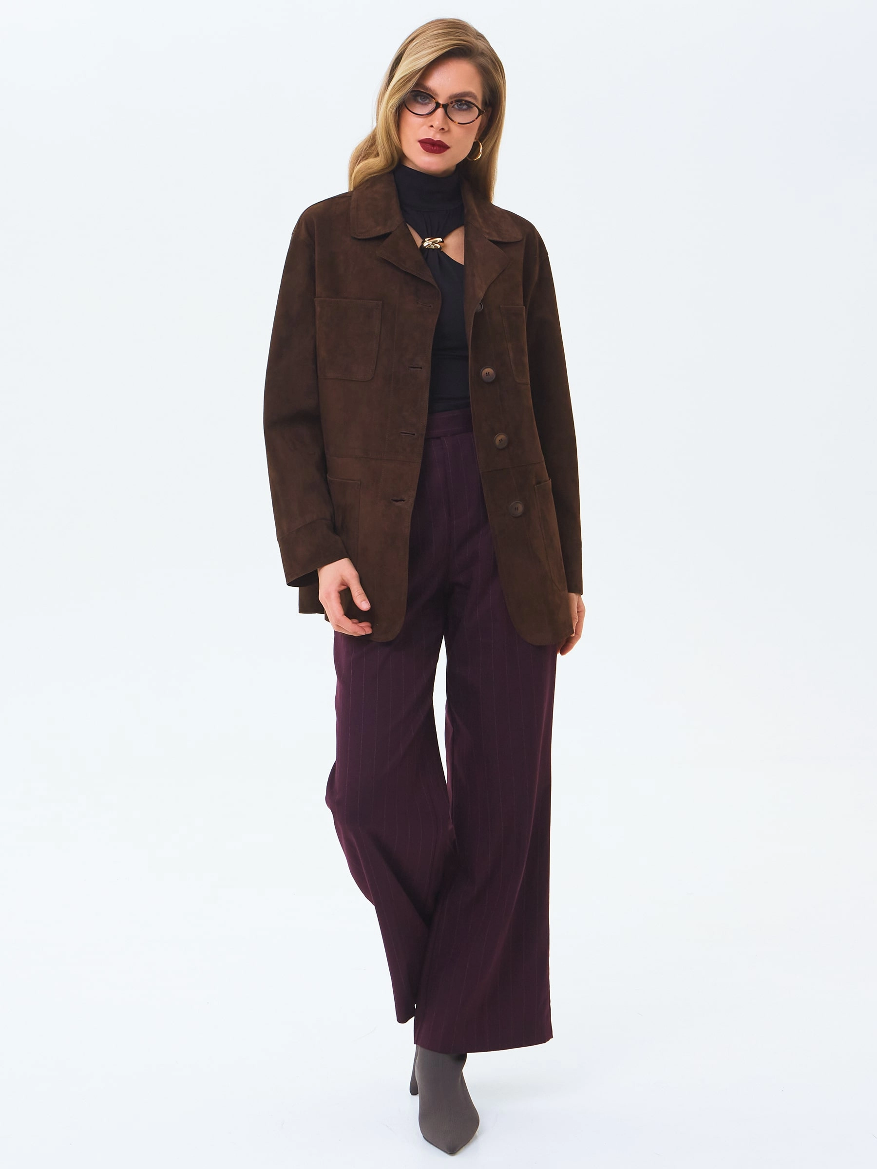 Товар женский замшевый пиджак премиум класса 3092з, коричневый, размер 44, артикул 24640 выполнен из натуральной кожи с застежкой пуговицы. Рассчитан на сезон: весна-лето. Длина изделия 74 см, силуэт прямой.