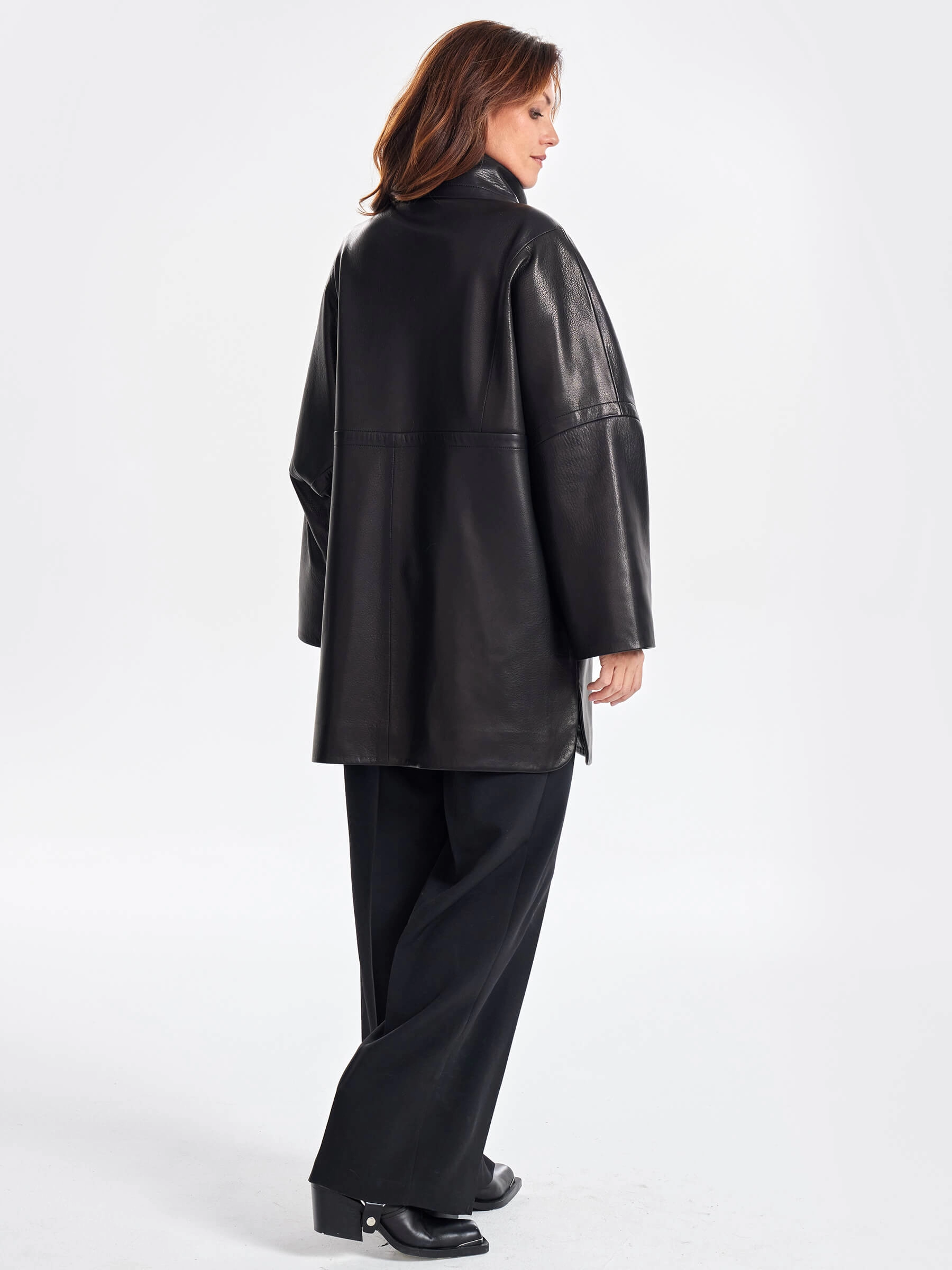 Женское кожаное полупальто оверсайз премиум класса 3057, черное, размер 52, артикул 64020