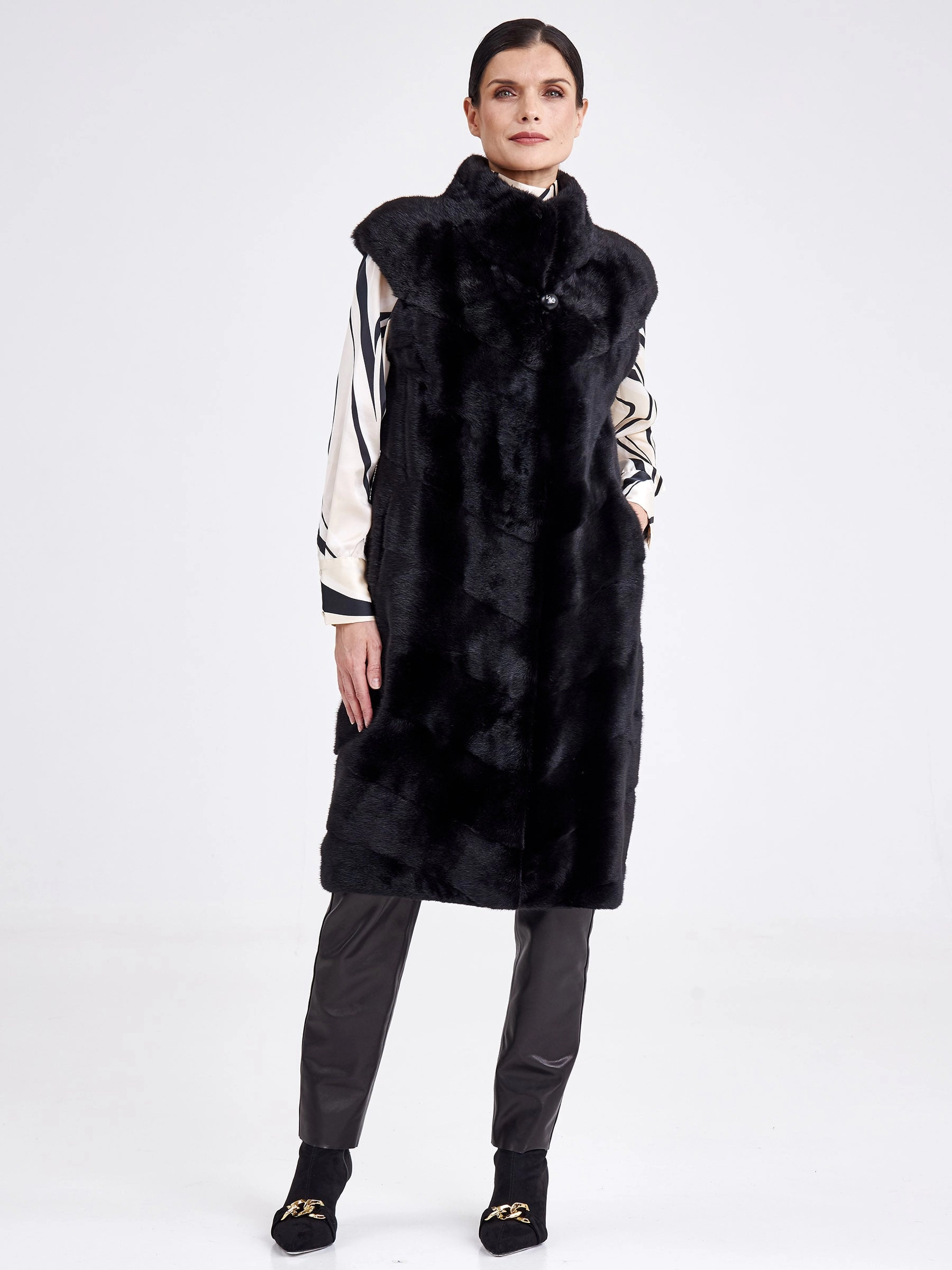 Длинный женский жилет из меха норки 2850(с), черный, размер 44, артикул 33210