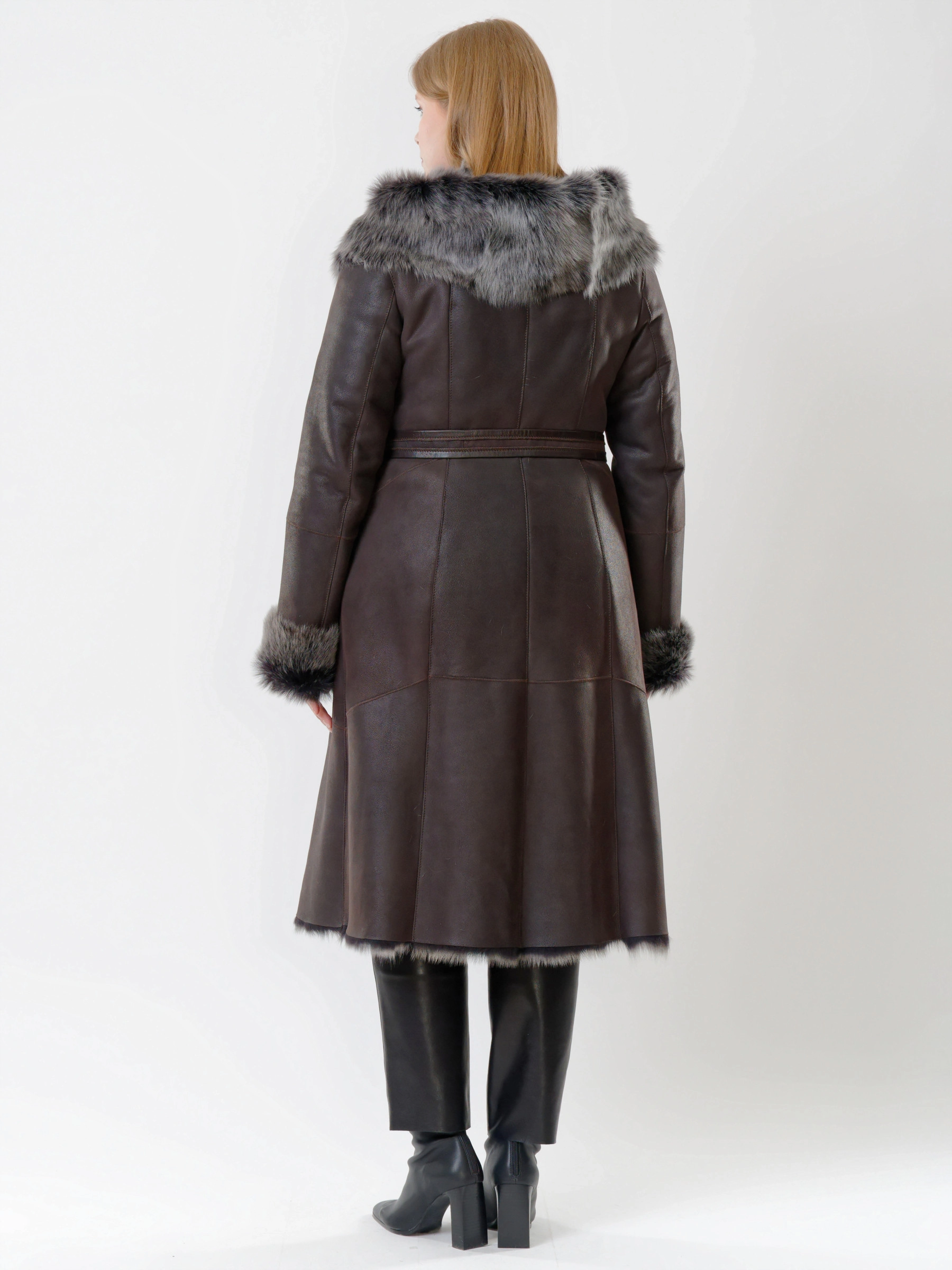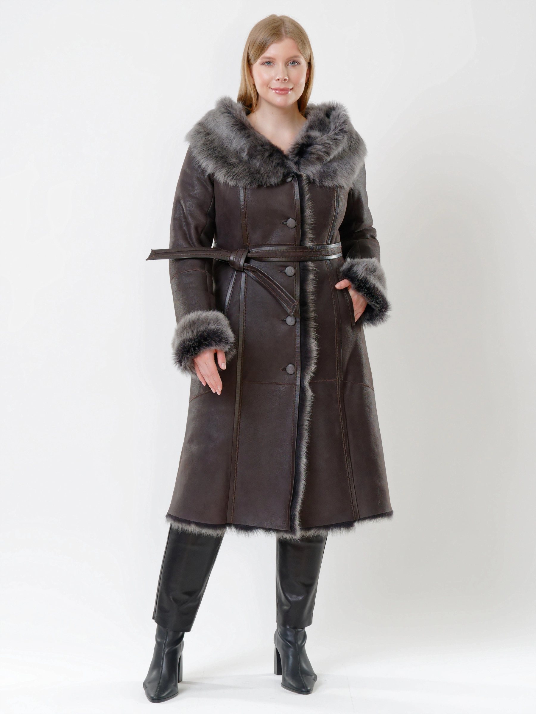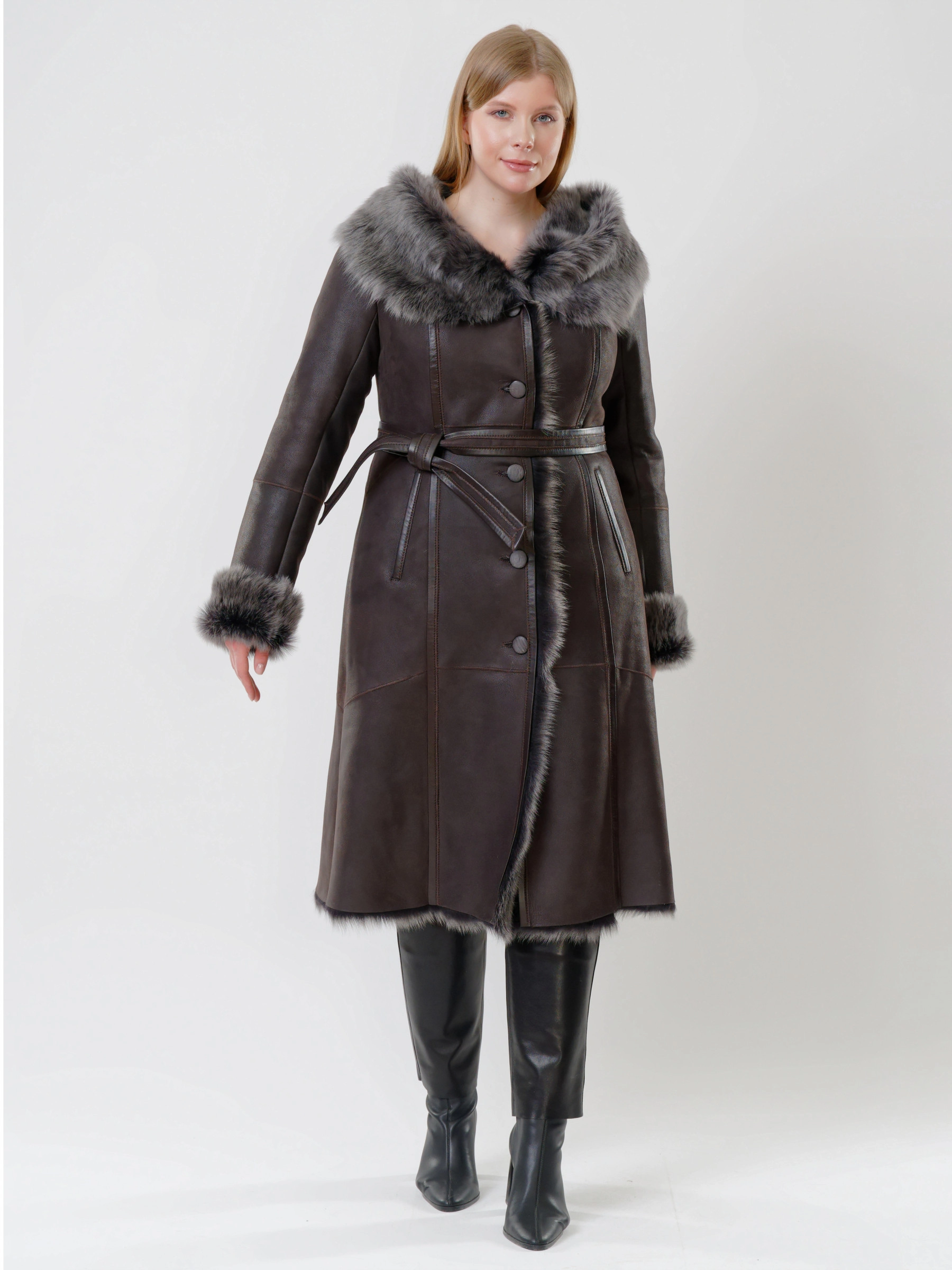 Зимний комплект женский: Дубленка 132 + Брюки 02, коричневый/черный, р. 44, арт. 111218