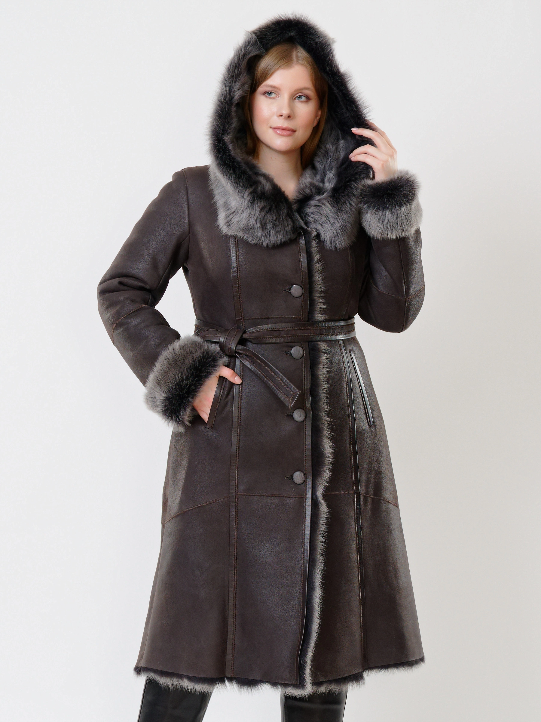 Товар зимний комплект женский: дубленка 132 + брюки 02, коричневый/черный, р. 44, арт. 111218.