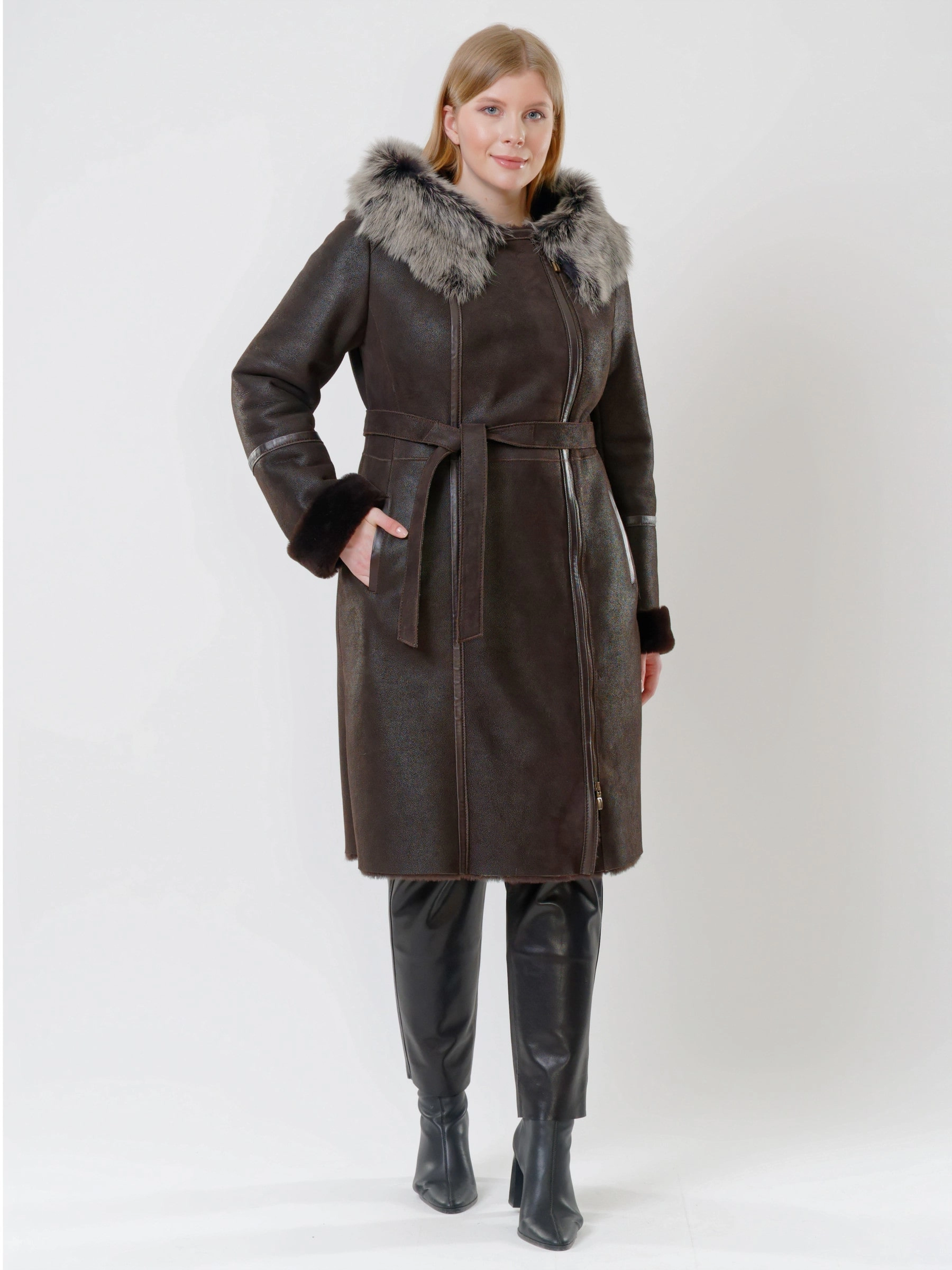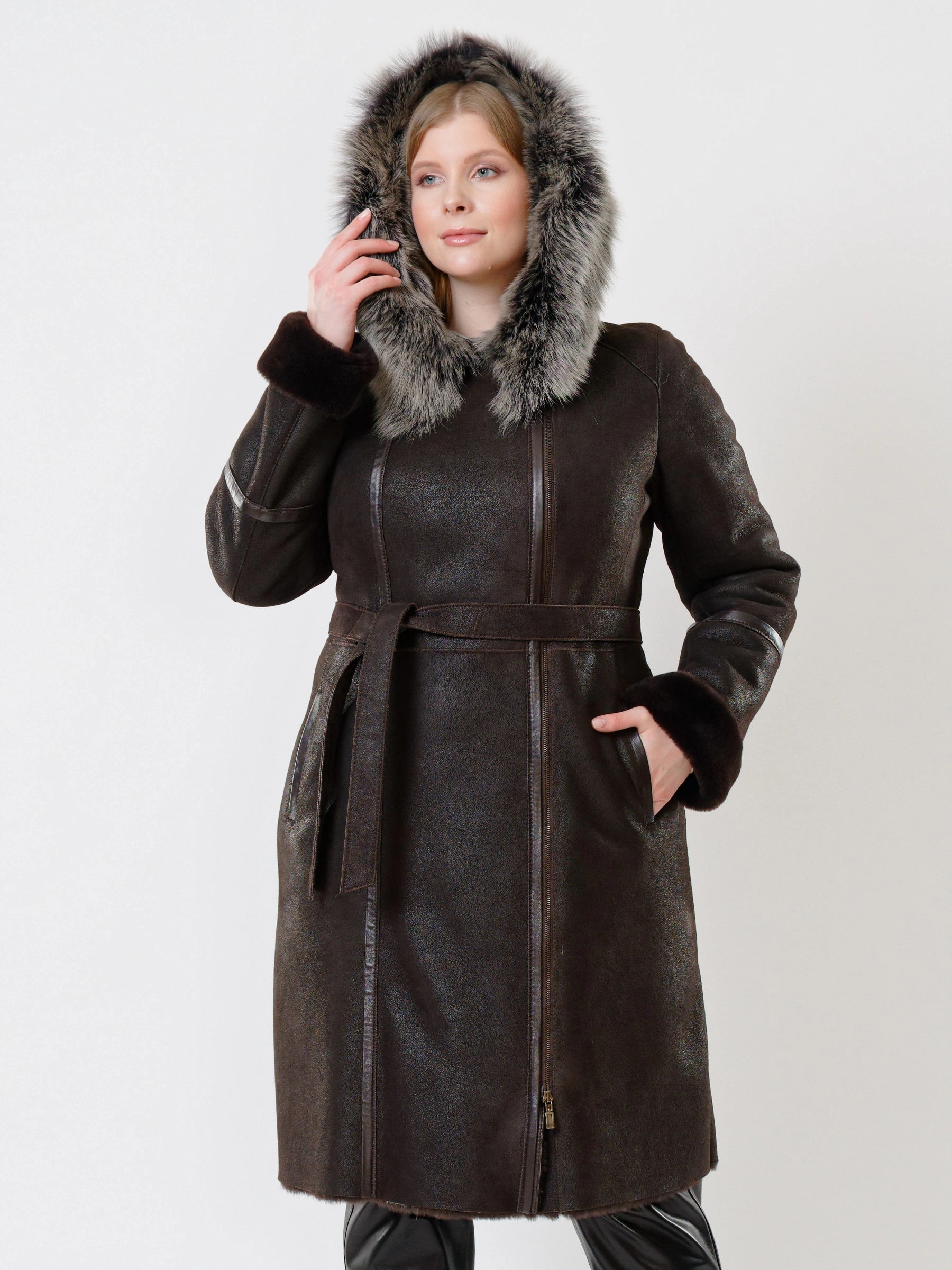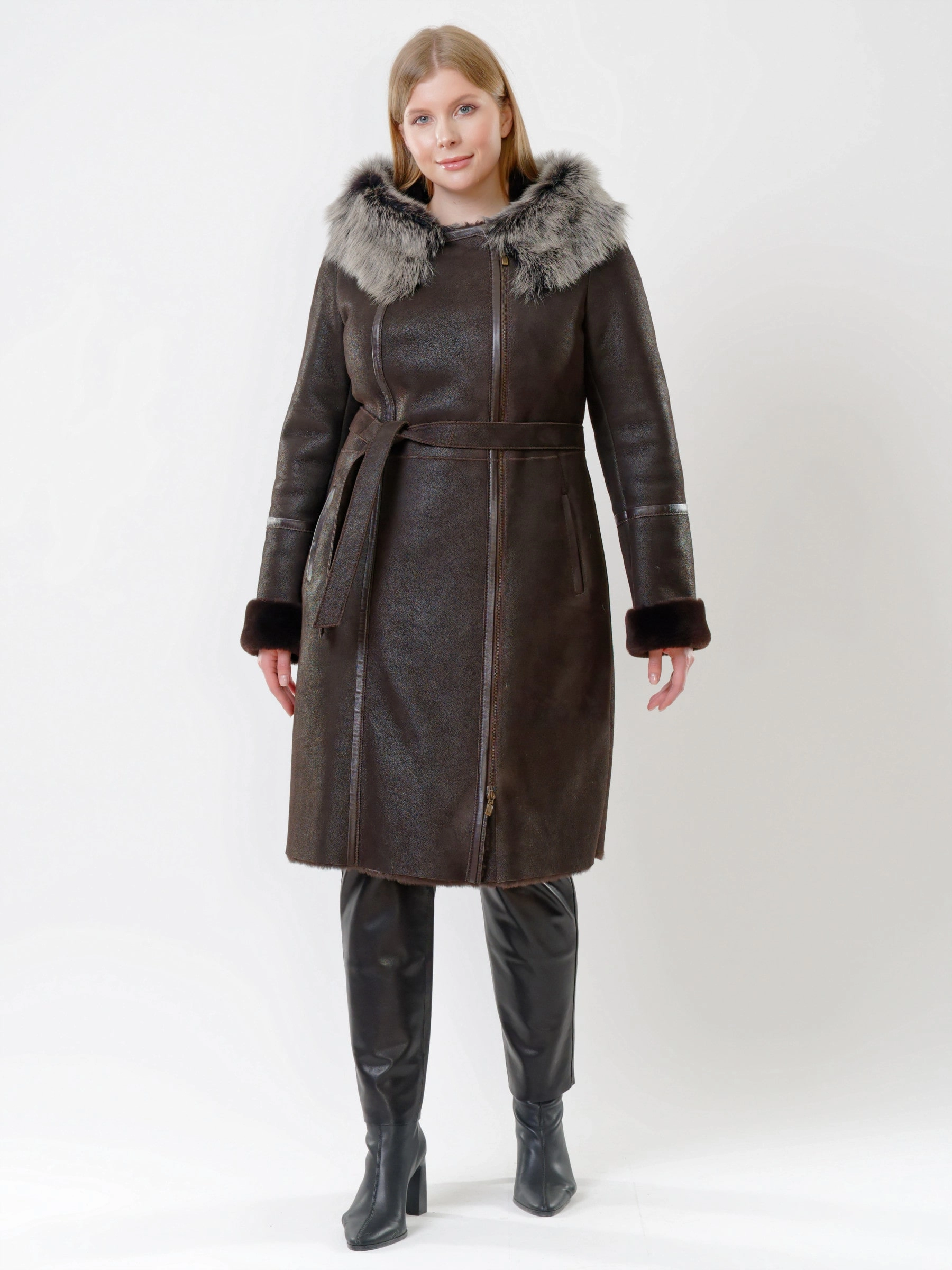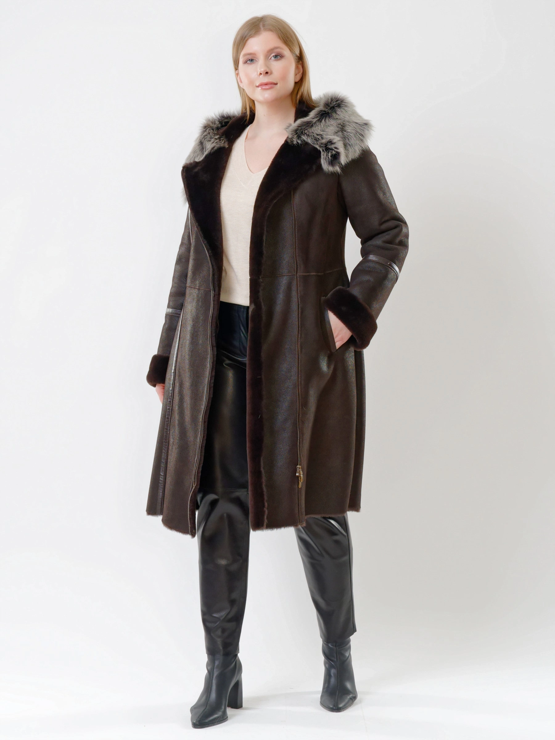Товар зимний комплект женский: дубленка 265 + брюки 03, коричневый/черный, р. 42, арт. 111196.