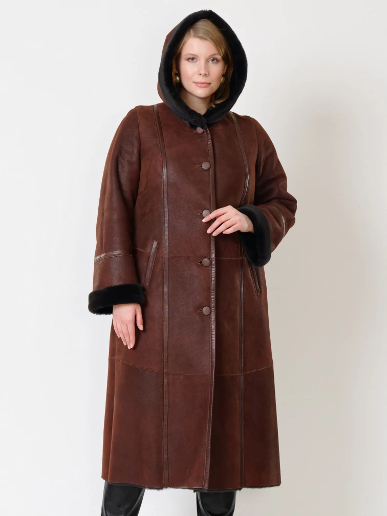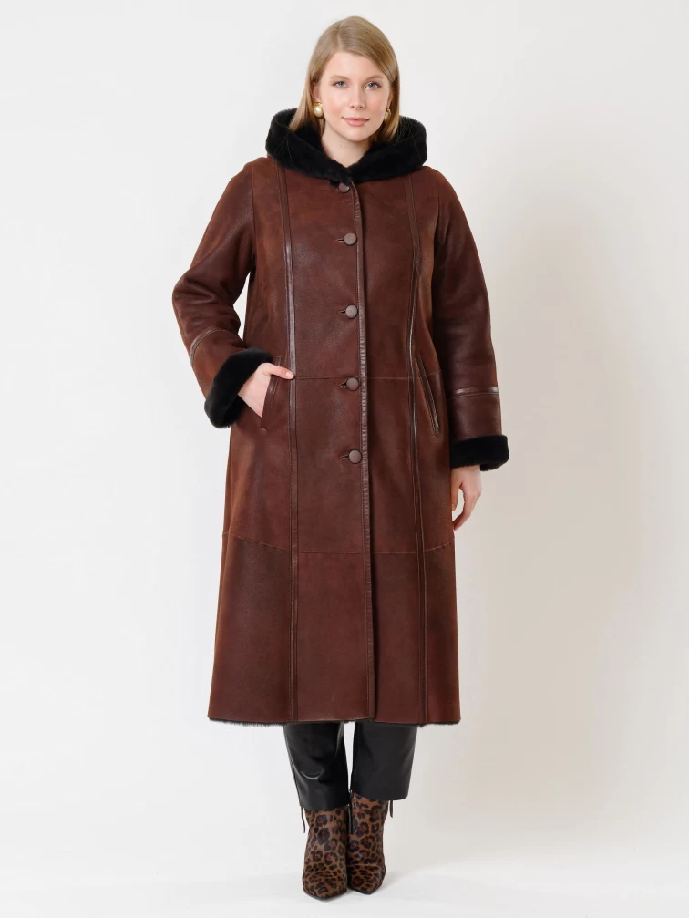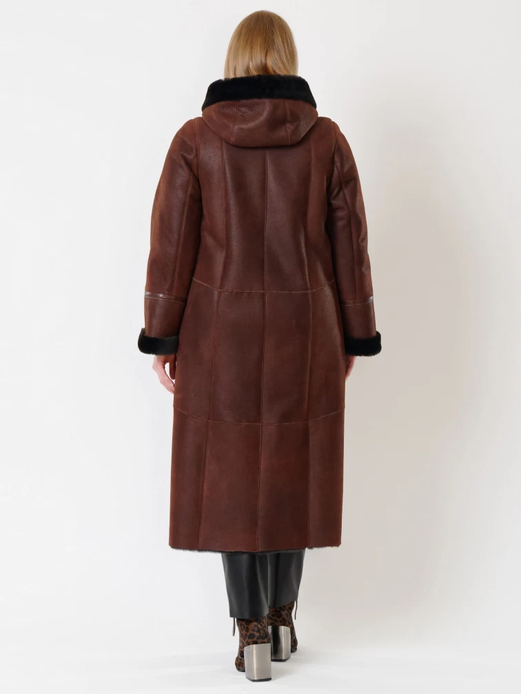 Классическая дублёнка oversize с капюшоном и кожаные брюки. Нежнейшая овчина мерино. Премиальное качество меха и кожи. Комфортная посадка по фигуре.