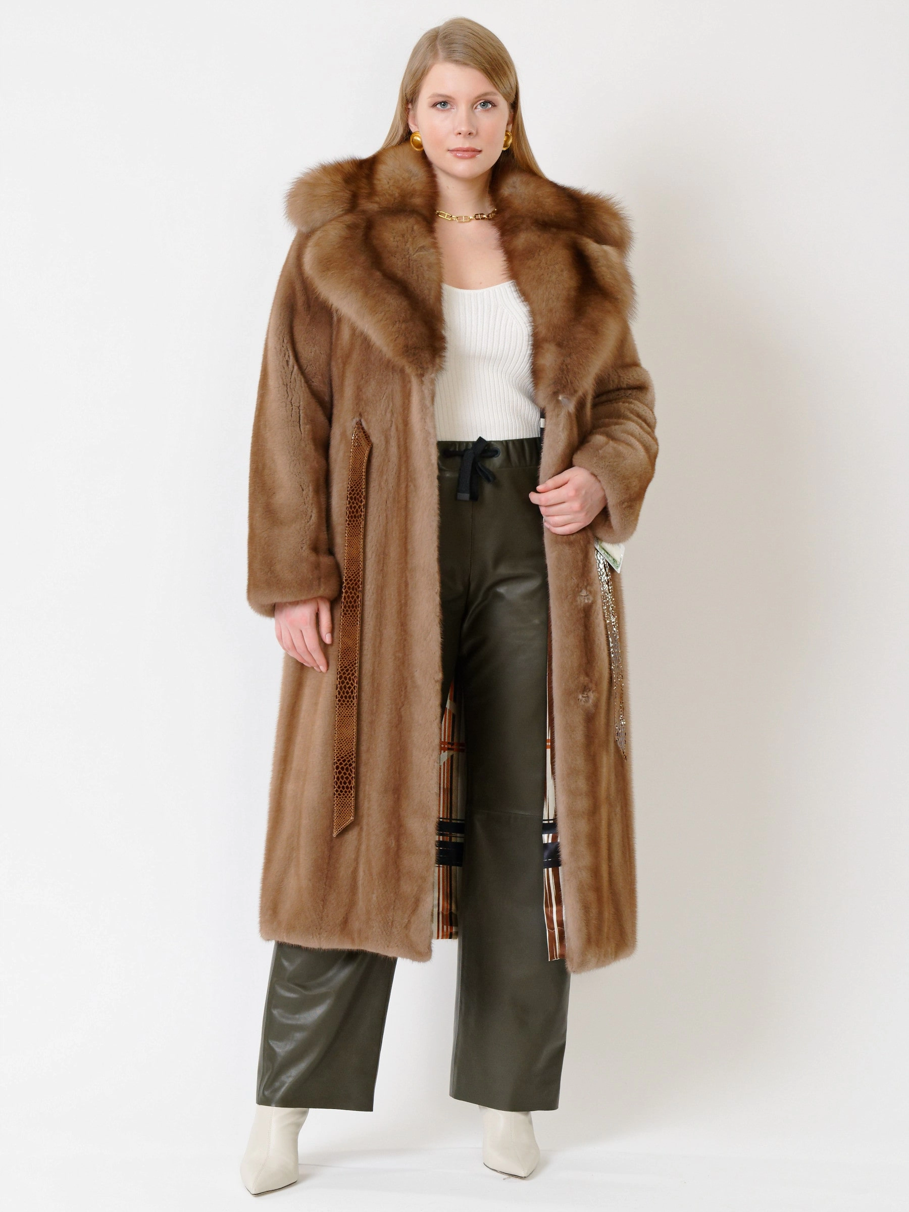Товар зимний комплект женский: пальто из меха норки 19009ав + брюки 06, пастельный/оливковый, р. 52, арт. 111194.