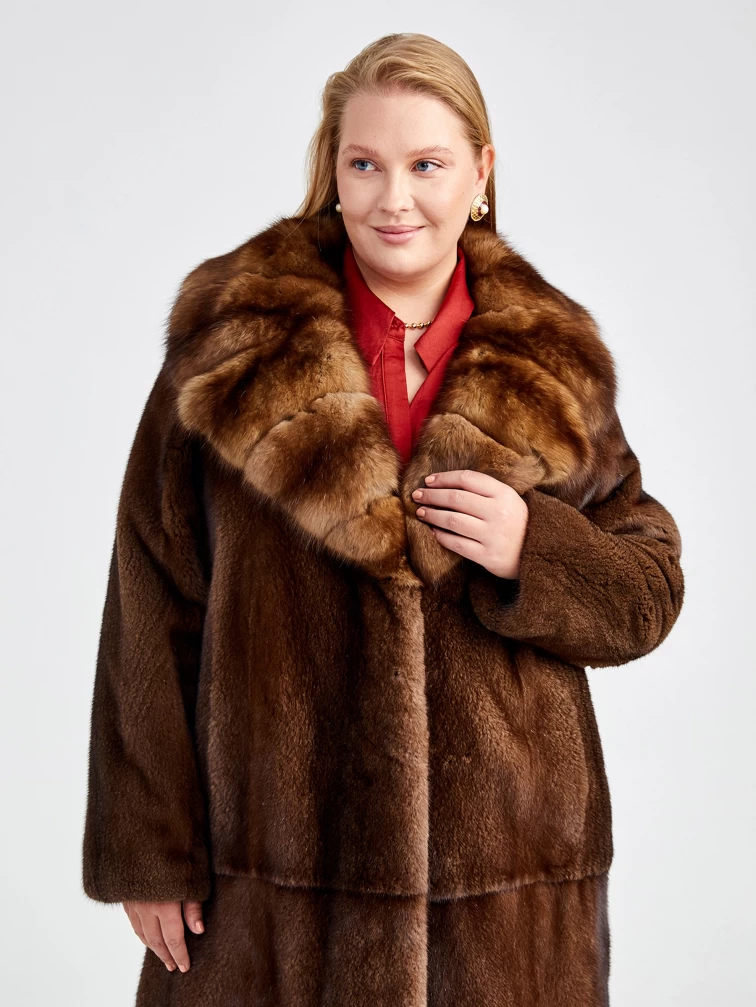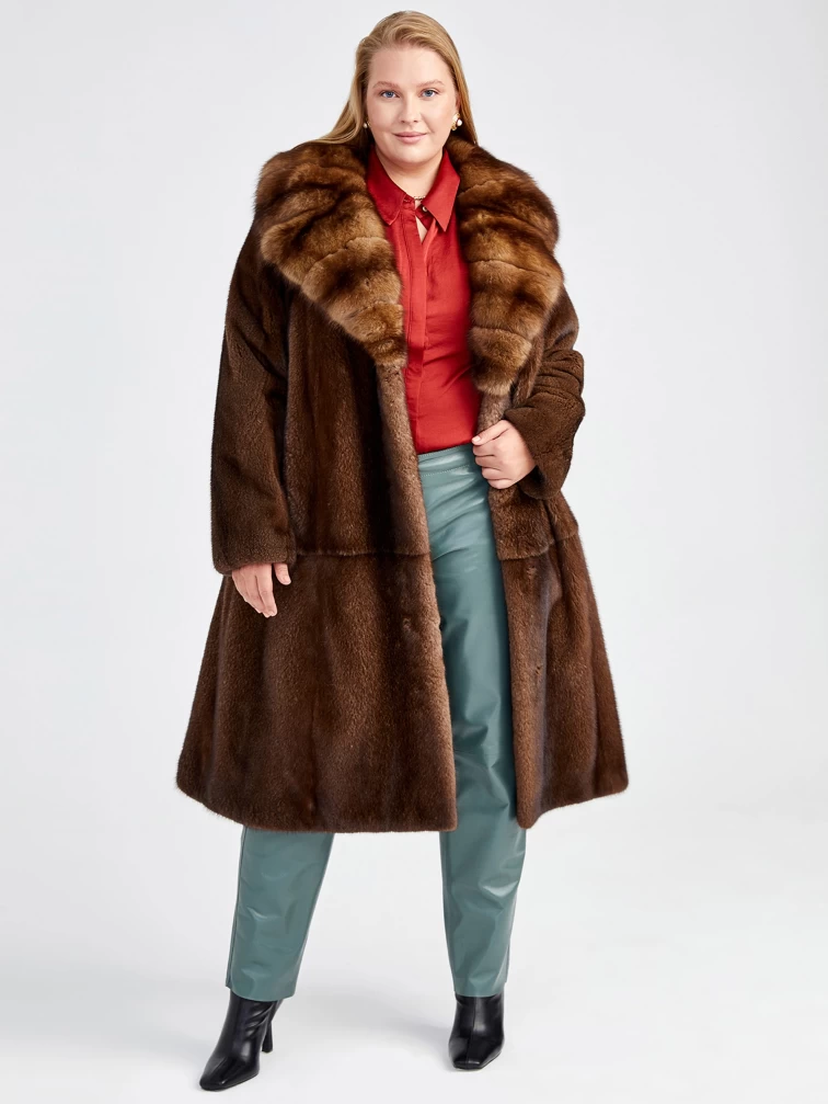 Зимний комплект женский: Шуба из меха норки с соболем 4021(авс) + Брюки 03, коричневый/оливковый, р. 44, арт. 111200
