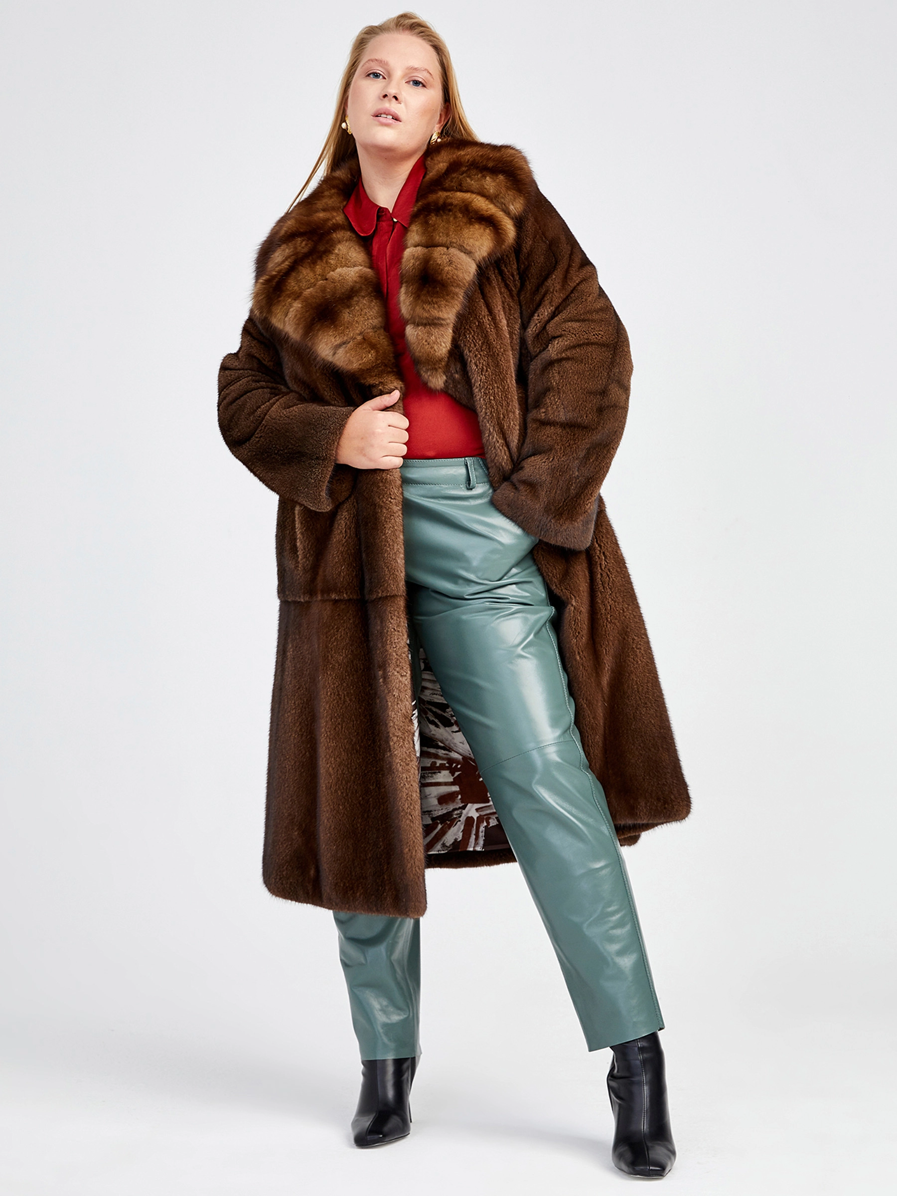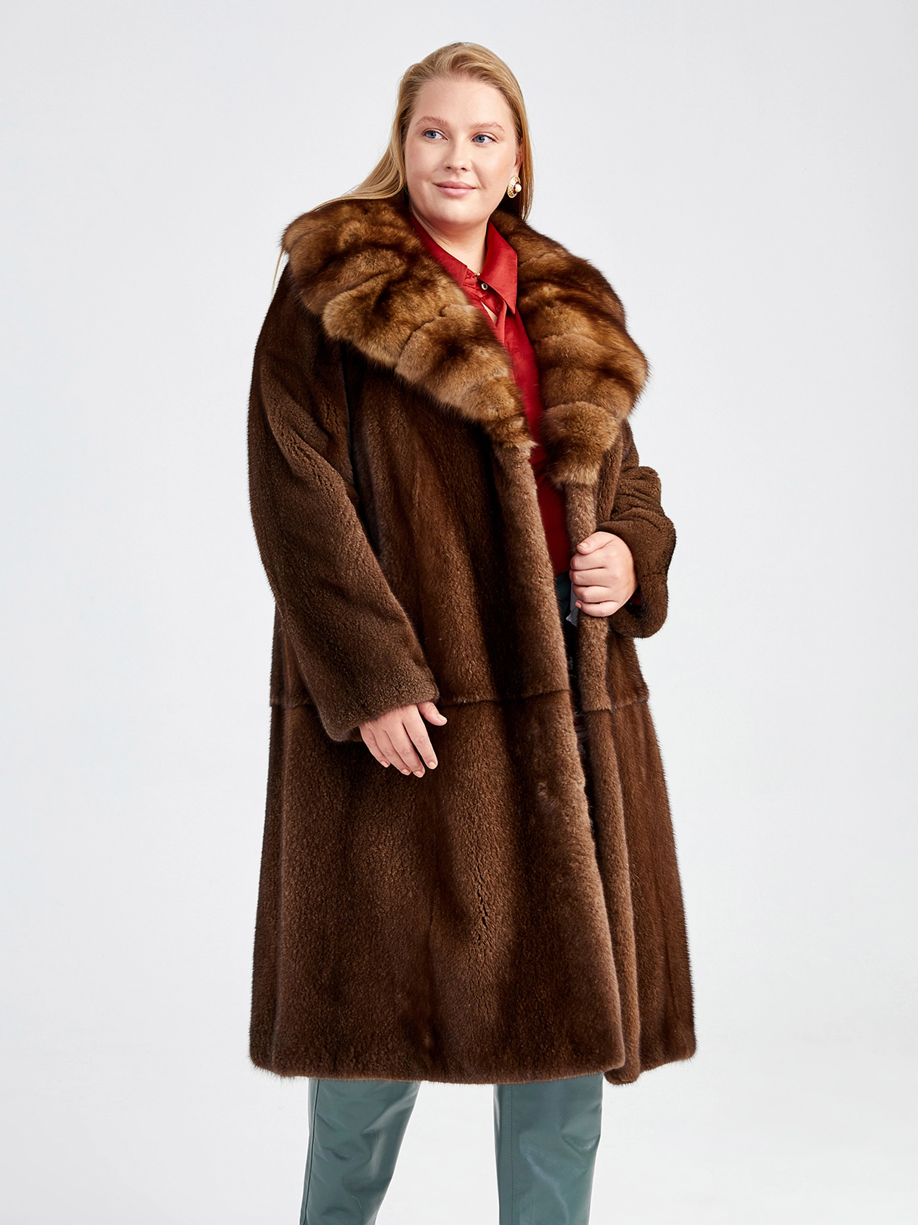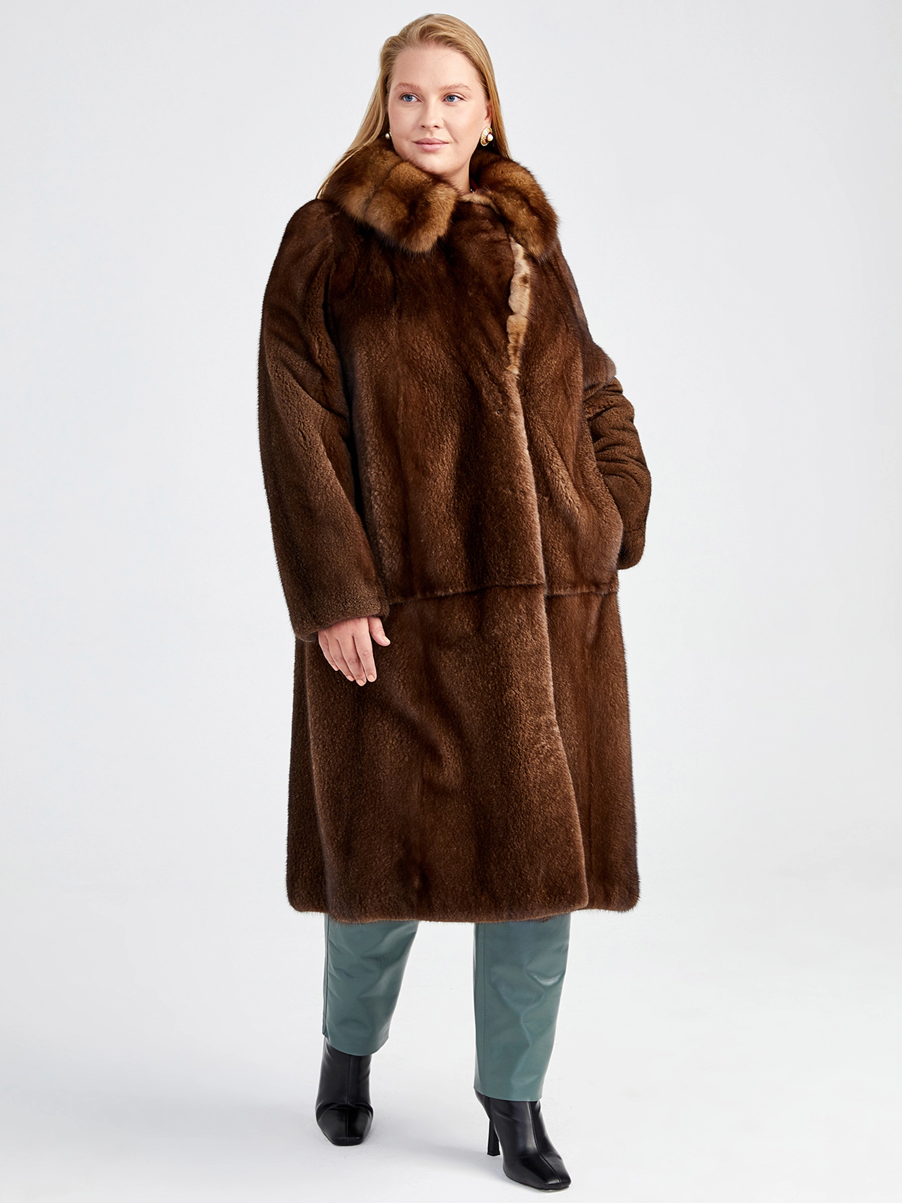 Товар зимний комплект женский: шуба из меха норки с соболем 4021(авс) + брюки 03, коричневый/оливковый, р. 44, арт. 111200.