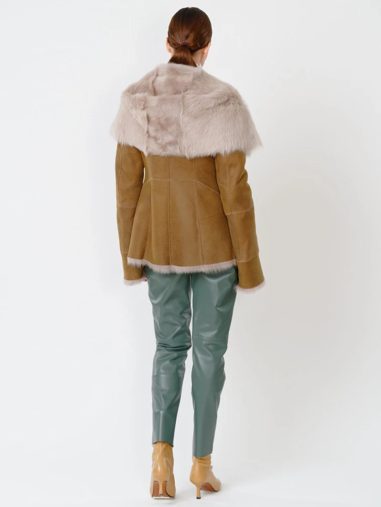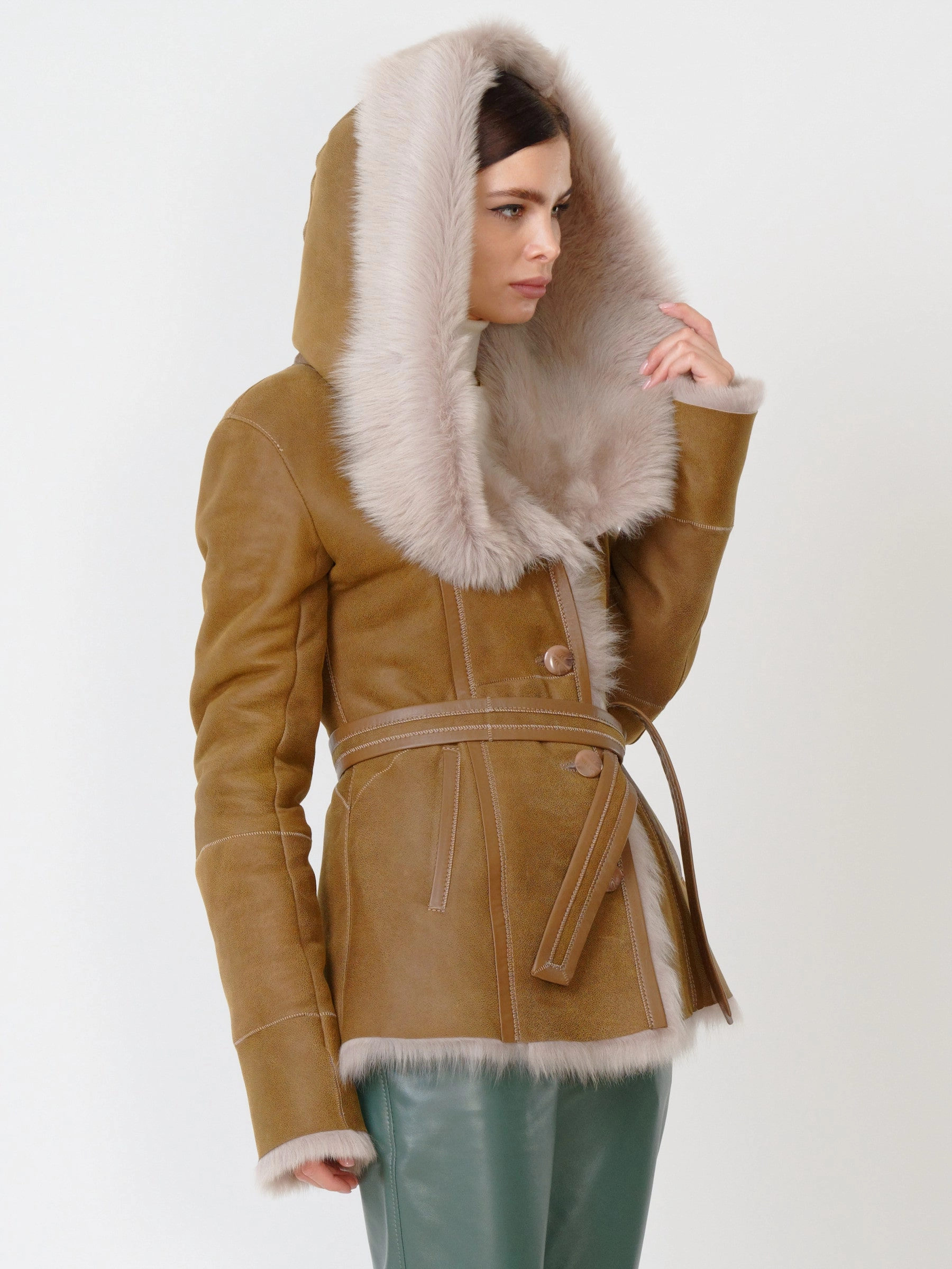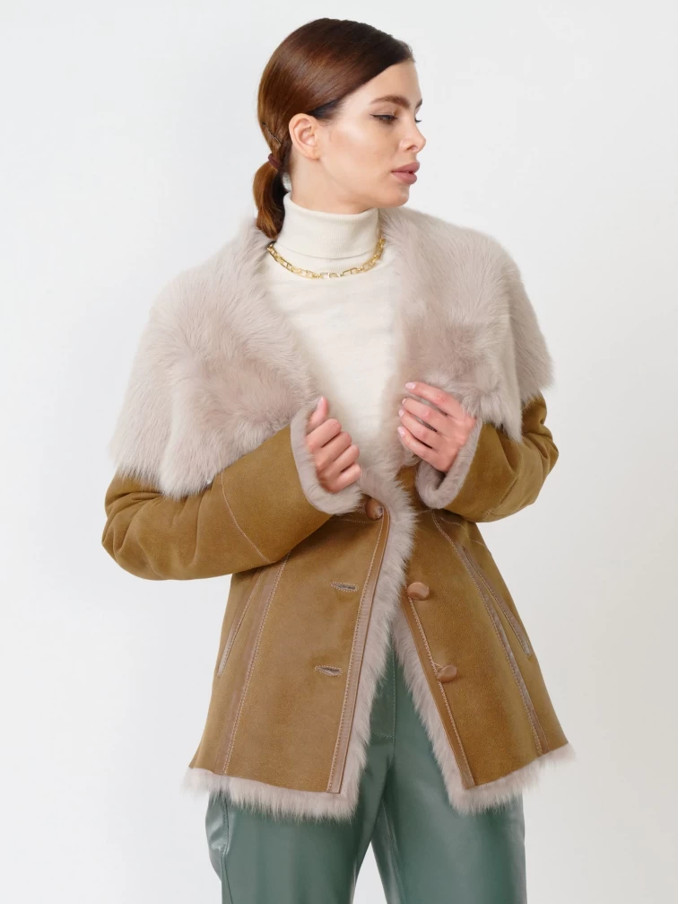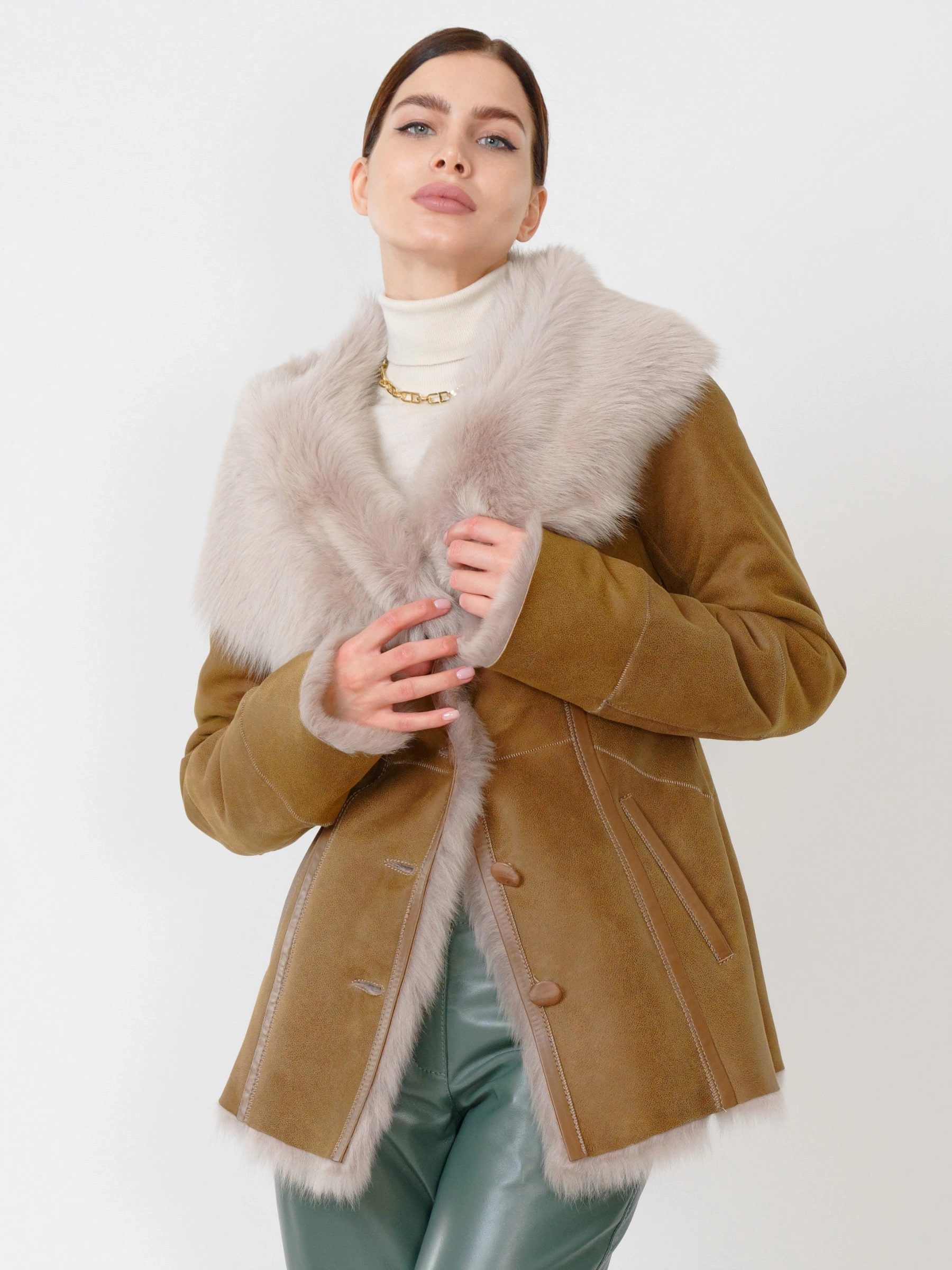Товар зимний комплект женский: дубленка 122 + брюки 03, бежевый/оливковый, р. 42, арт. 111367.