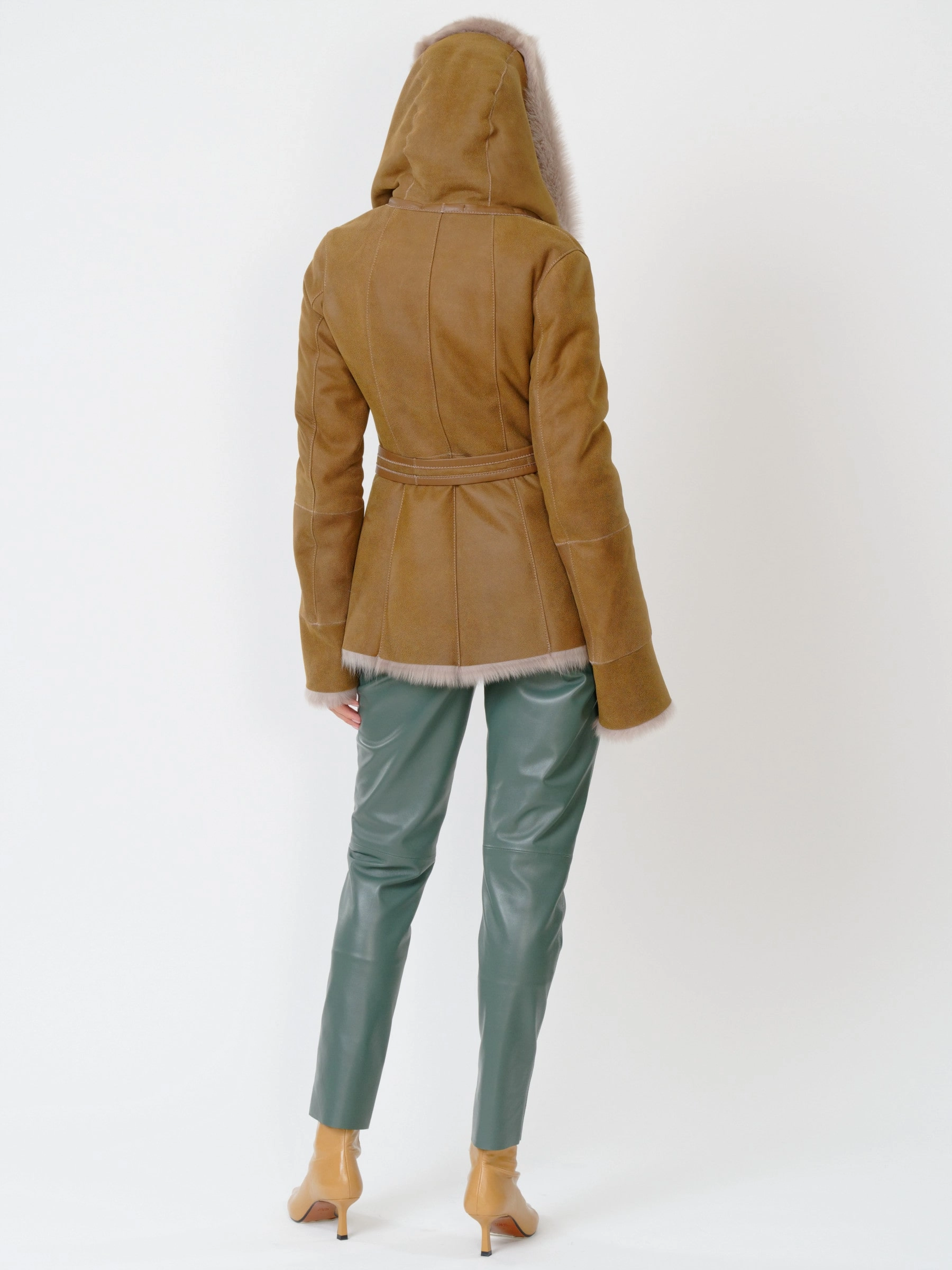 Зимний комплект женский: Дубленка 122 + Брюки 03, бежевый/оливковый, р. 42, арт. 111367