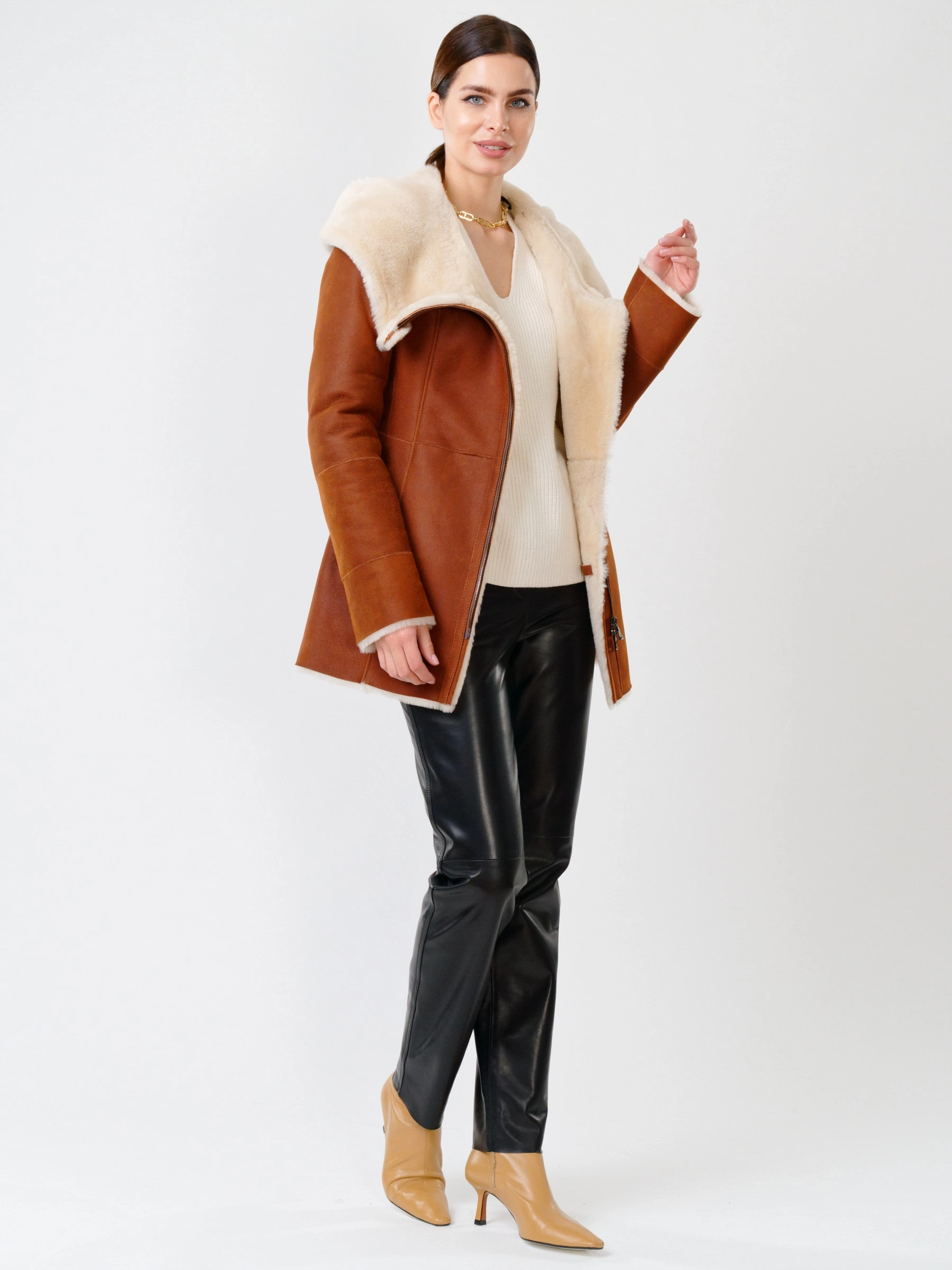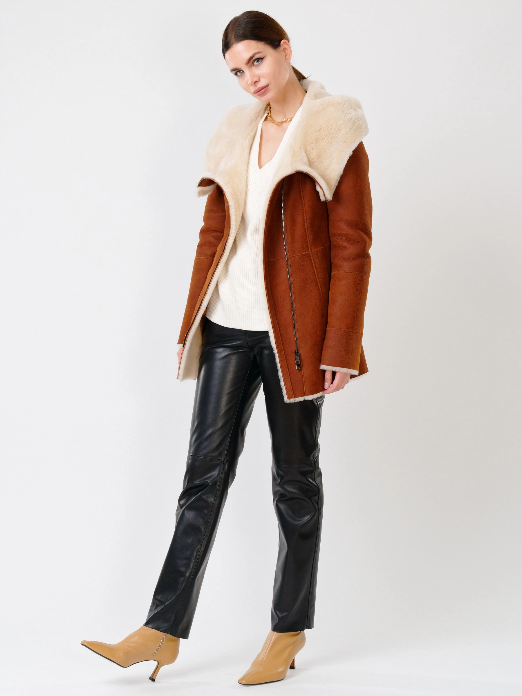 Зимний комплект женский: Дубленка 200 + Брюки 03, табачный/черный, р. 44, арт. 111377