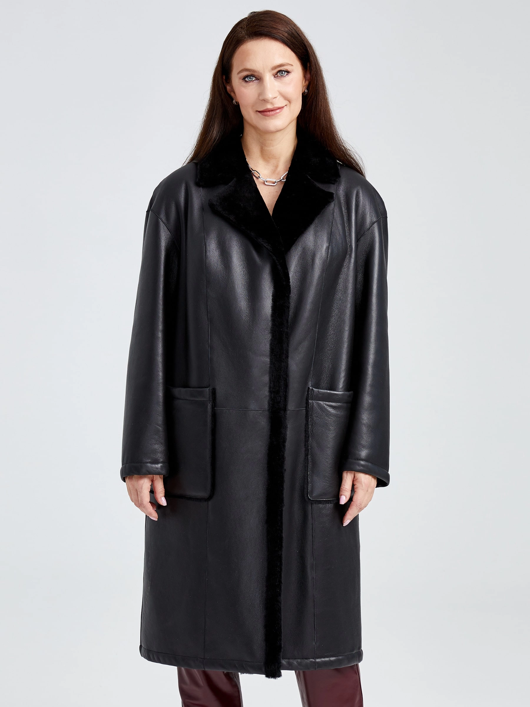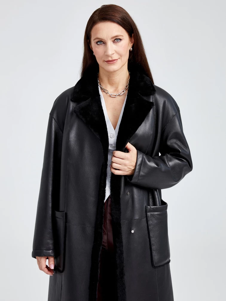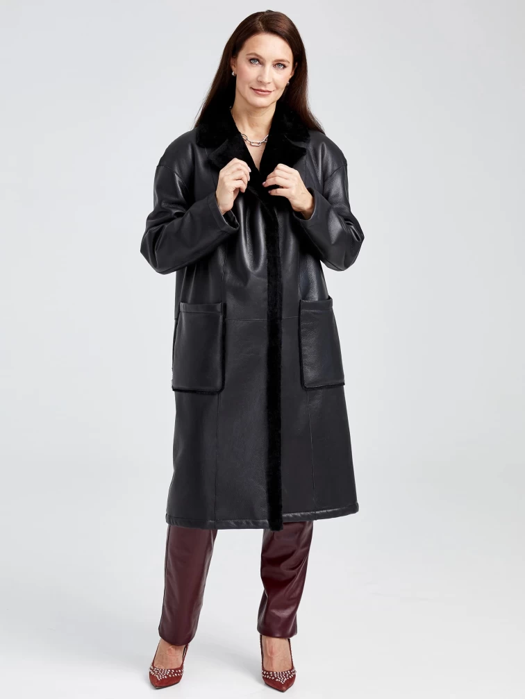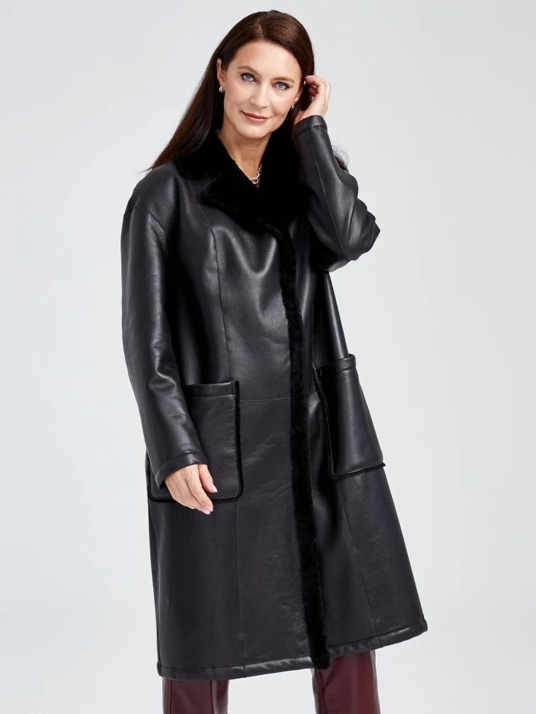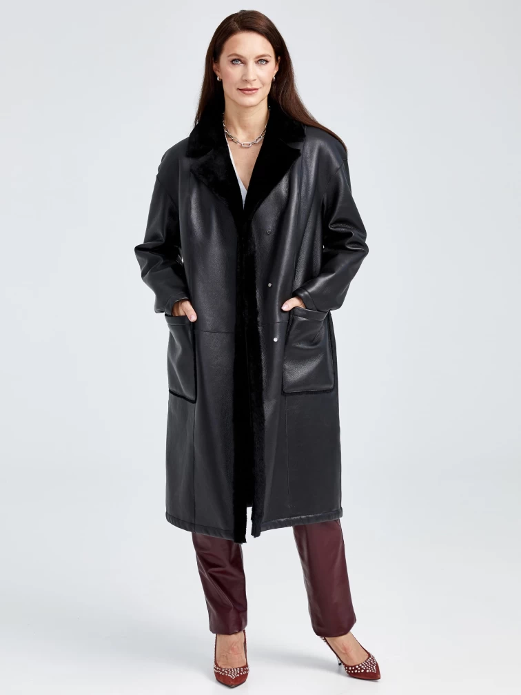 Зимний комплект женский: Дубленка 2002 + Брюки 02, черный/бордовый, р. 44, арт. 111302