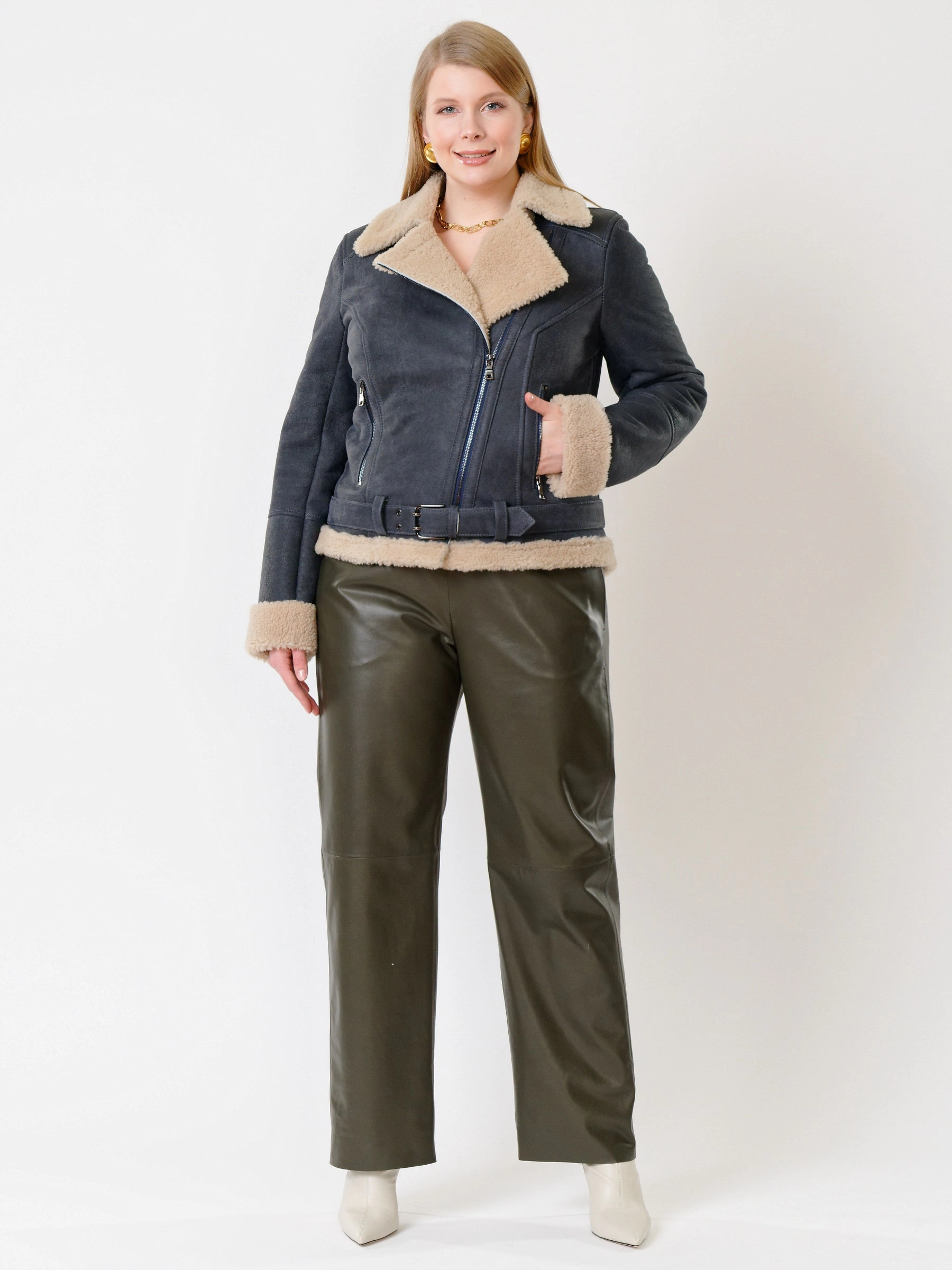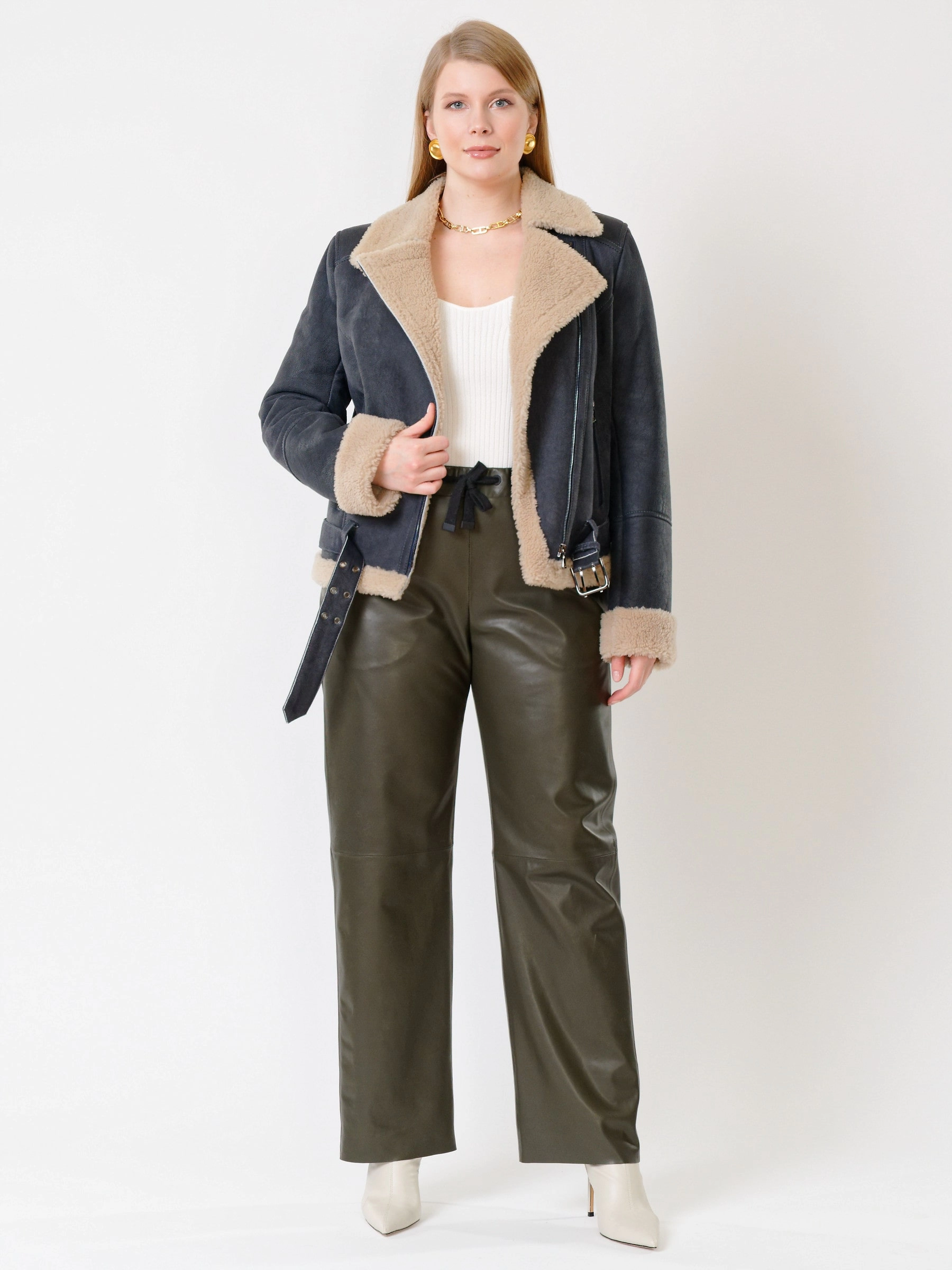 Зимний комплект женский: Дубленка 201 + Брюки 06, синий/оливковый, р. 48, арт. 111352