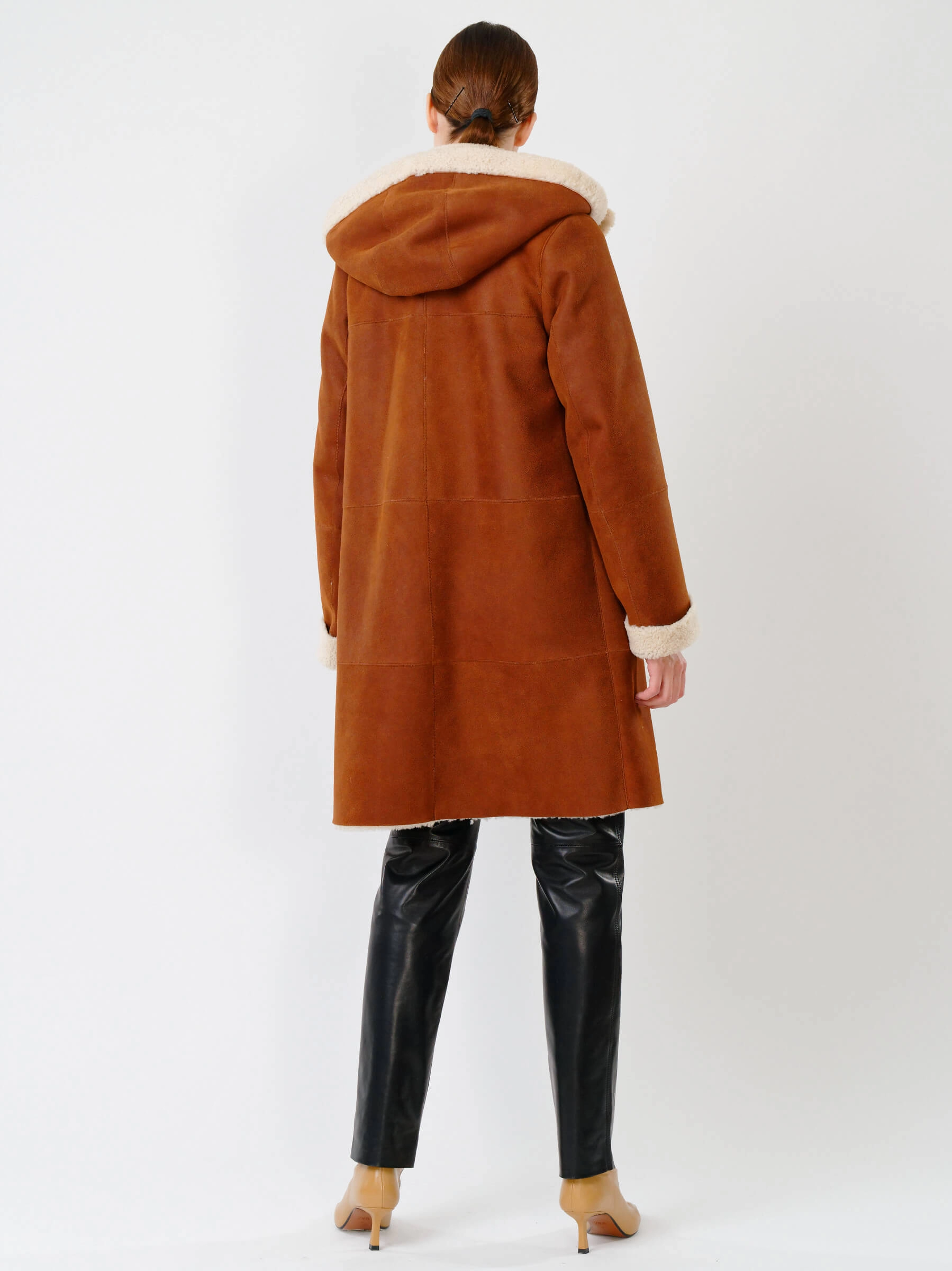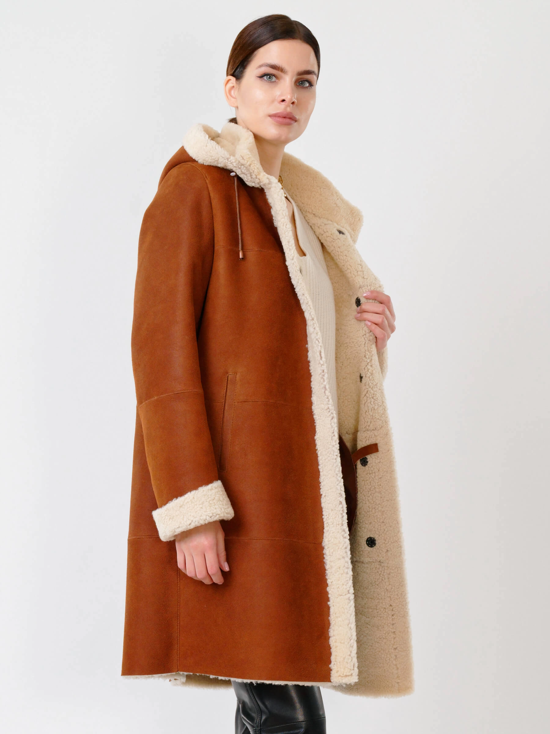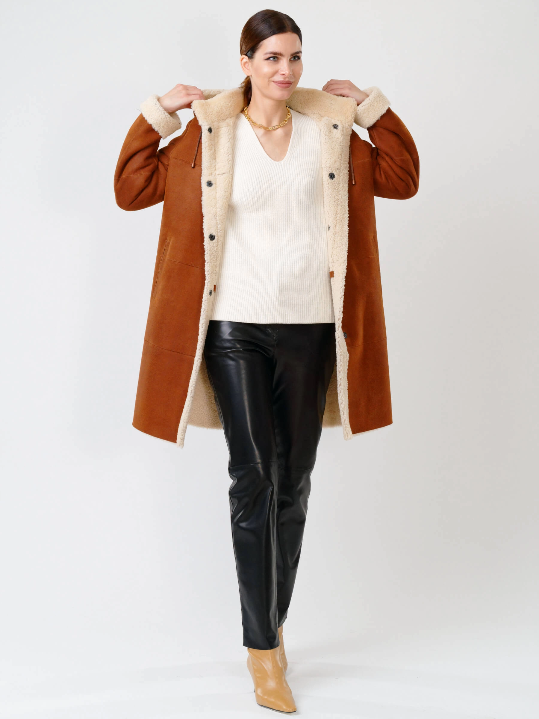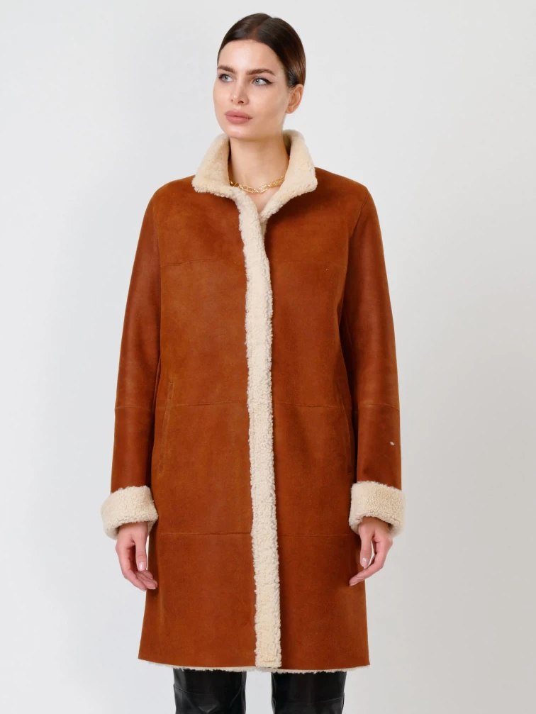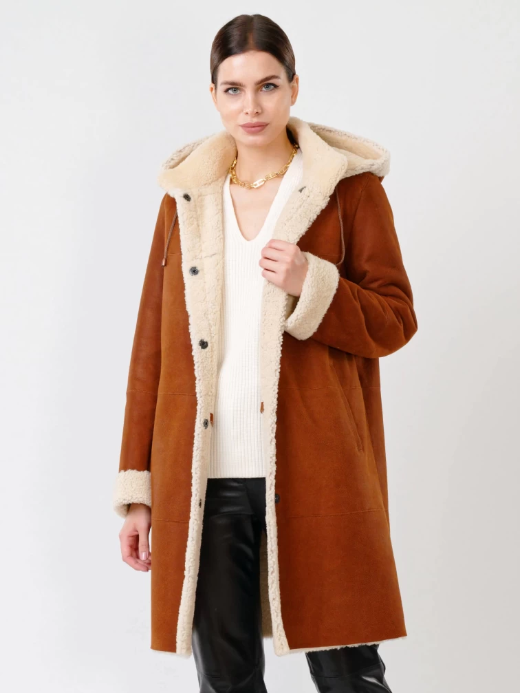 Зимний комплект женский: Дубленка 202 + Брюки 03, табачный/черный, р. 46, арт. 111320
