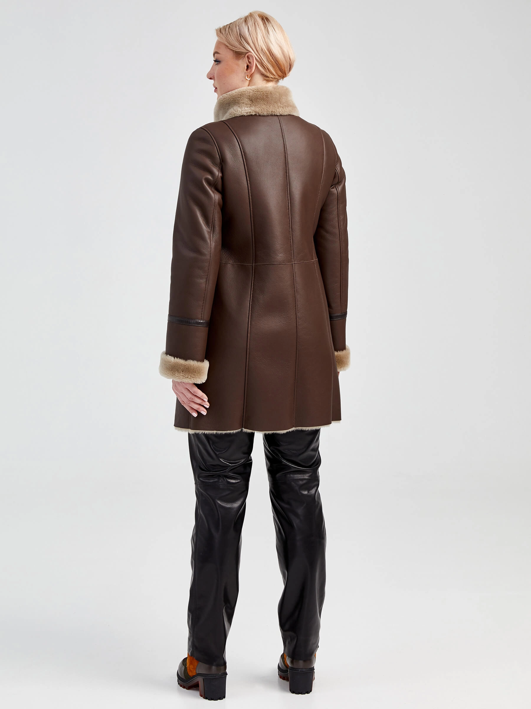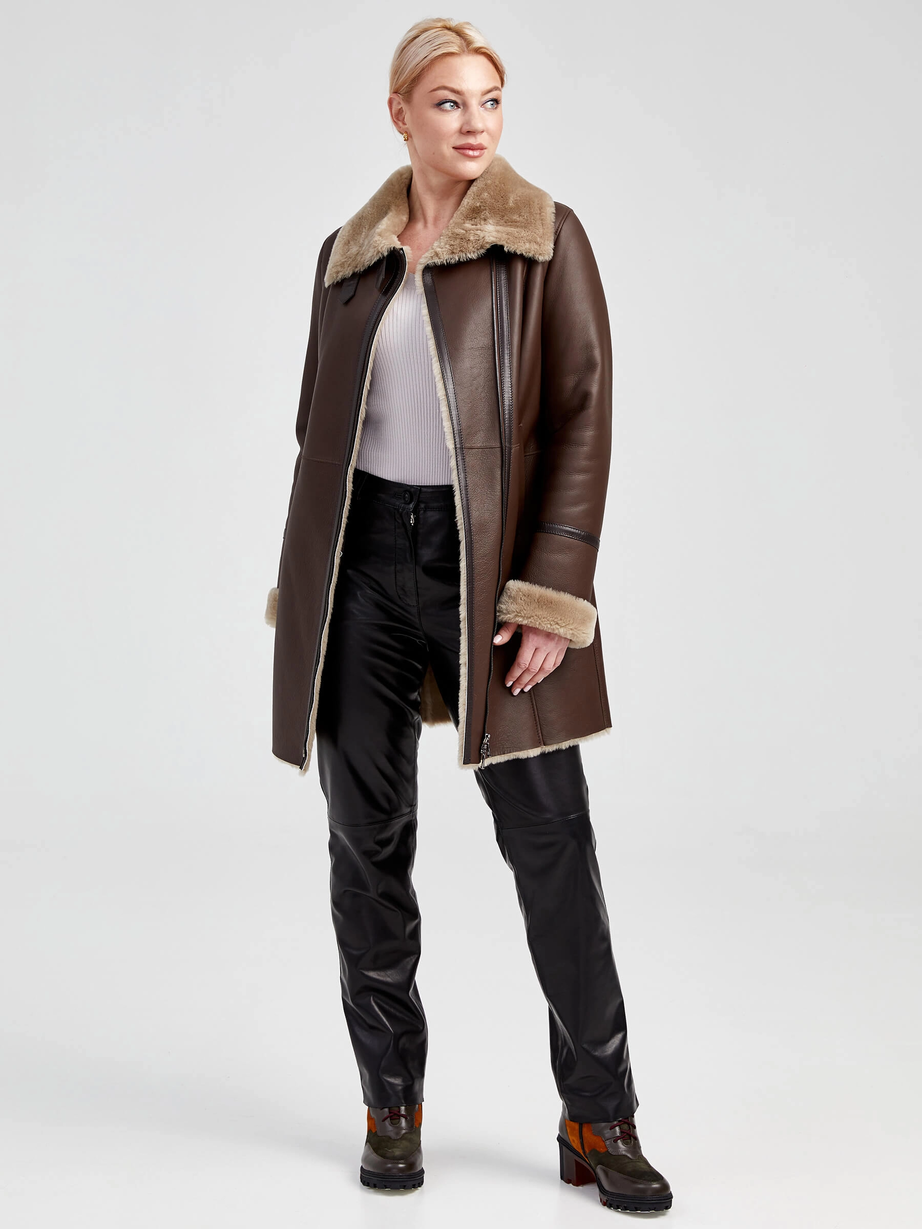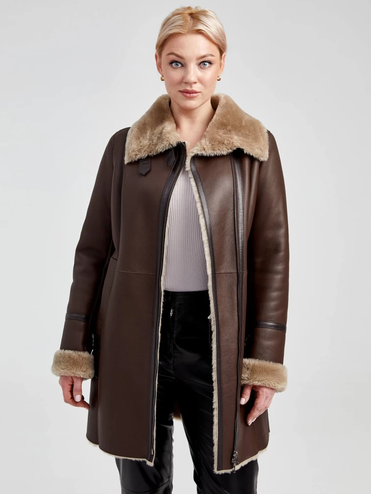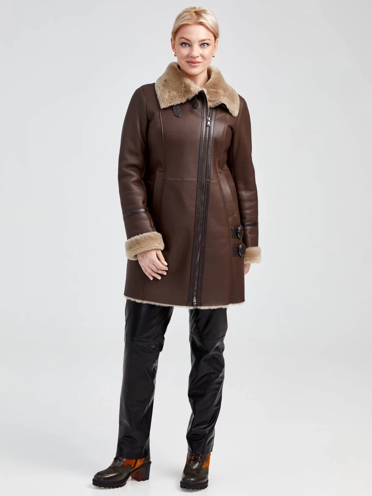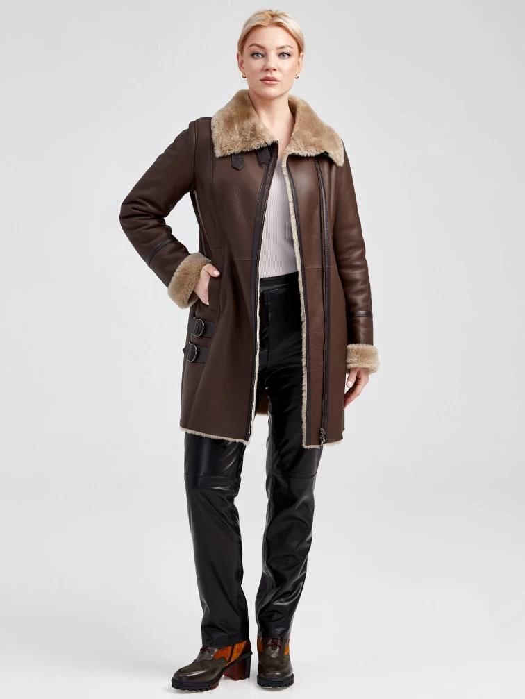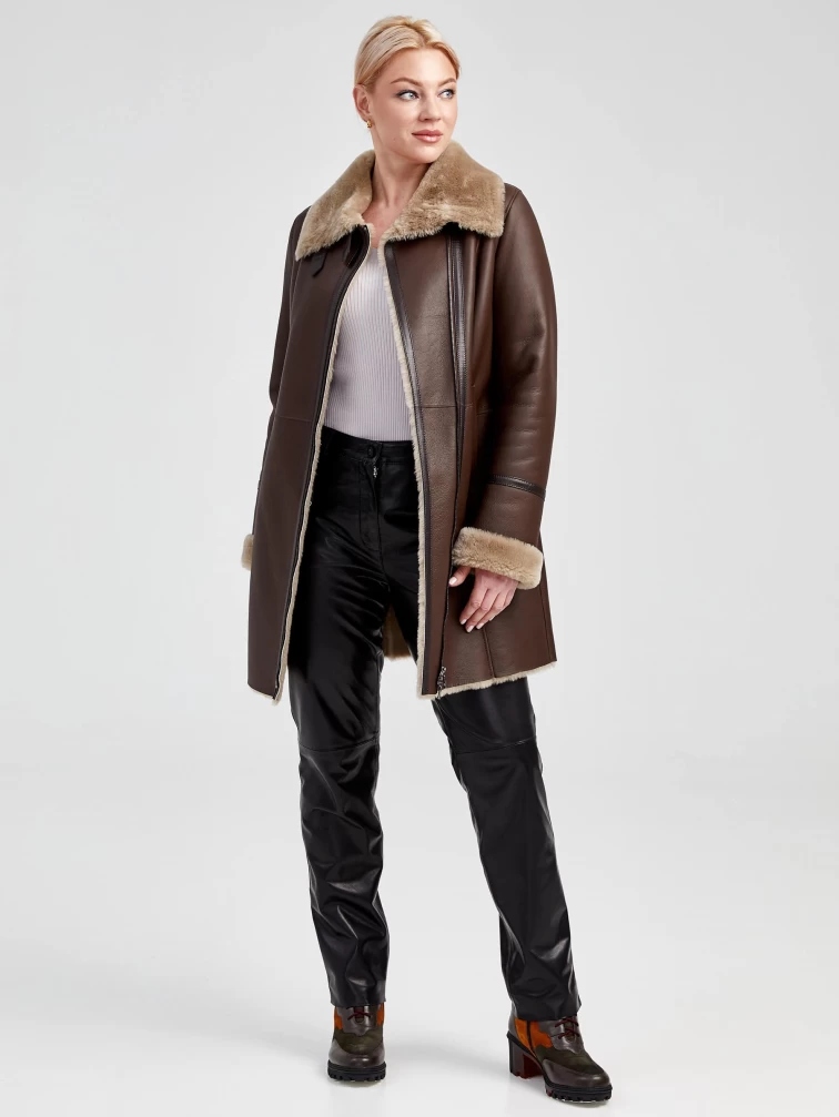 Зимний комплект женский: Дубленка 206 + Брюки 04, коричневый/черный, р. 48, арт. 111340