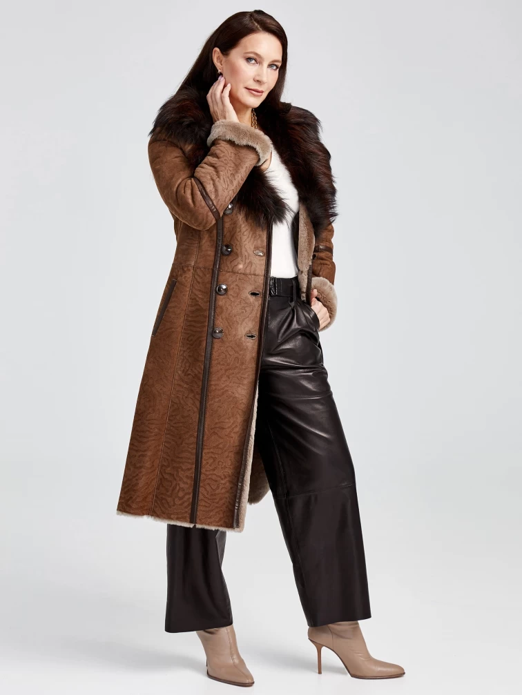 Зимний комплект женский: Дубленка 227 + Брюки 05, бежевый/черный, р. 44, арт. 111351