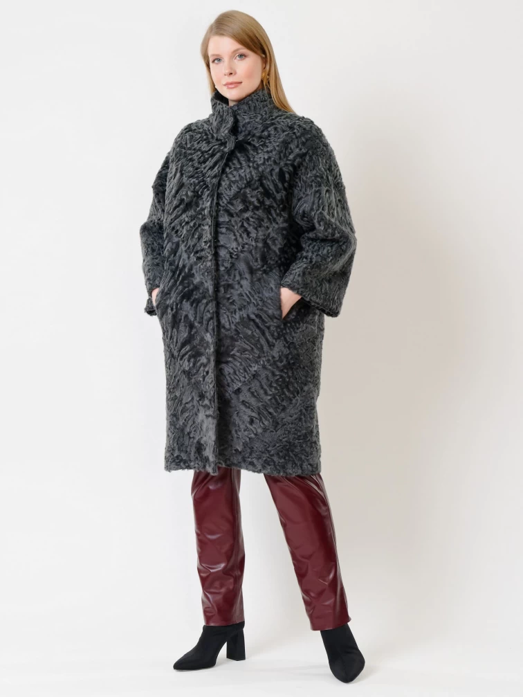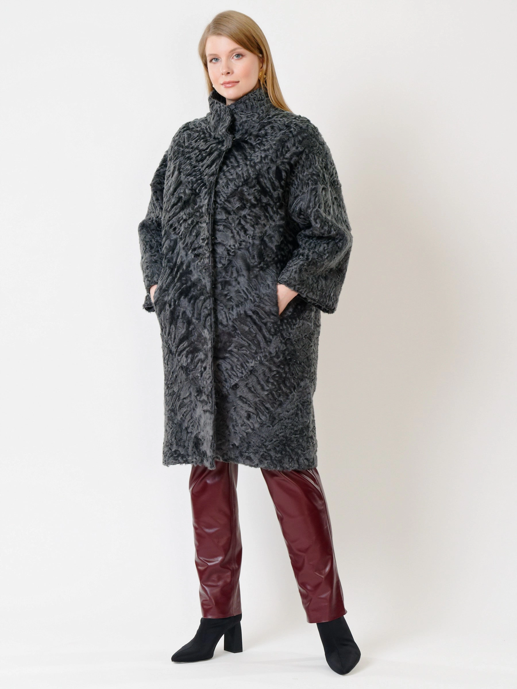 Товар зимний комплект женский: шуба из каракуля 17106д + брюки 02, серый/бордовый, р. 52, арт. 111371.