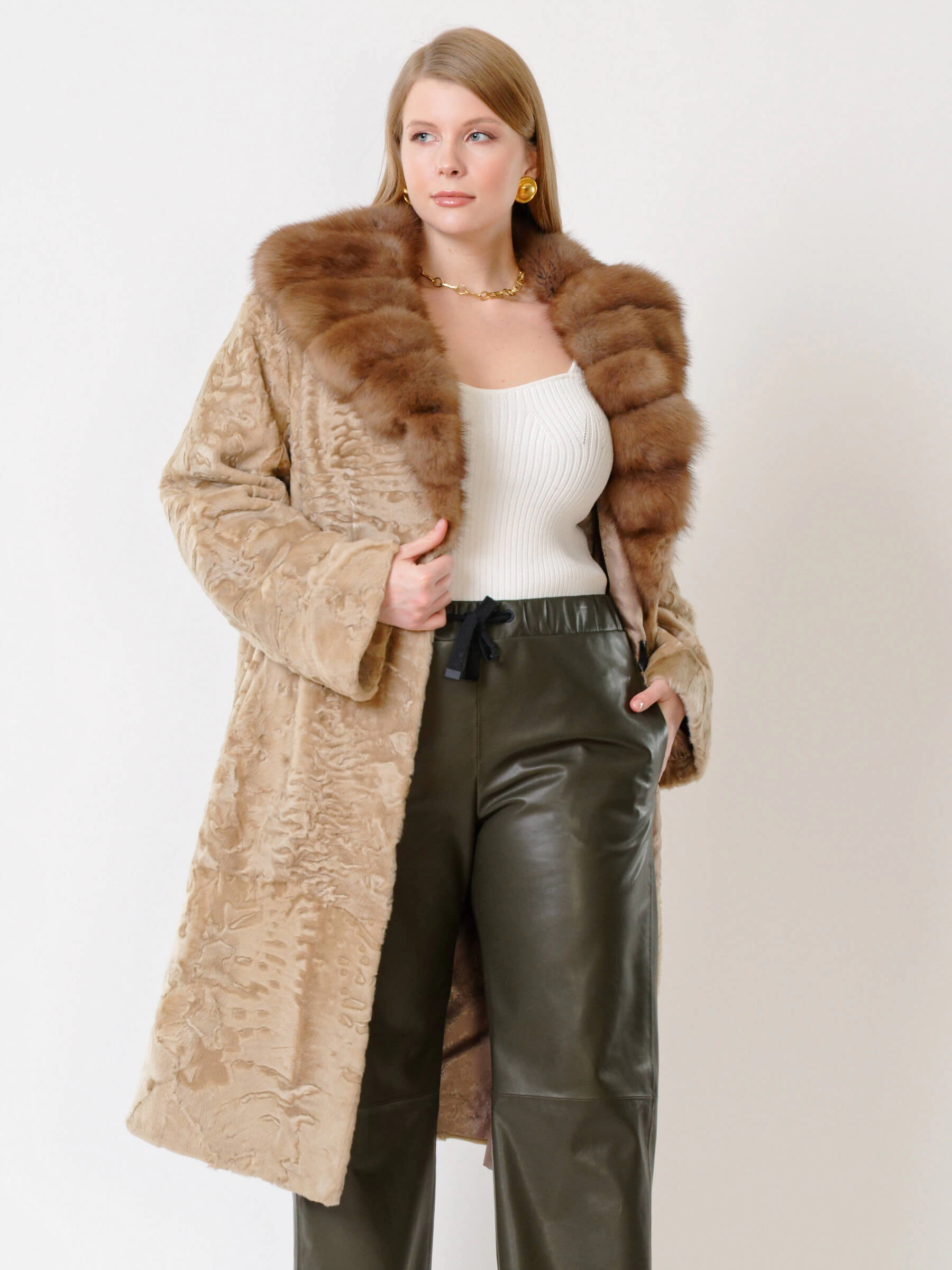 Товар зимний комплект женский: шуба из каракуля екатерина(вк) + брюки 06, жемчужный/оливковый, р. 54, арт. 111327.