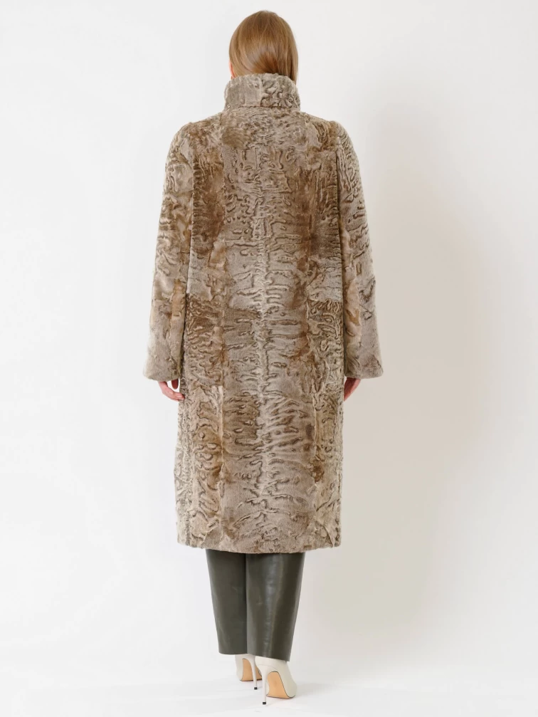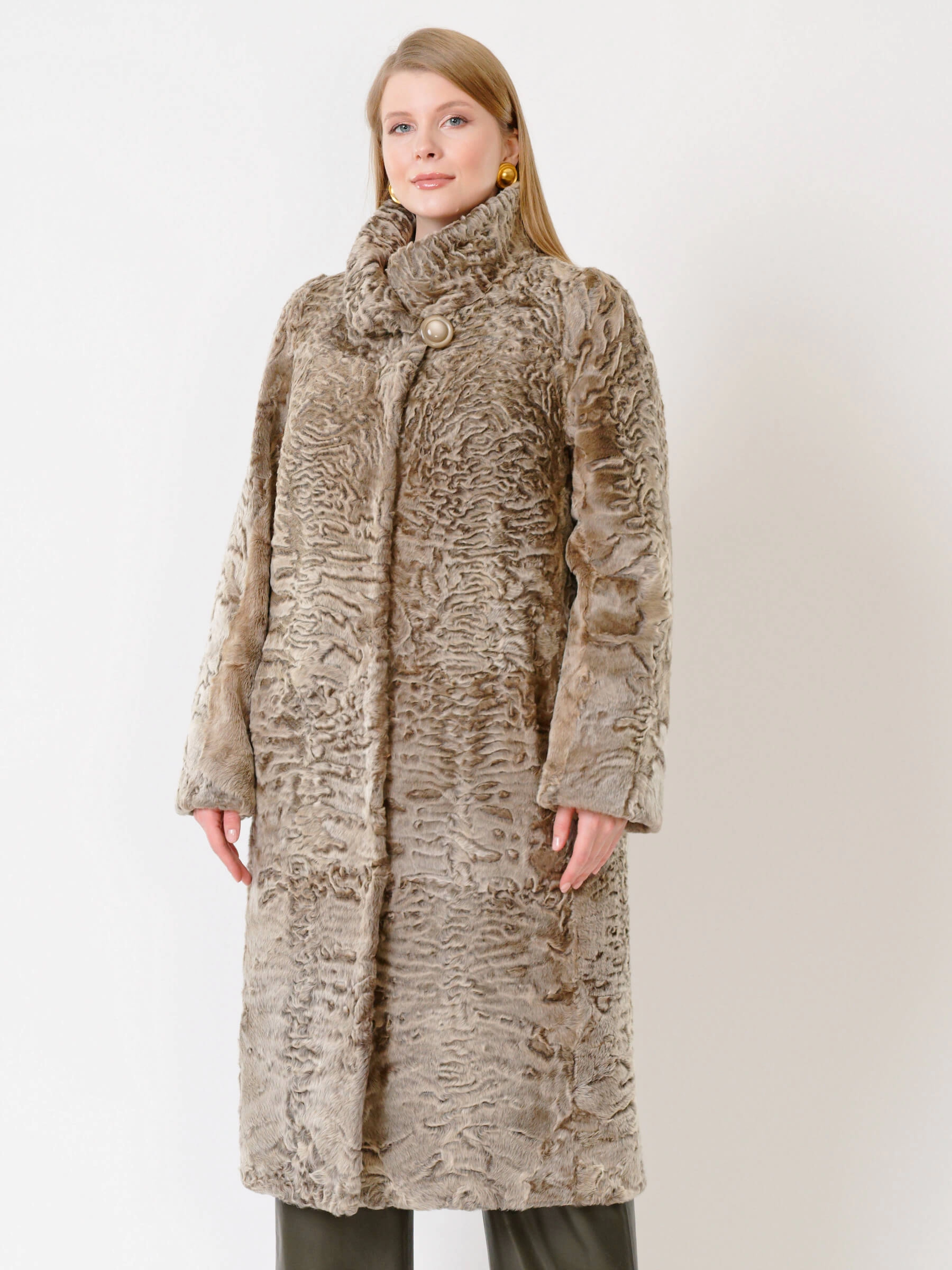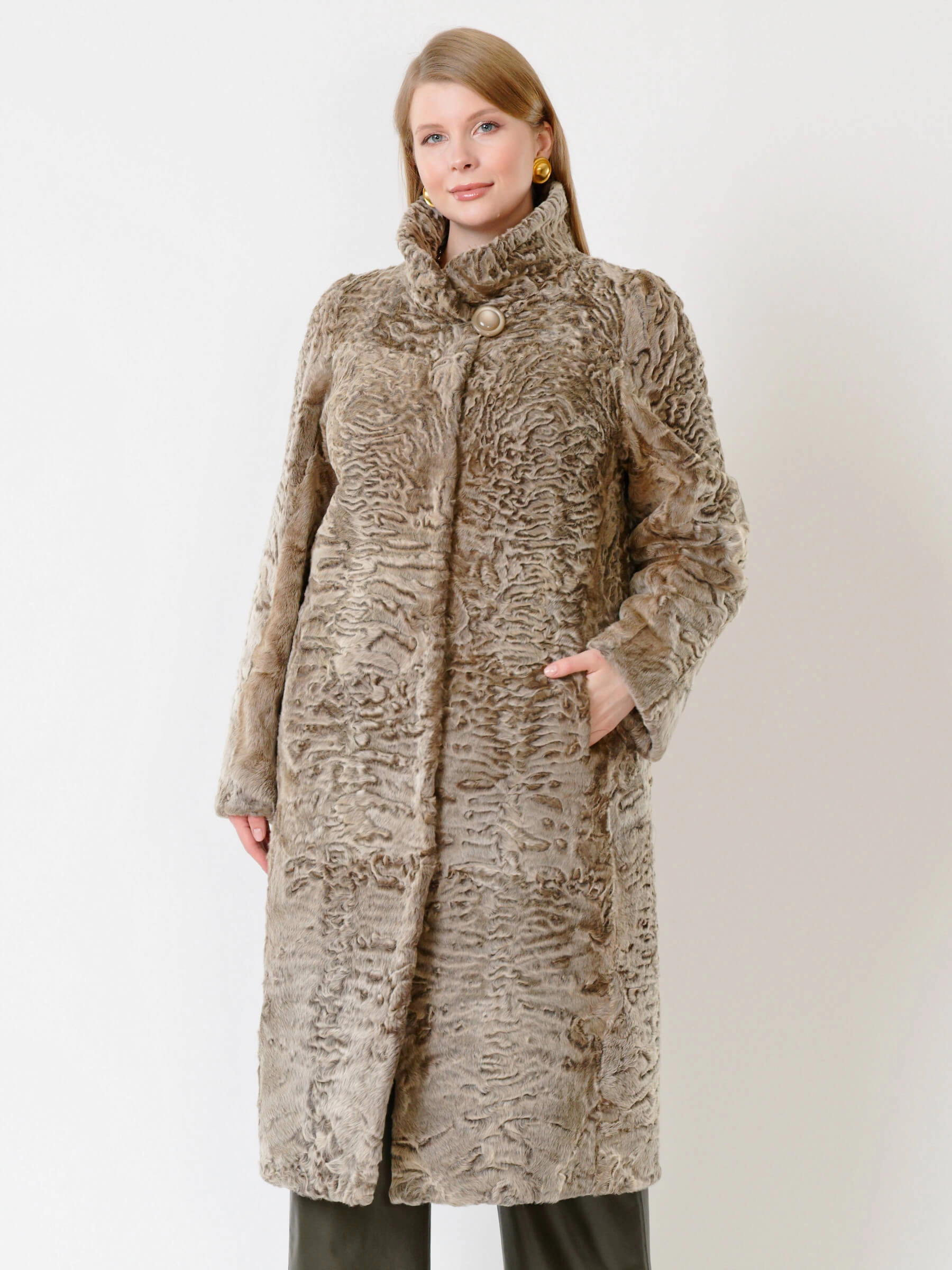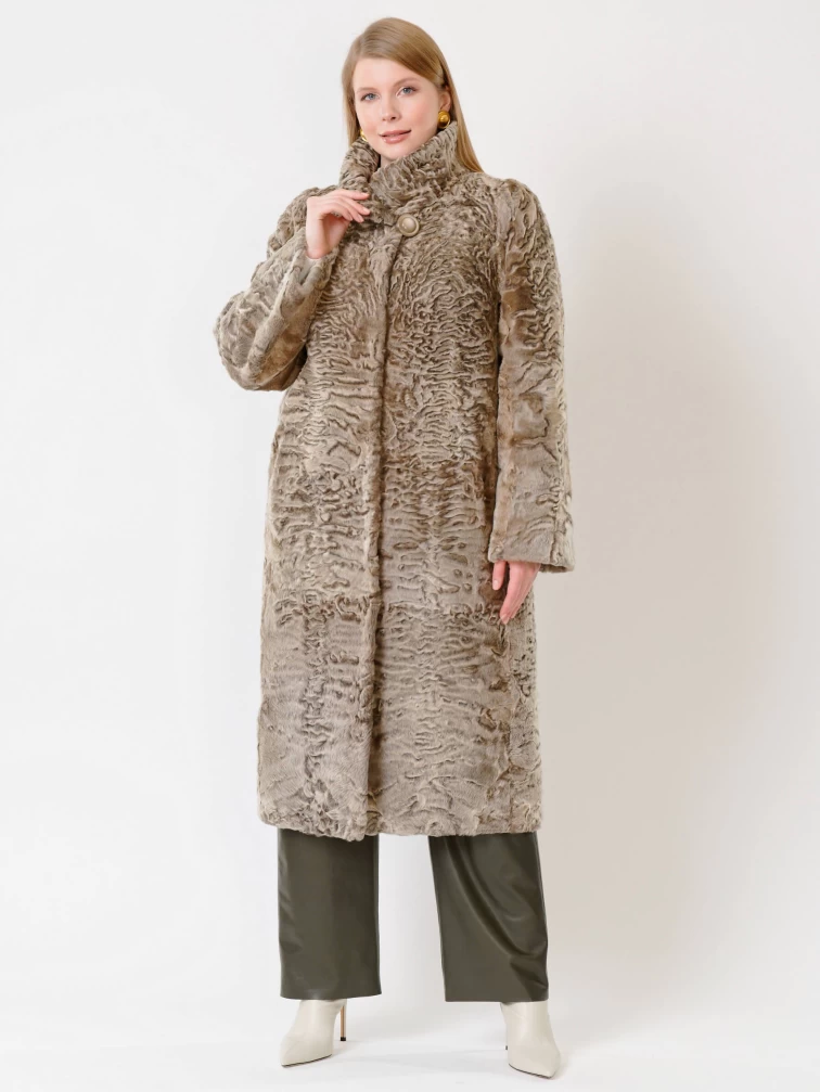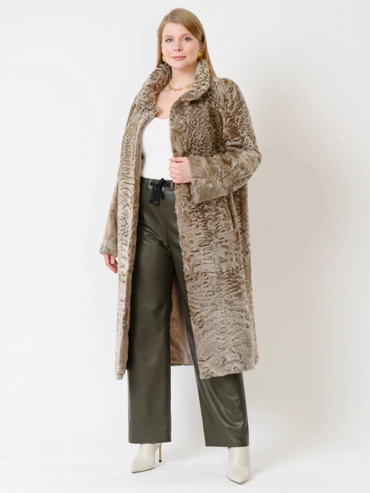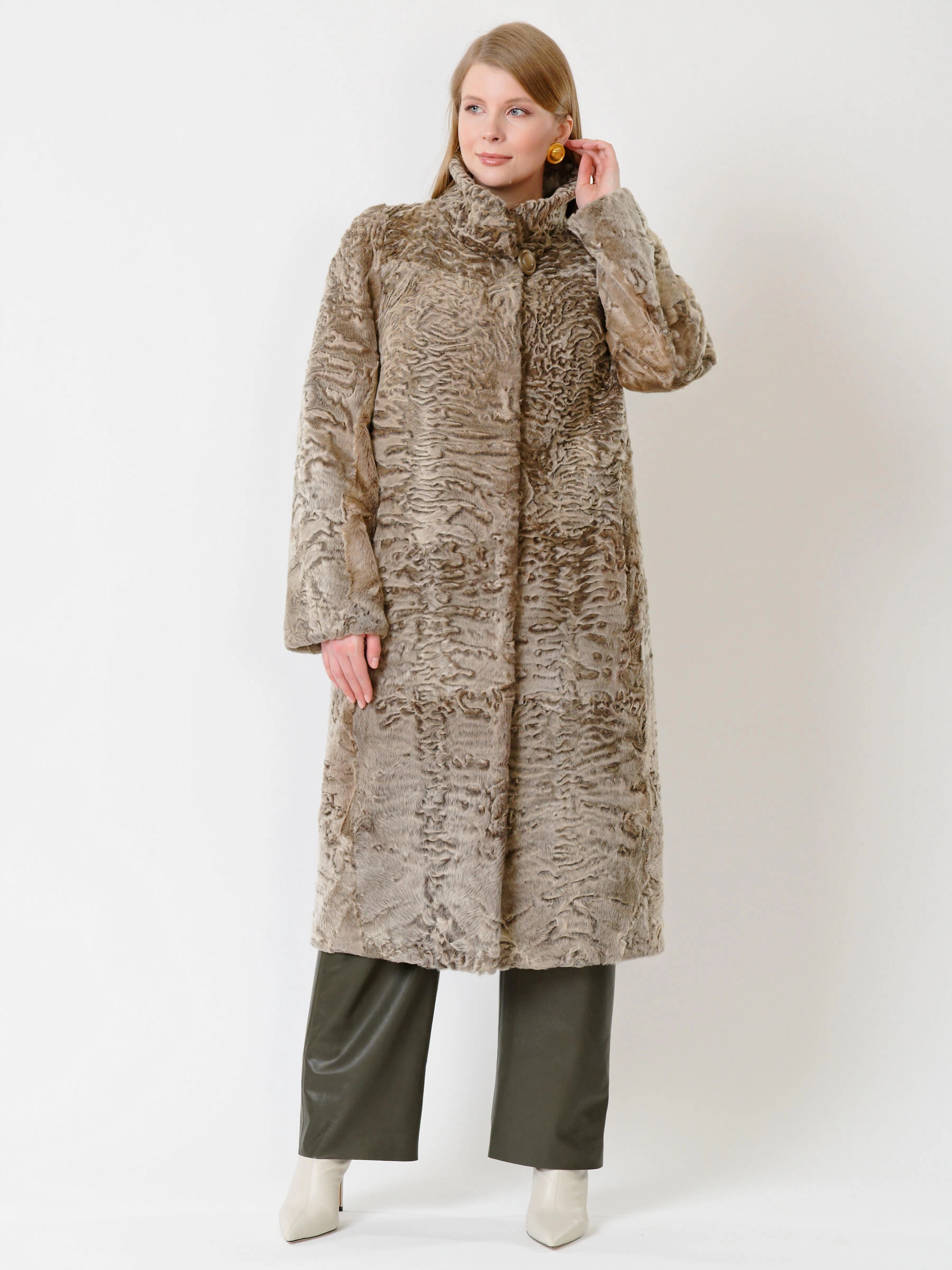 Товар зимний комплект женский: шуба из каракуля надежда + брюки 06, бежевый/оливковый, р. 52, арт. 111372.
