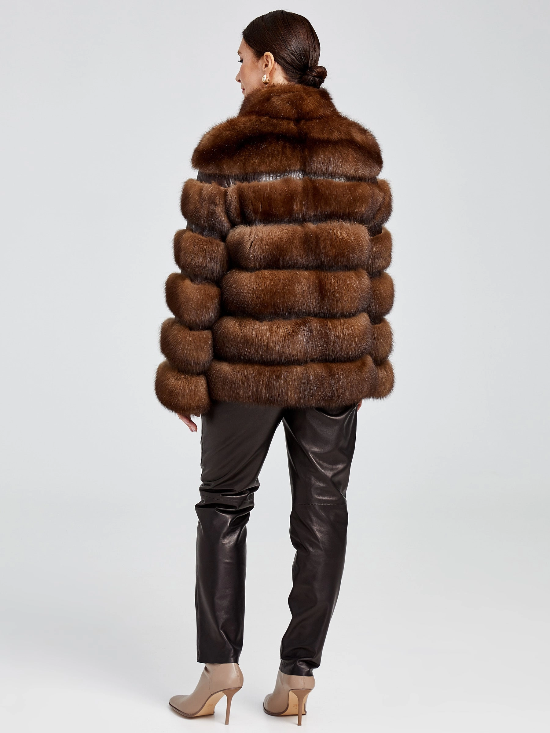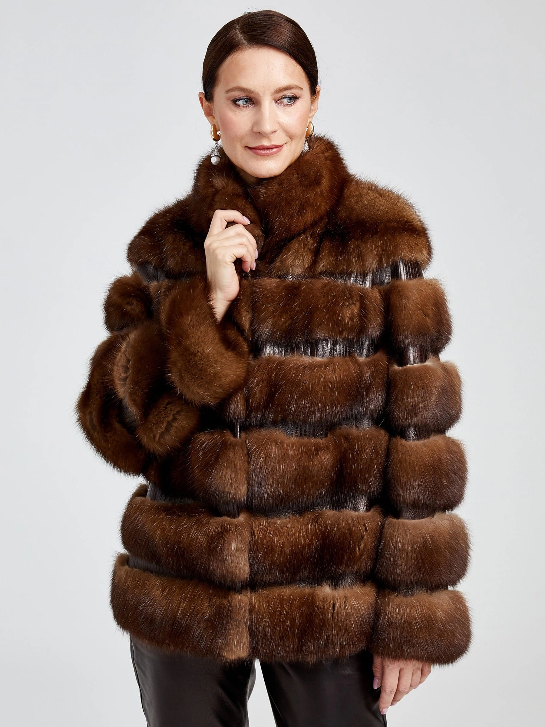 Зимний комплект женский: Шуба из меха соболя С-2 Ребекка + Брюки 02, коричневый/черный, р. 44, арт. 111317