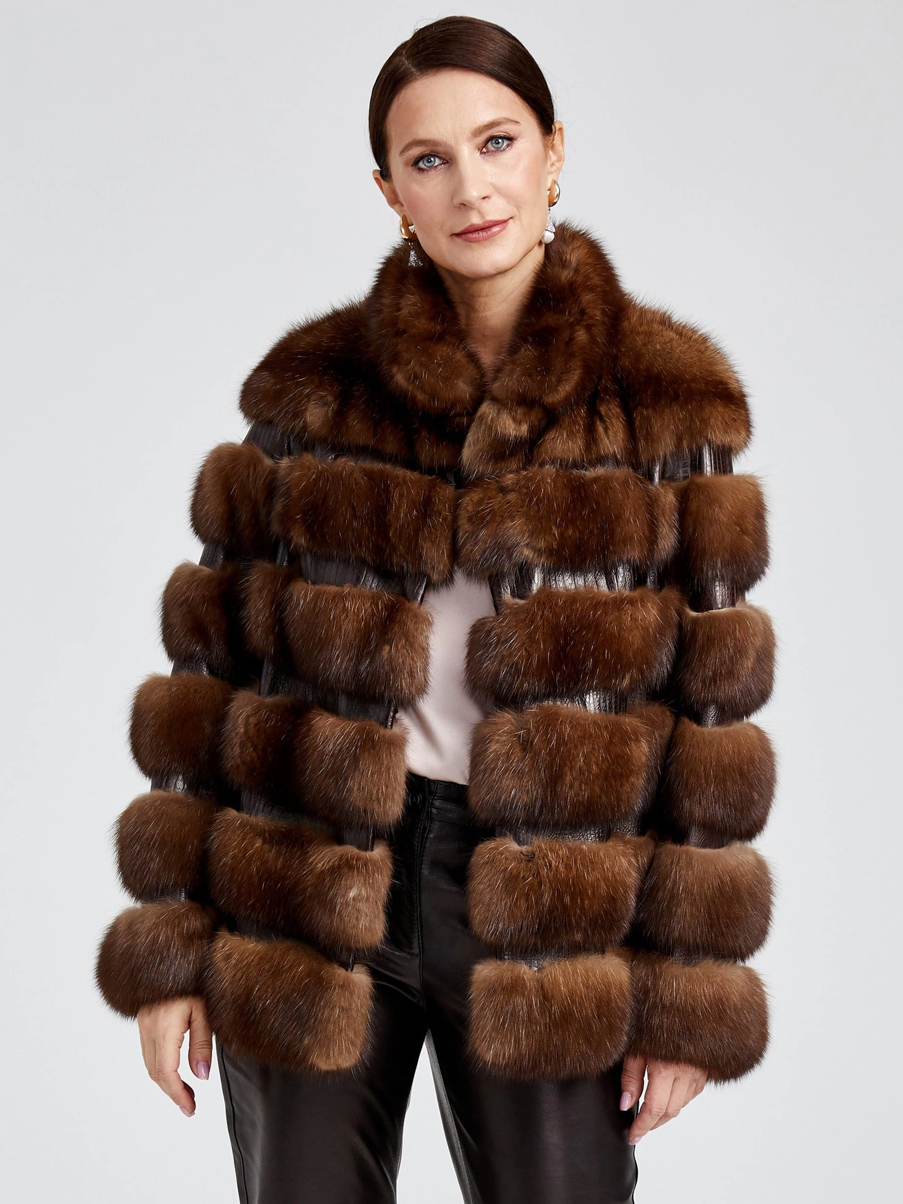 Товар зимний комплект женский: шуба из меха соболя с-2 ребекка + брюки 02, коричневый/черный, р. 44, арт. 111317.